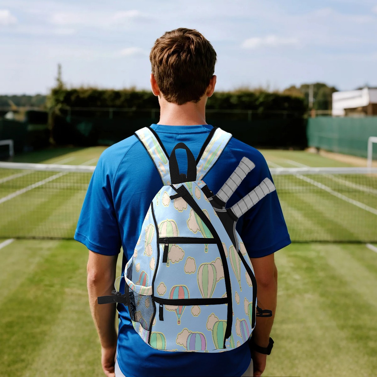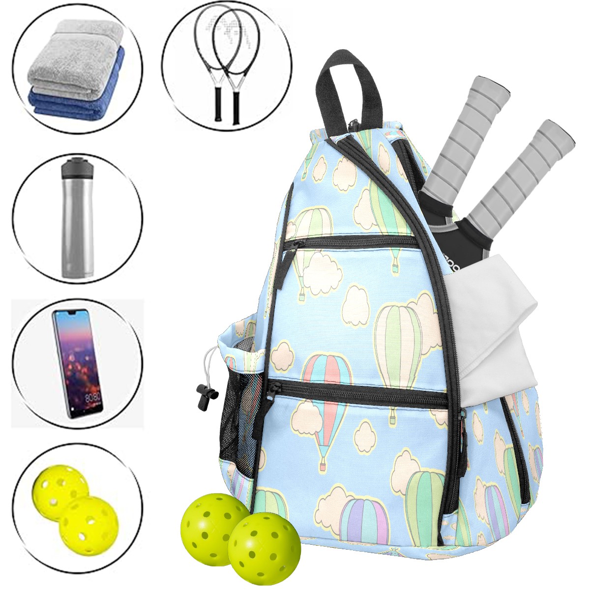 Multifunctional Pickleball Bag,Large Capacity Sports Pickleball Racket Bag, Water Bottle Holder and Fence Hook,Suitable for Both Men Women -Balloon