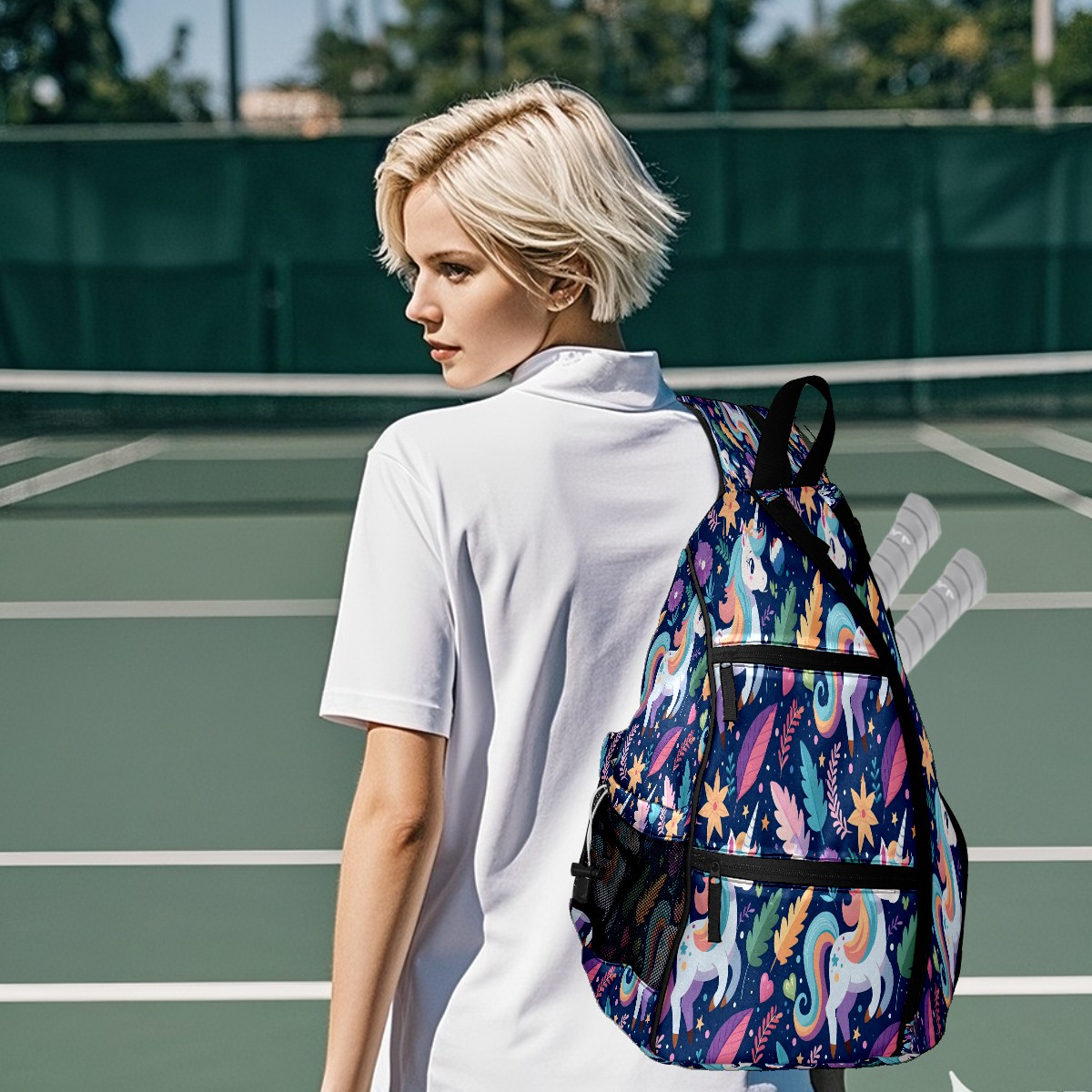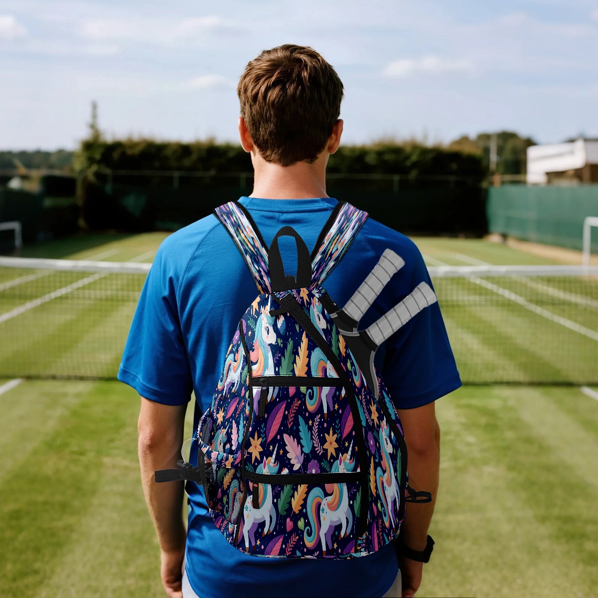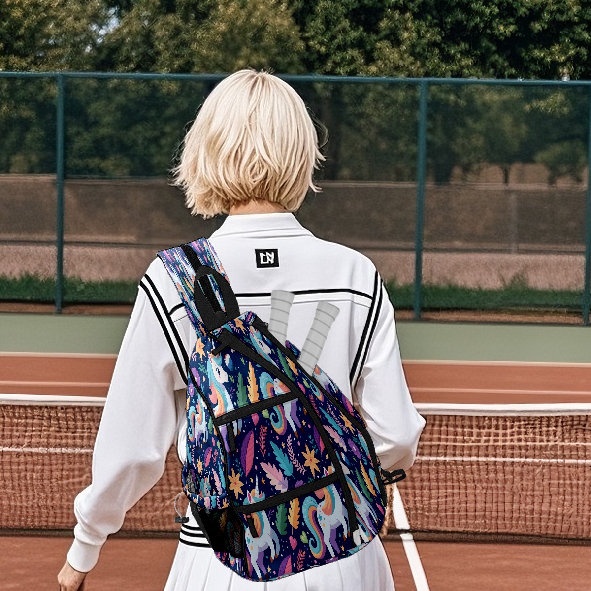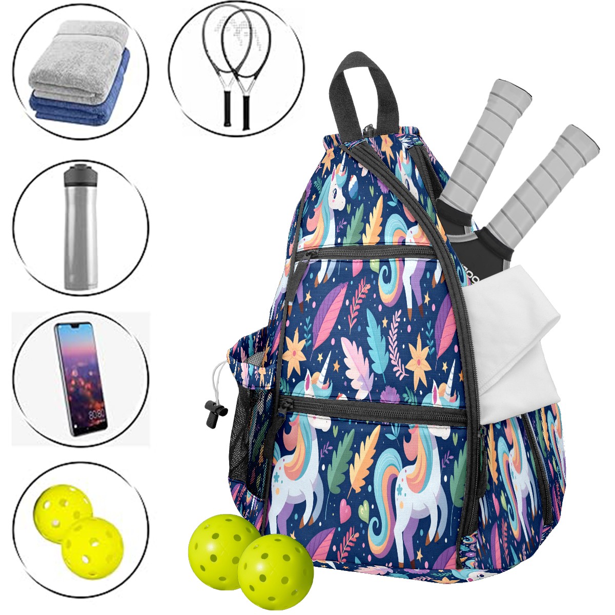 Multifunctional Pickleball Bag,Large Capacity Sports Pickleball Racket Bag, Water Bottle Holder and Fence Hook,Suitable for Both Men Women -White Horse