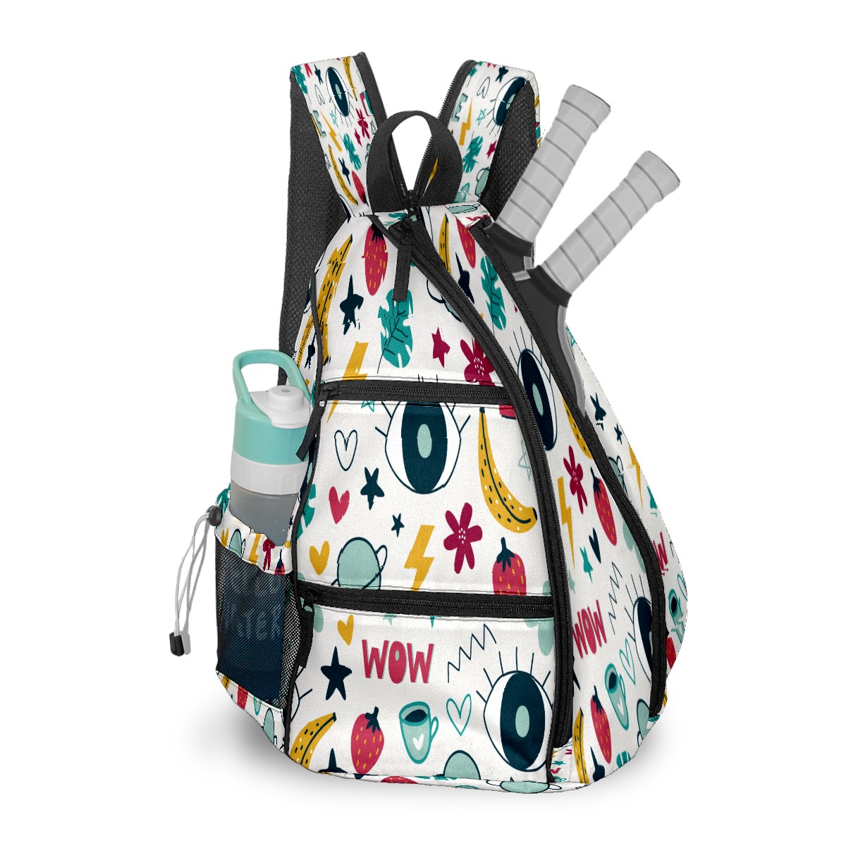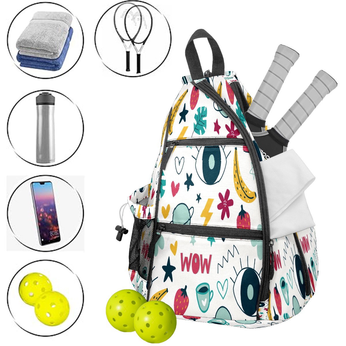 Multifunctional Pickleball Bag,Large Capacity Sports Pickleball Racket Bag, Water Bottle Holder and Fence Hook,Suitable for Both Men Women -Printing