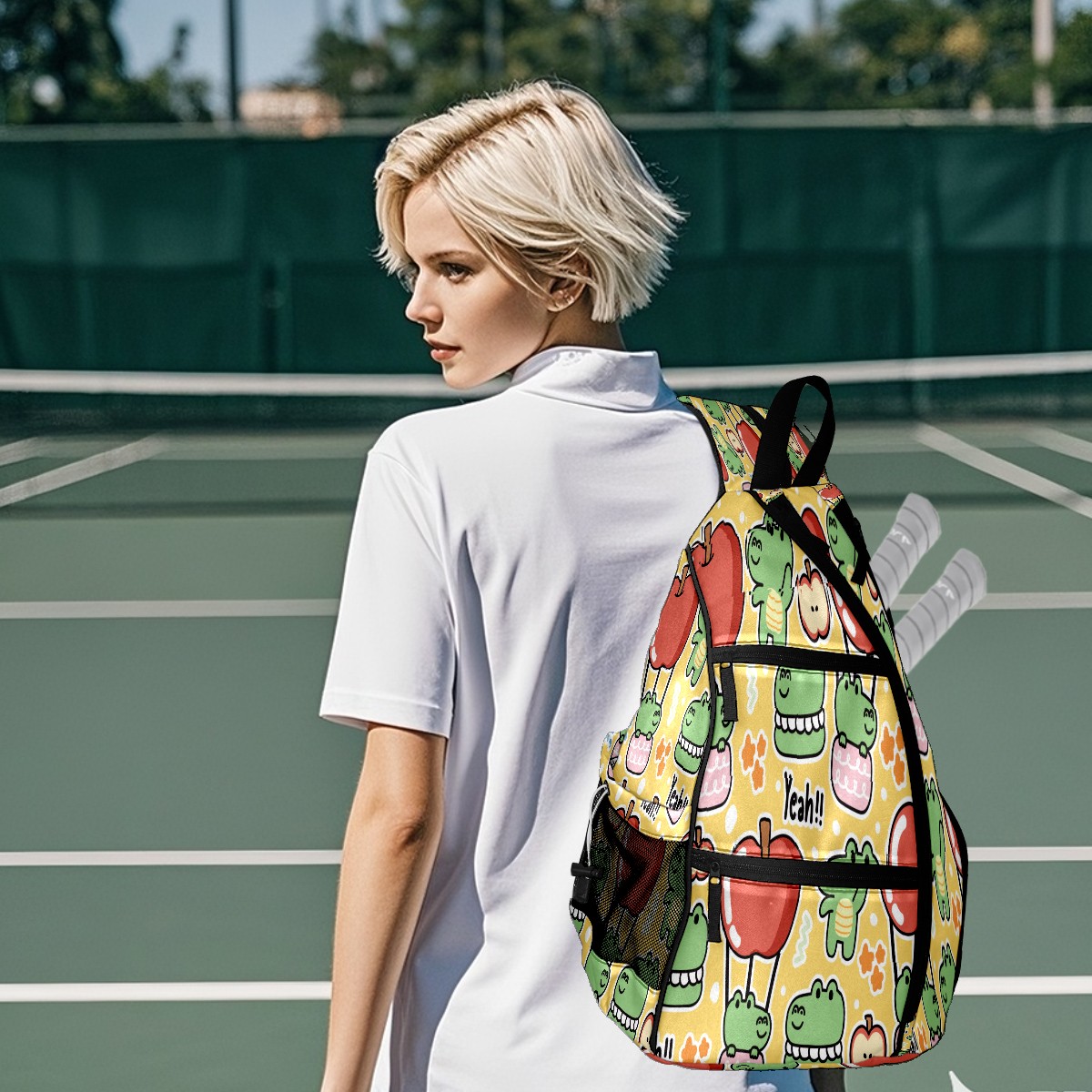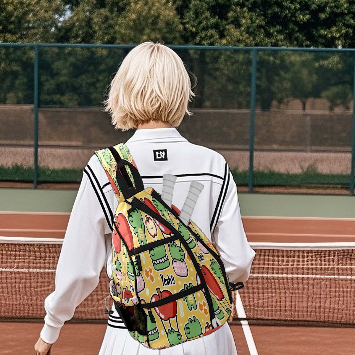 Multifunctional Pickleball Bag,Large Capacity Sports Pickleball Racket Bag, Water Bottle Holder and Fence Hook,Suitable for Both Men Women -Fruits