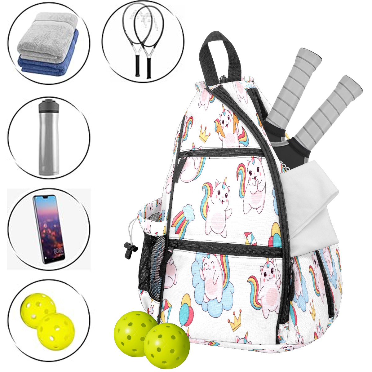 Multifunctional Pickleball Bag,Large Capacity Sports Pickleball Racket Bag, Water Bottle Holder and Fence Hook,Suitable for Both Men Women -Lovely