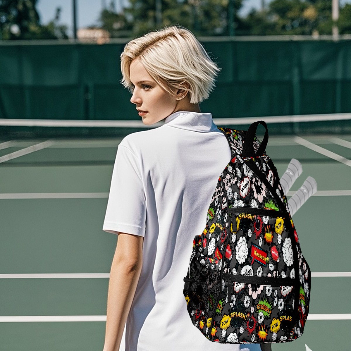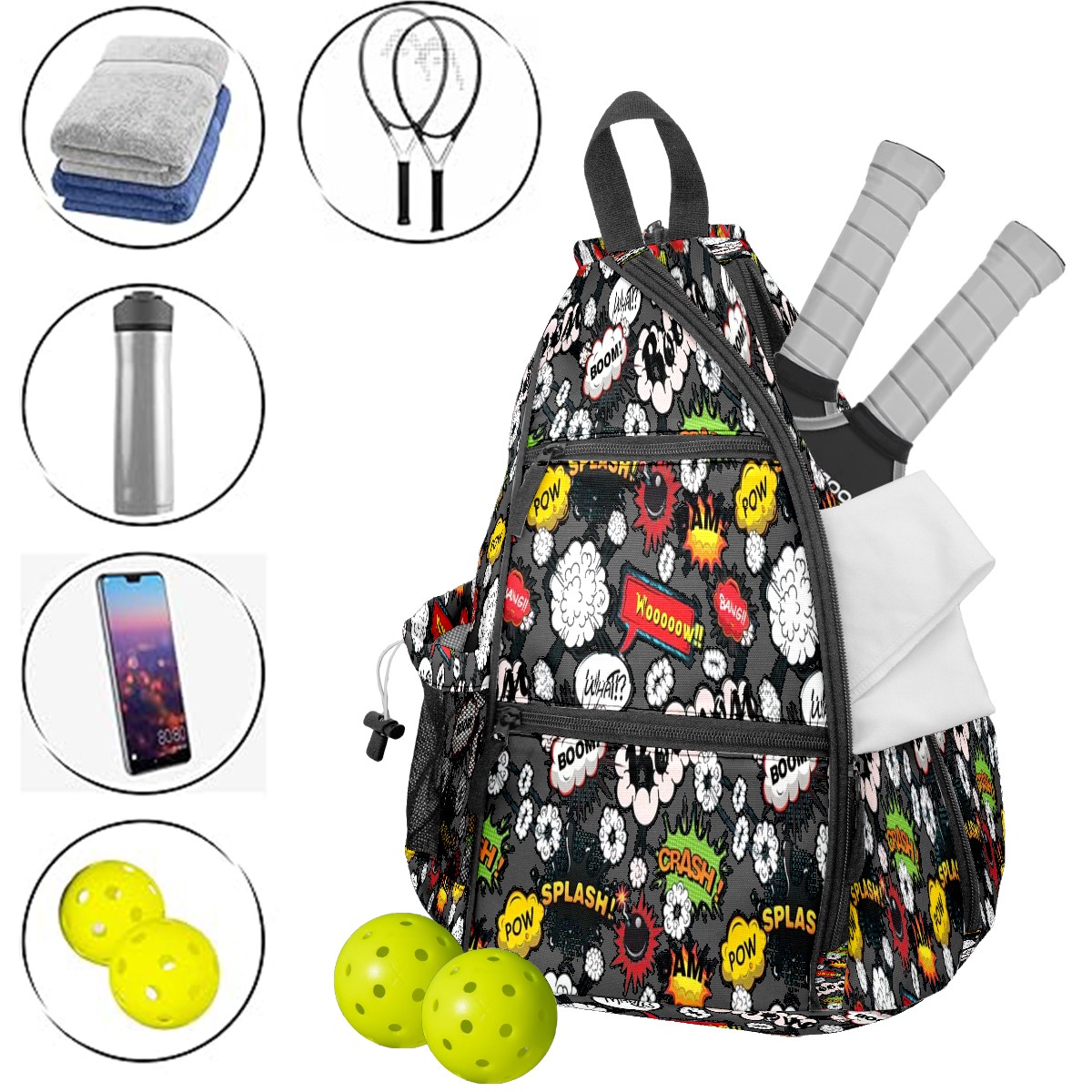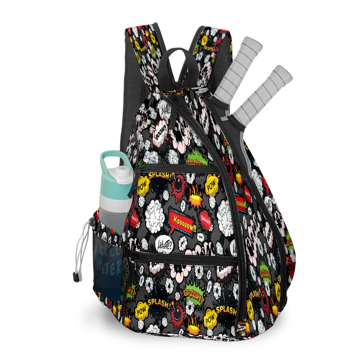 Multifunctional Pickleball Bag,Large Capacity Sports Pickleball Racket Bag, Water Bottle Holder and Fence Hook,Suitable for Both Men Women -Graffiti Print