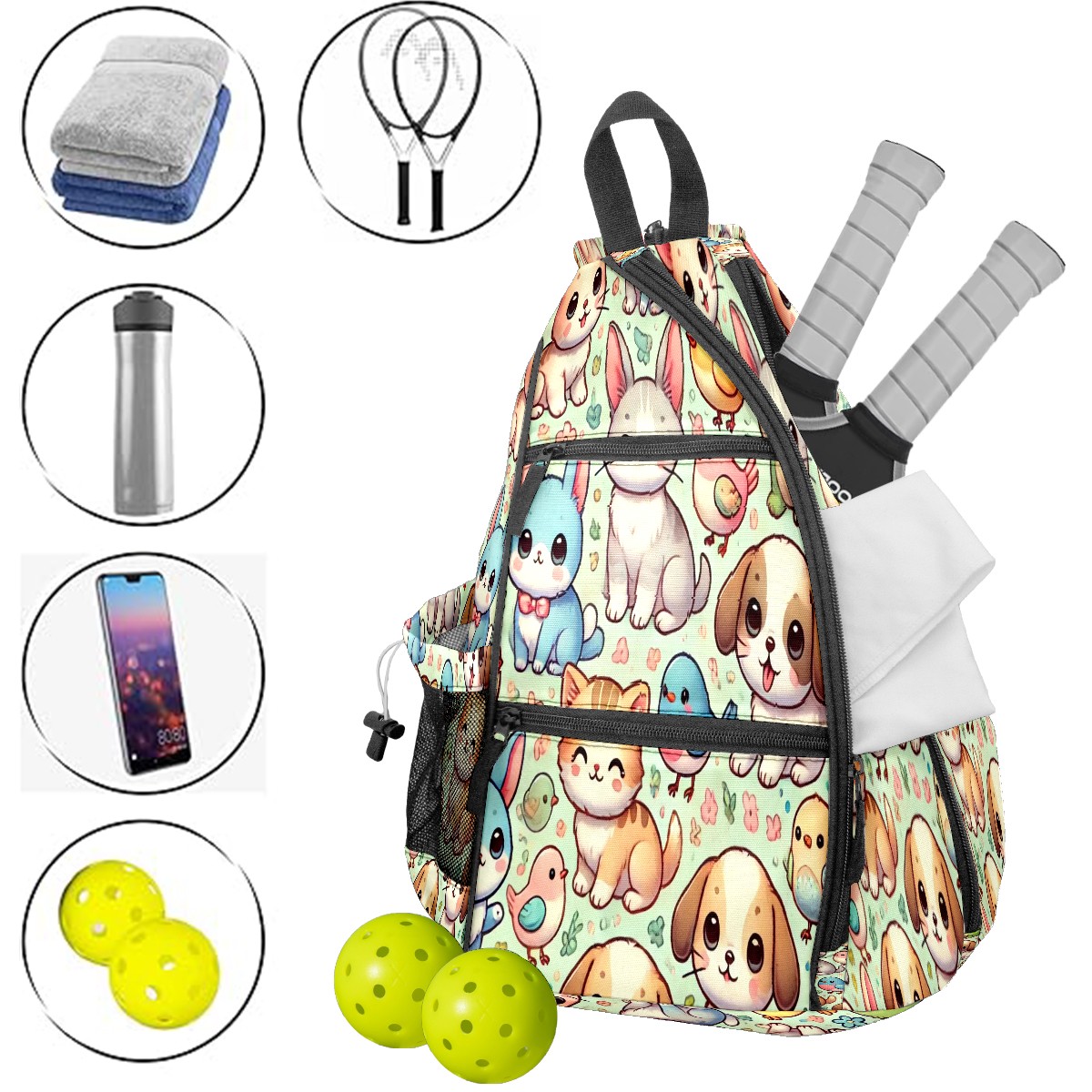 Multifunctional Pickleball Bag,Large Capacity Sports Pickleball Racket Bag, Water Bottle Holder and Fence Hook,Suitable for Both Men Women -Cute Animal