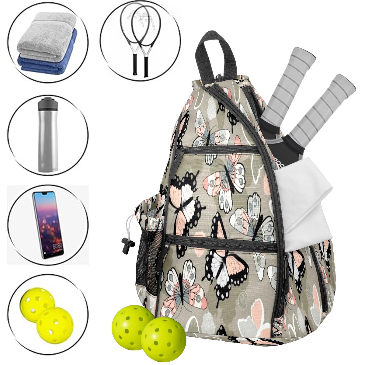 Multifunctional Pickleball Bag,Large Capacity Sports Pickleball Racket Bag, Water Bottle Holder and Fence Hook,Suitable for Both Men Women -Butterfly Print