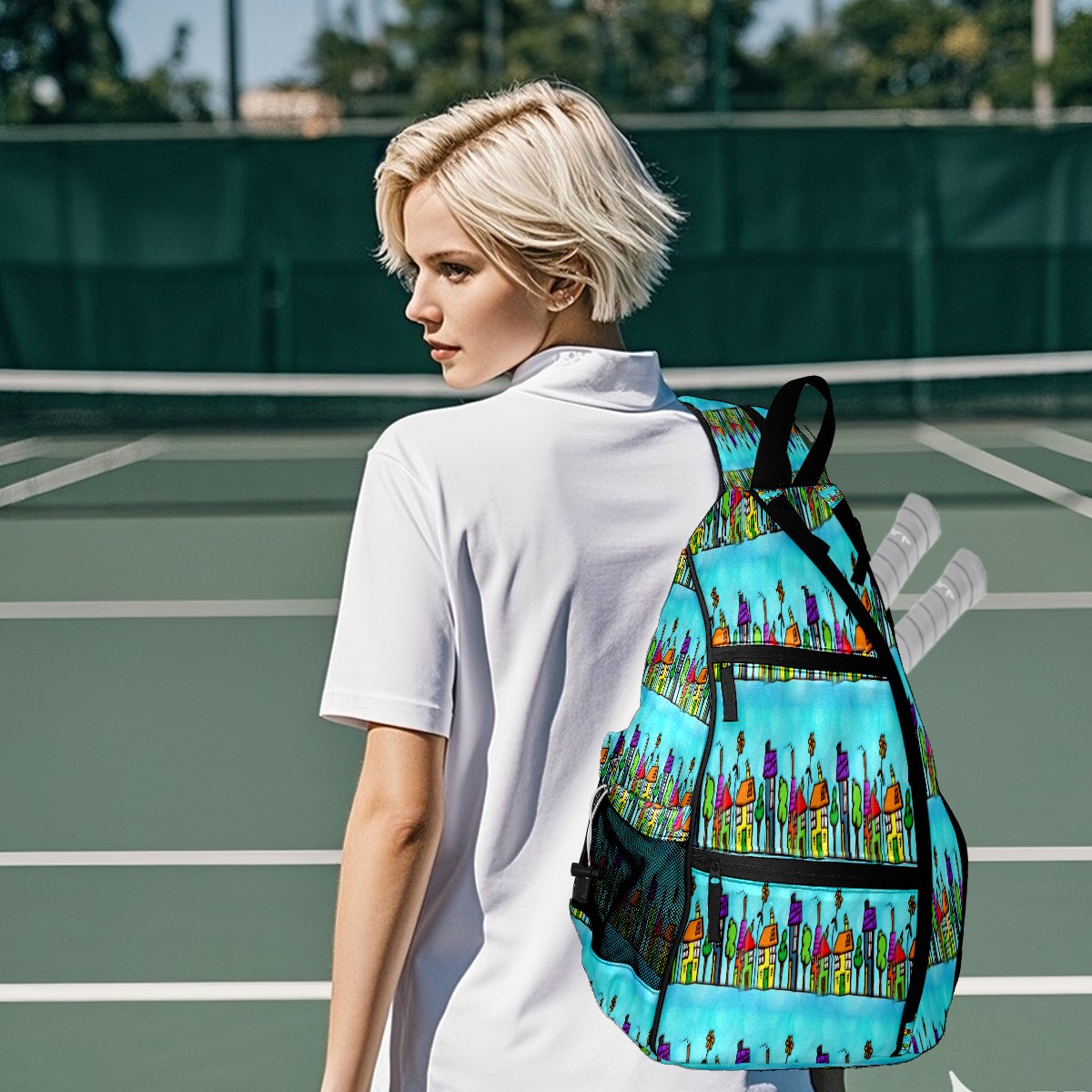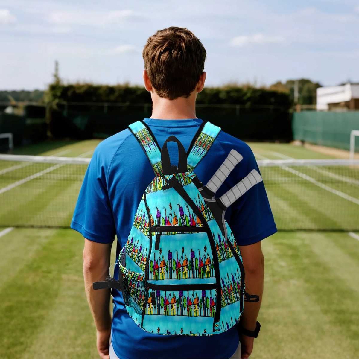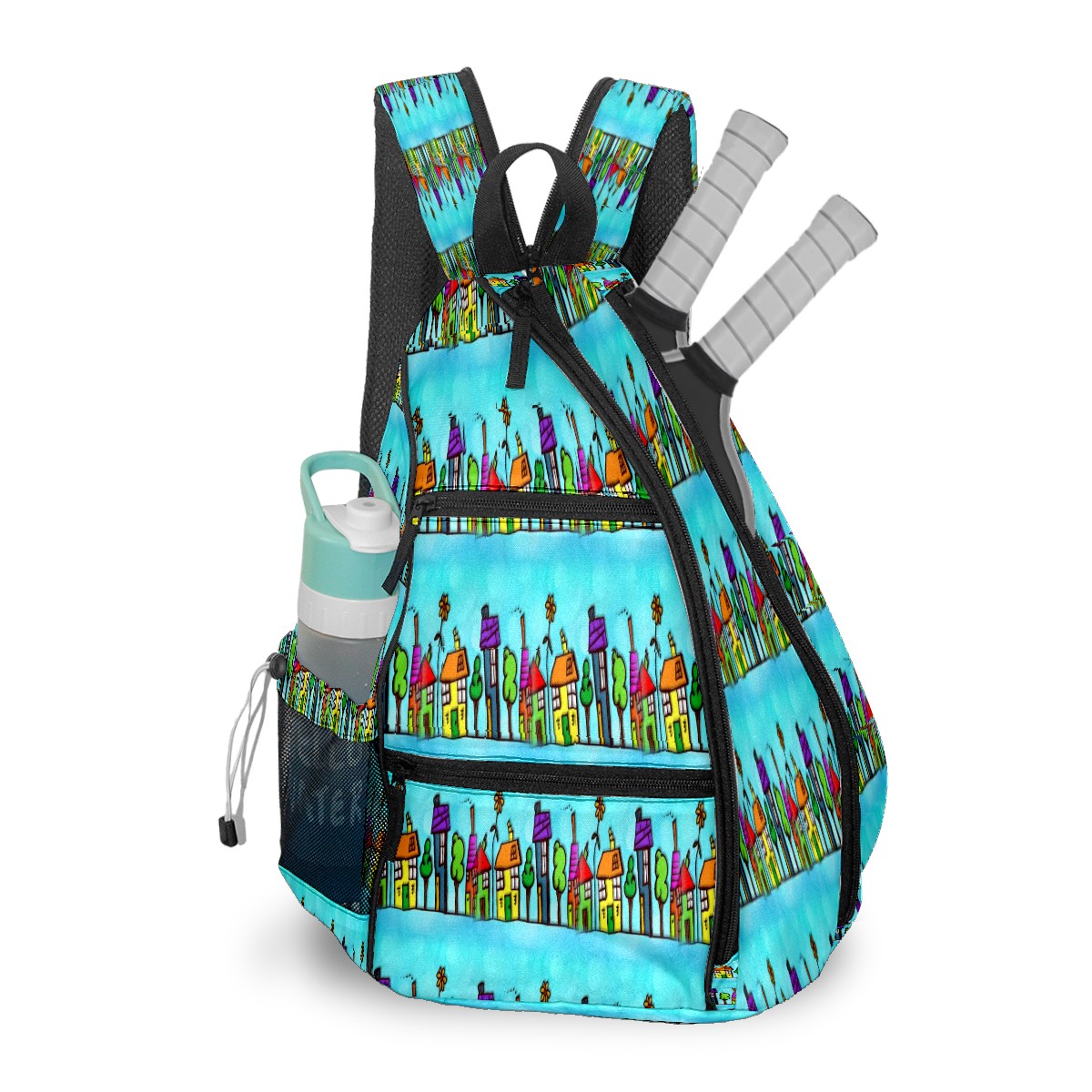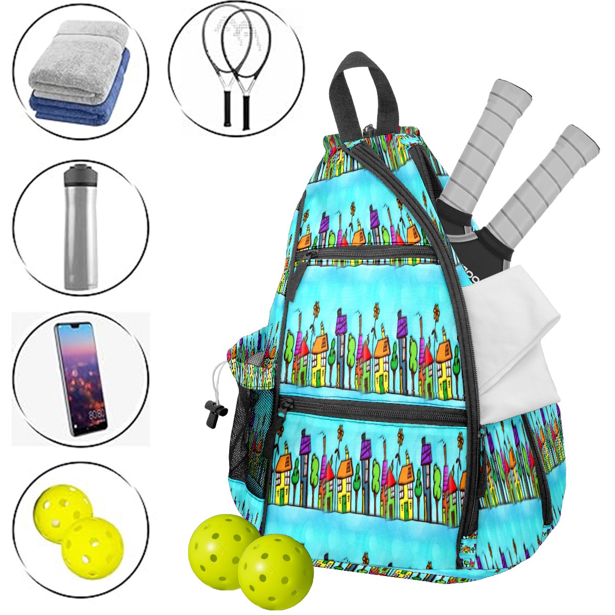 Multifunctional Pickleball Bag,Large Capacity Sports Pickleball Racket Bag, Water Bottle Holder and Fence Hook,Suitable for Both Men Women -House