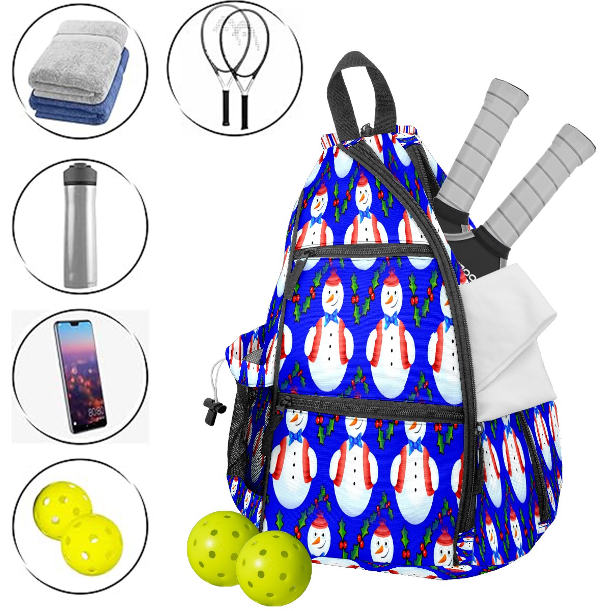 Multifunctional Pickleball Bag,Large Capacity Sports Pickleball Racket Bag, Water Bottle Holder and Fence Hook,Suitable for Both Men Women -Snowman