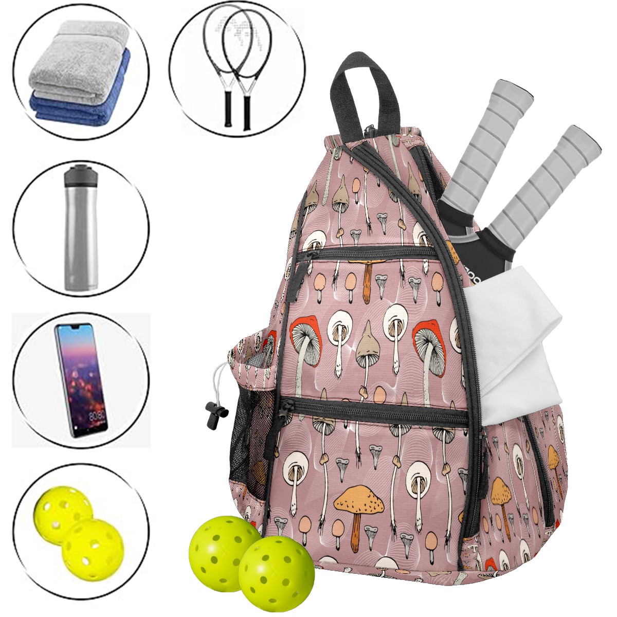 Multifunctional Pickleball Bag,Large Capacity Sports Pickleball Racket Bag, Water Bottle Holder and Fence Hook,Suitable for Both Men Women -Mushrooms