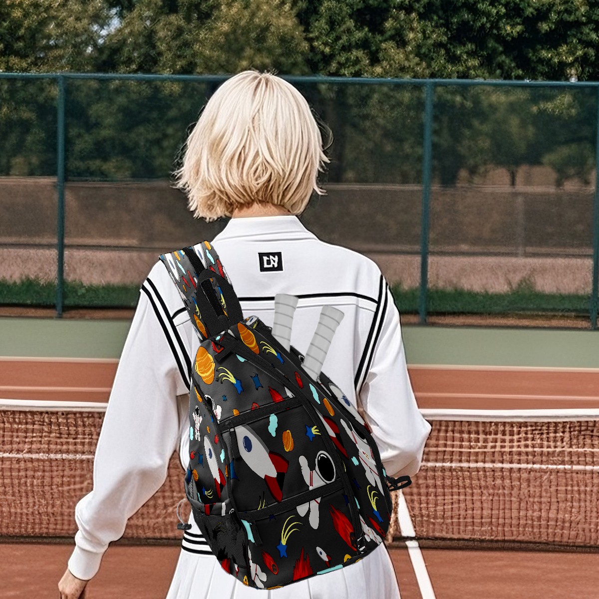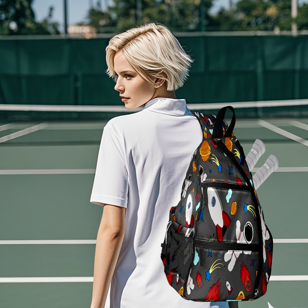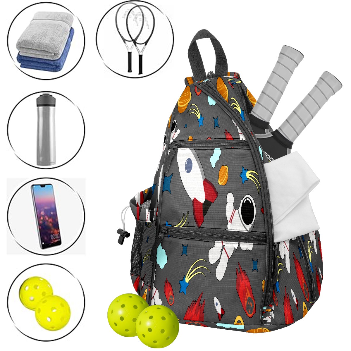 Multifunctional Pickleball Bag,Large Capacity Sports Pickleball Racket Bag, Water Bottle Holder and Fence Hook,Suitable for Both Men Women -Seamless Pattern