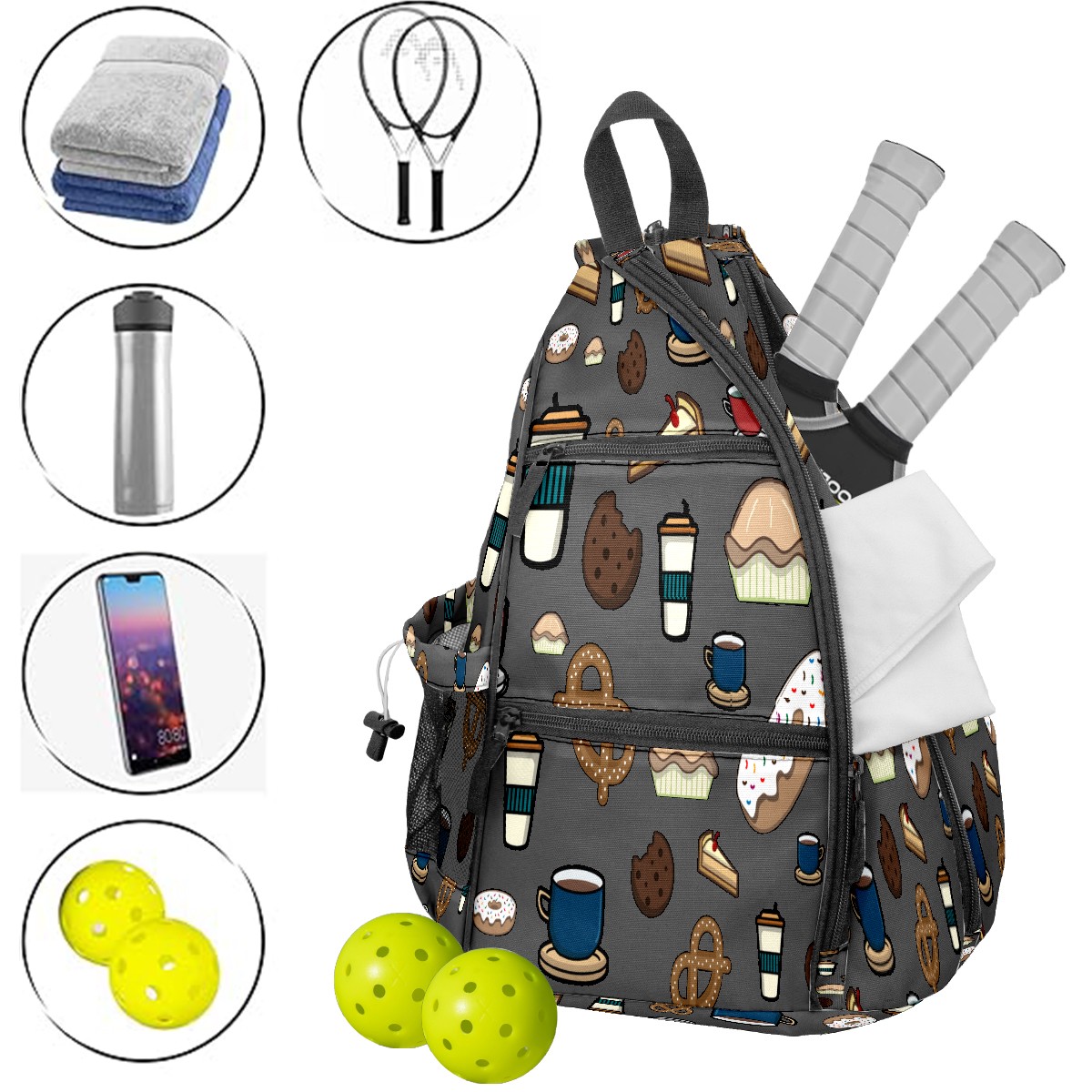 Multifunctional Pickleball Bag,Large Capacity Sports Pickleball Racket Bag, Water Bottle Holder and Fence Hook,Suitable for Both Men Women -Beverage
