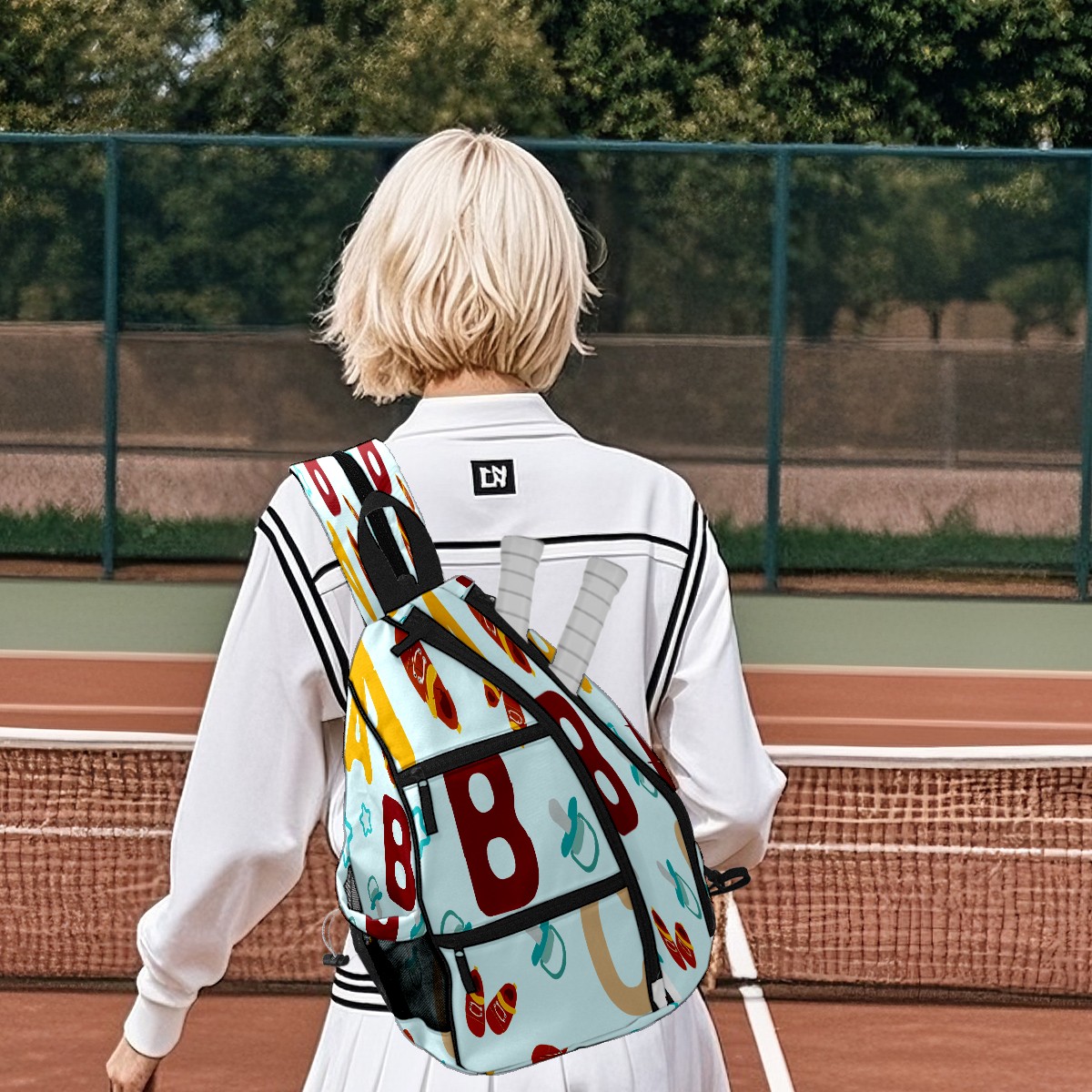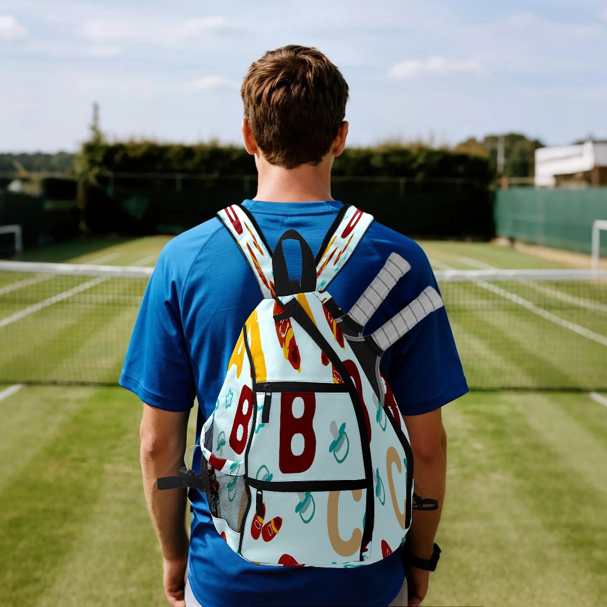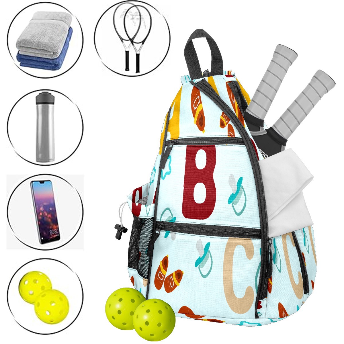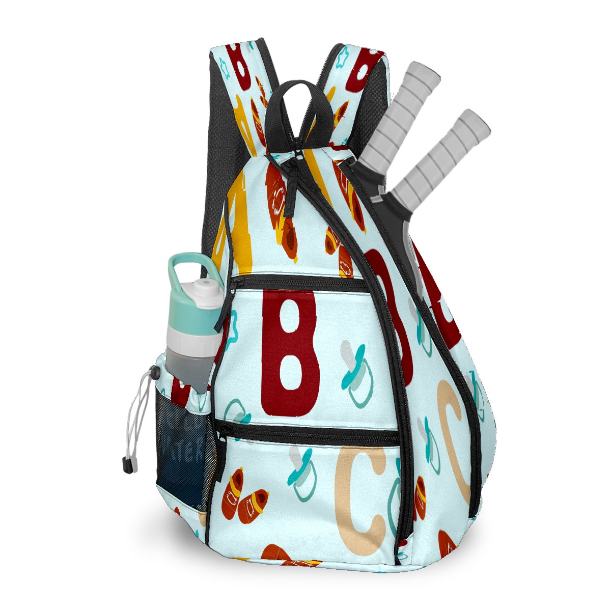 Multifunctional Pickleball Bag,Large Capacity Sports Pickleball Racket Bag, Water Bottle Holder and Fence Hook,Suitable for Both Men Women -Abc Pattern