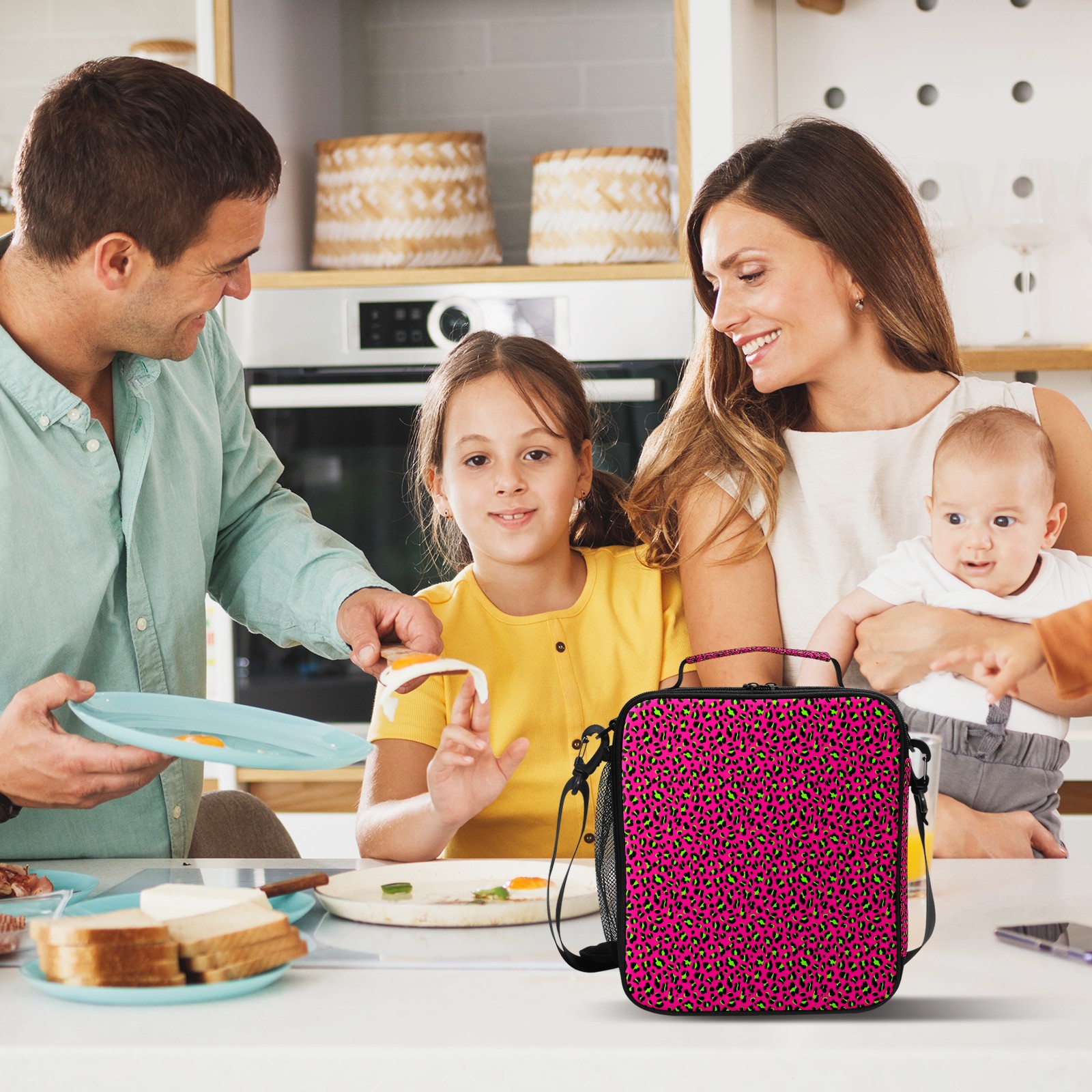 方形餐包 80s Neon Pink Lime Green Leopard