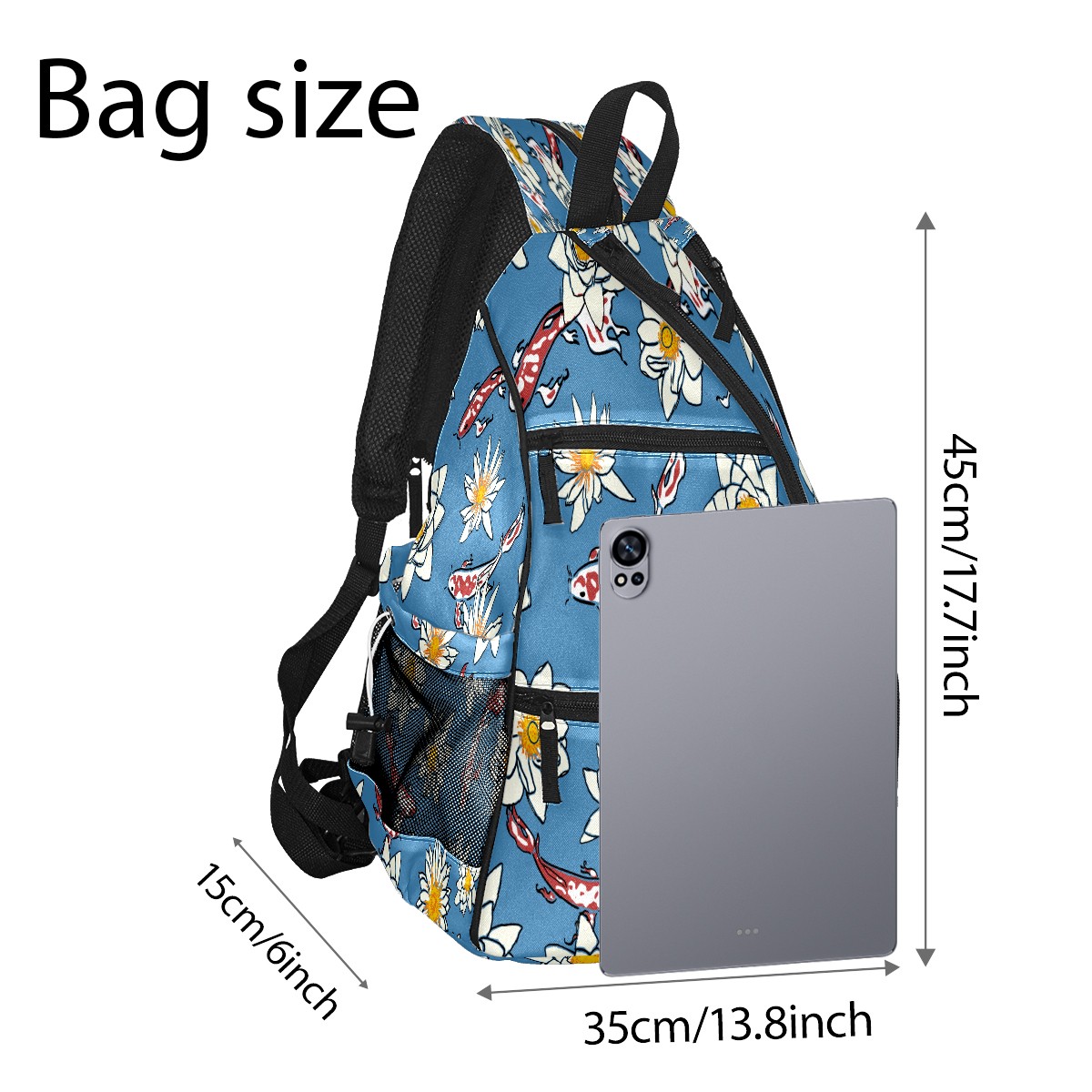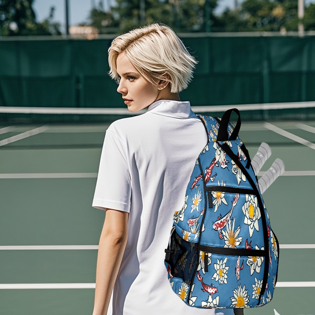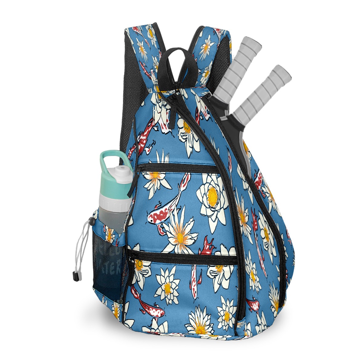 Multifunctional Pickleball Bag,Large Capacity Sports Pickleball Racket Bag, Water Bottle Holder and Fence Hook,Suitable for Both Men Women -Koi Pattern