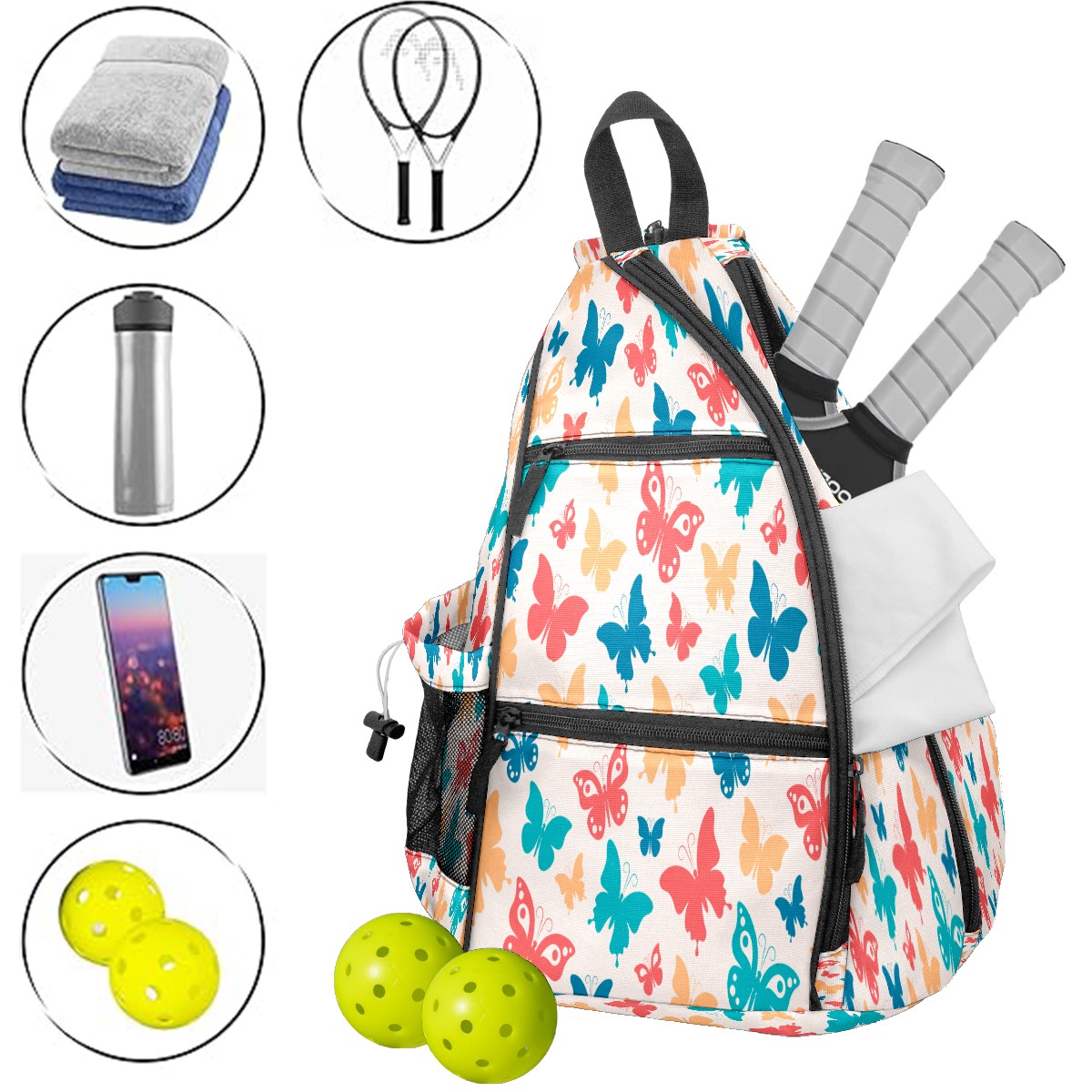 Multifunctional Pickleball Bag,Large Capacity Sports Pickleball Racket Bag, Water Bottle Holder and Fence Hook,Suitable for Both Men Women -Color Butterflies
