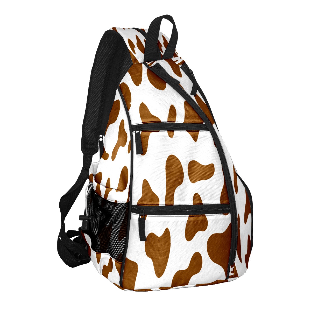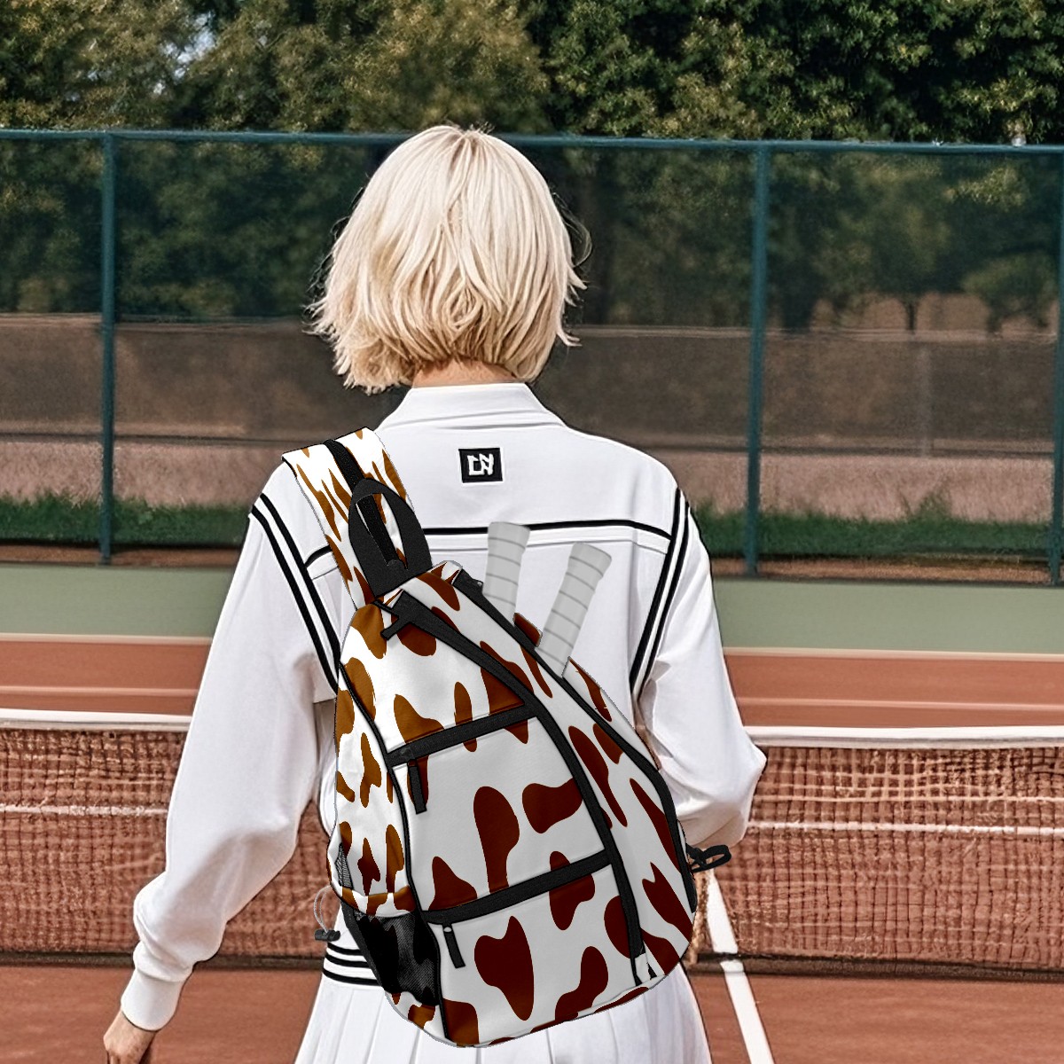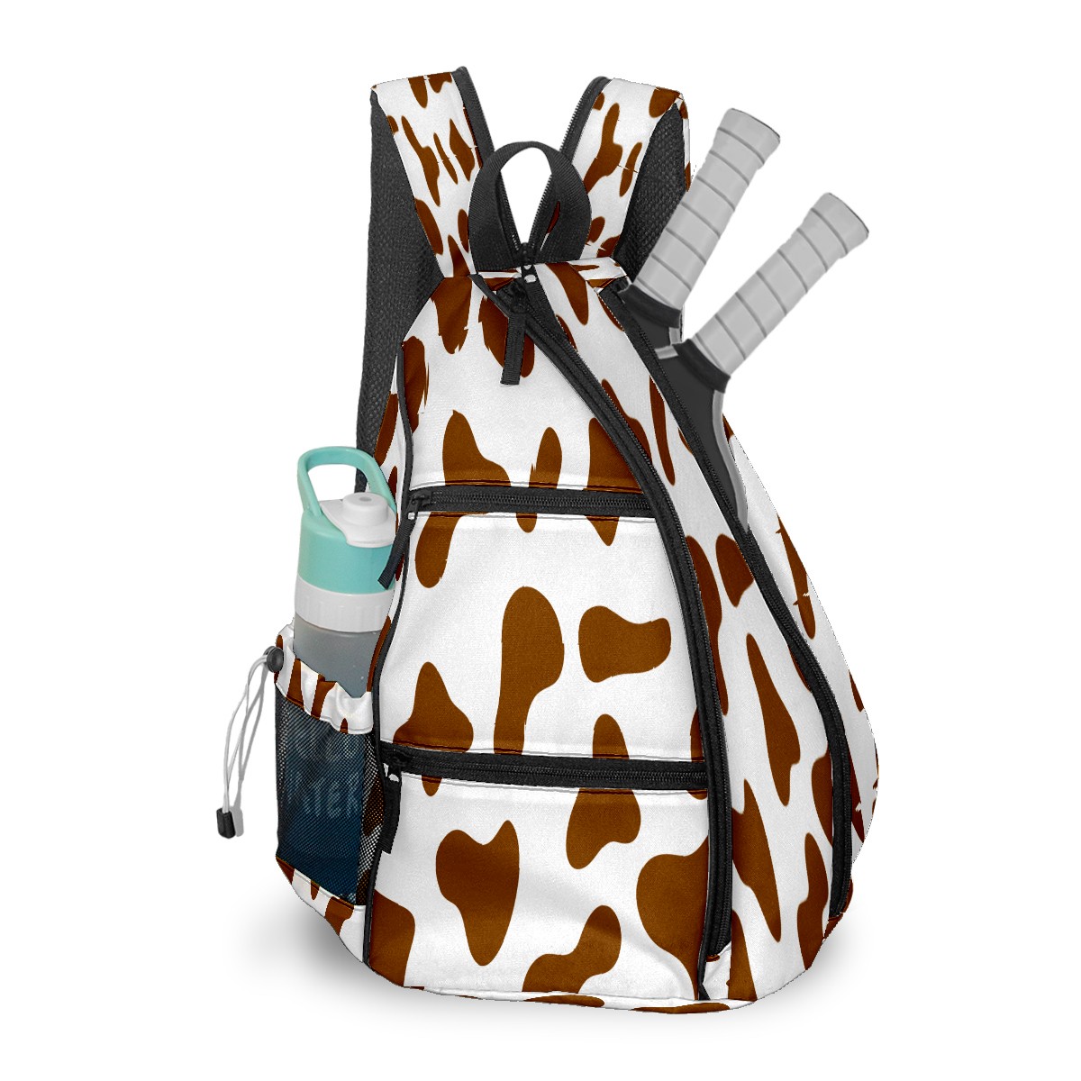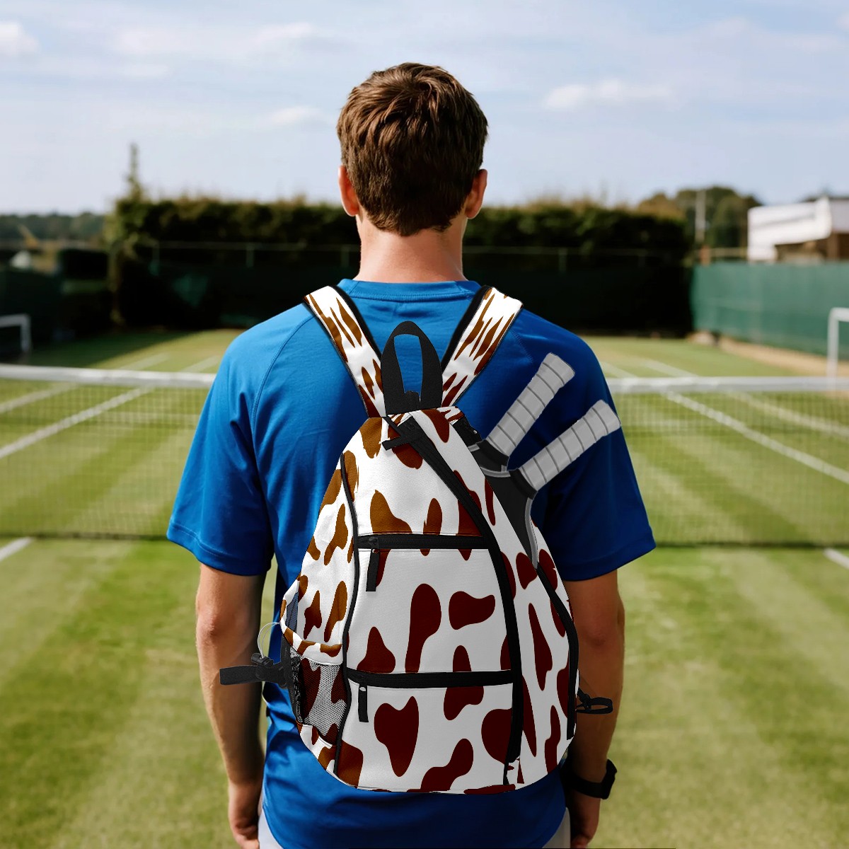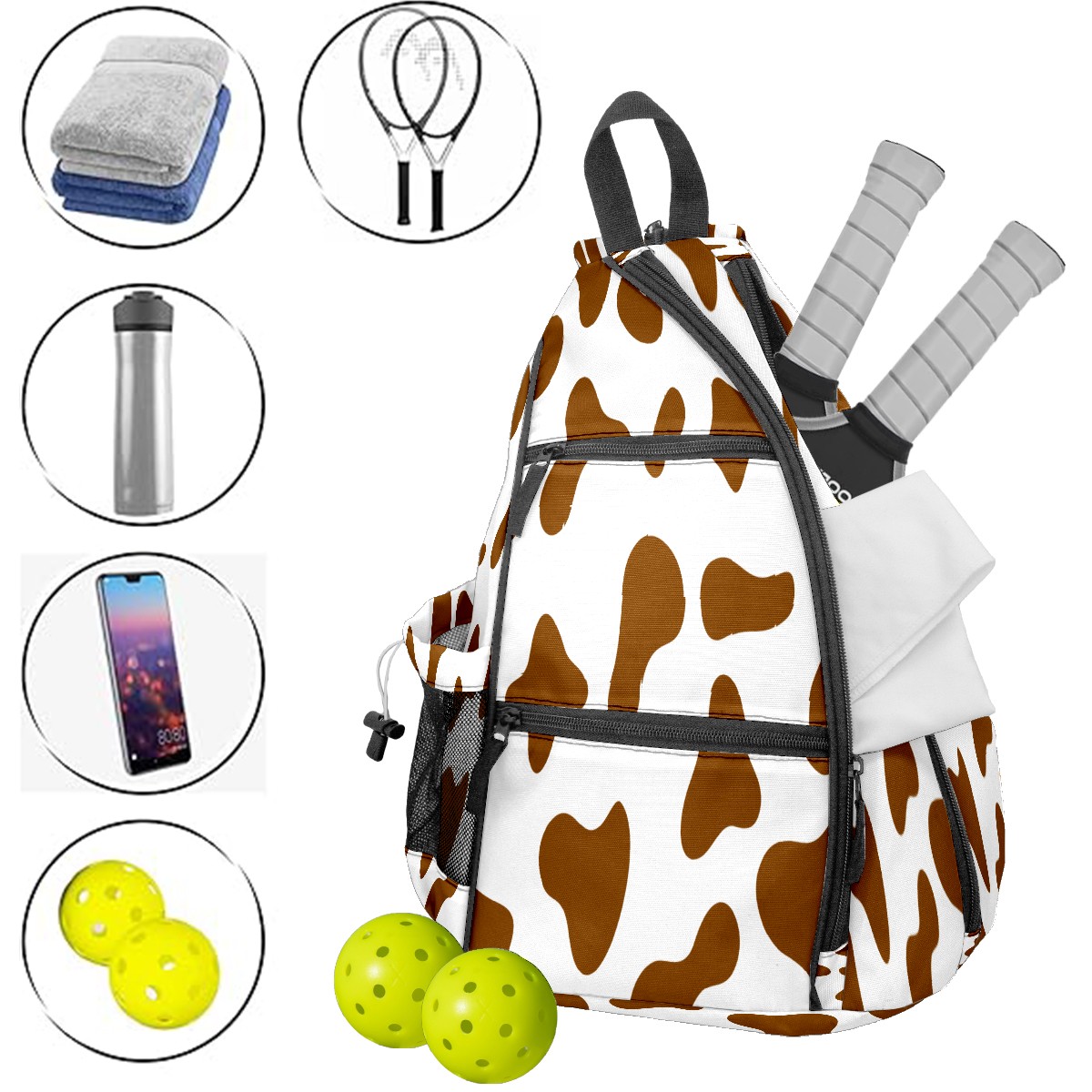 Multifunctional Pickleball Bag,Large Capacity Sports Pickleball Racket Bag, Water Bottle Holder and Fence Hook,Suitable for Both Men Women -Cow Print