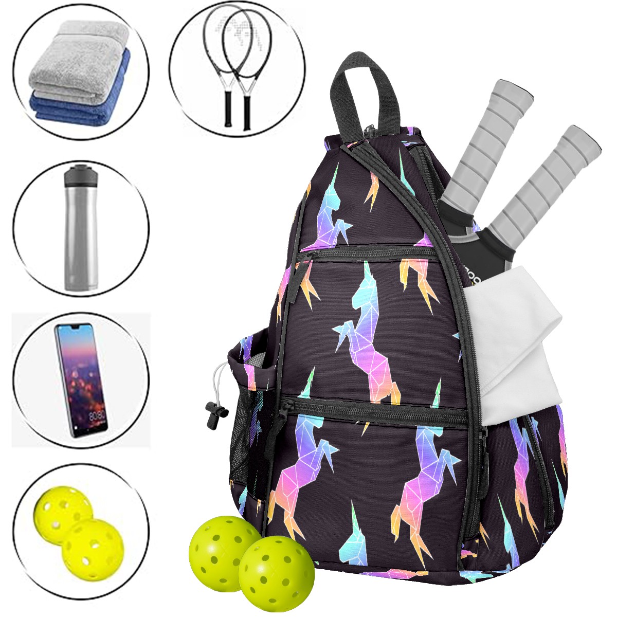 • <p>This peakball backpack boasts a spacious 14-inch x 10-inch x 19-inch interior. The main compartment is clearly divided, easily accommodating 2-3 rackets and 6-8 peakballs. A side pocket can hold a water bottle, and an inner pocket provides storage for small items like phones and keys. The adjustable, thickened shoulder straps can be adjusted to fit different body types, effectively distributing weight and preventing shoulder and back pain even when fully loaded and worn for extended periods. Its convenience is particularly outstanding – all peakball accessories can be neatly stored in one bag, making travel easy. Moreover, its versatility is incredibly broad. Besides peakballs, it can also be used as a badminton or table tennis racket bag, and is perfect for carrying clothes and personal items when going to the gym or on short trips. One bag, multiple uses, and super convenient. For pickleball players of all ages and genders, this is not just an essential equipment storage bag, but also a thoughtful gift—its simple and durable design suits everyone, making it perfect for birthdays, holidays, or as a team reward for teammates. Almost every sports enthusiast who has used it praises its practicality and versatility.</p>