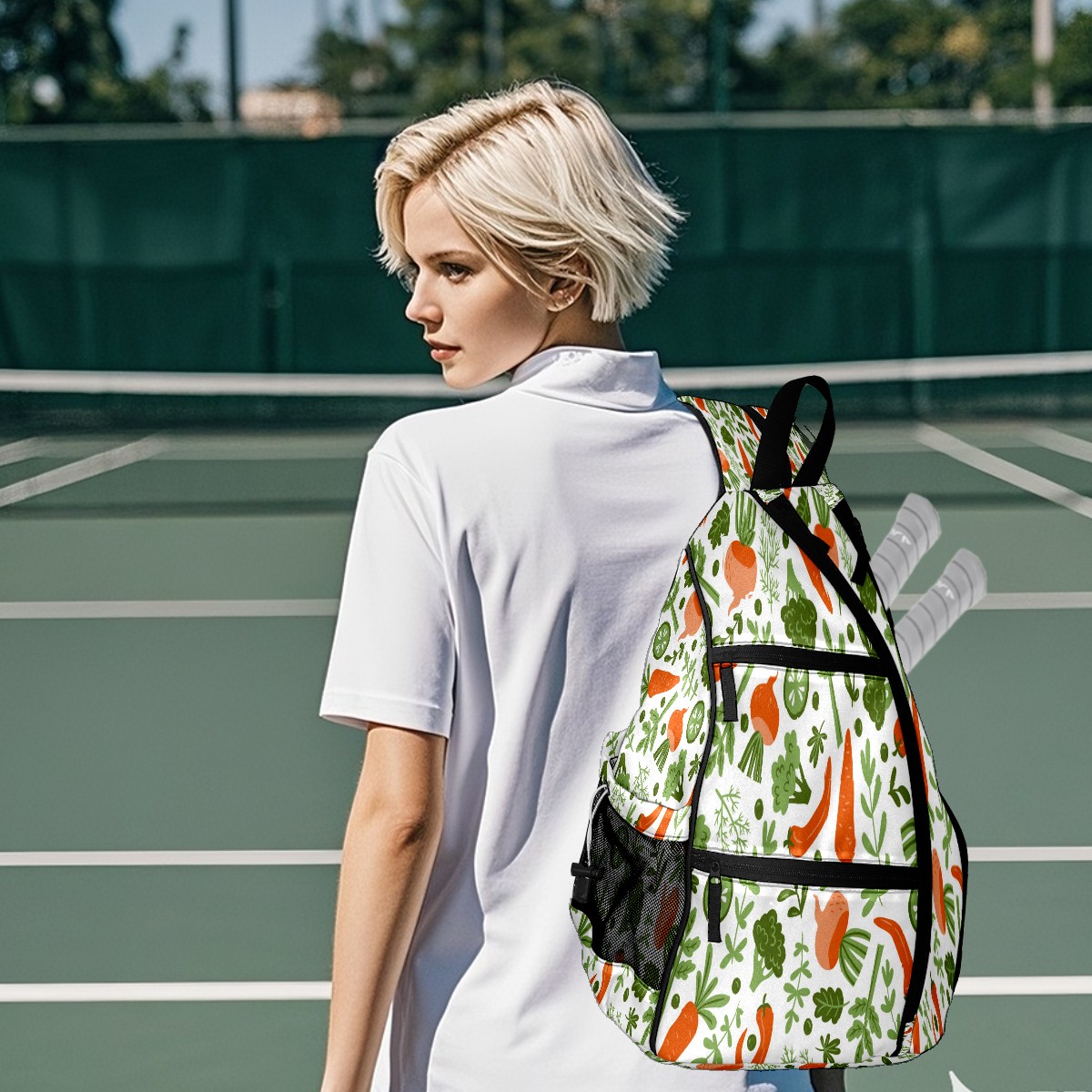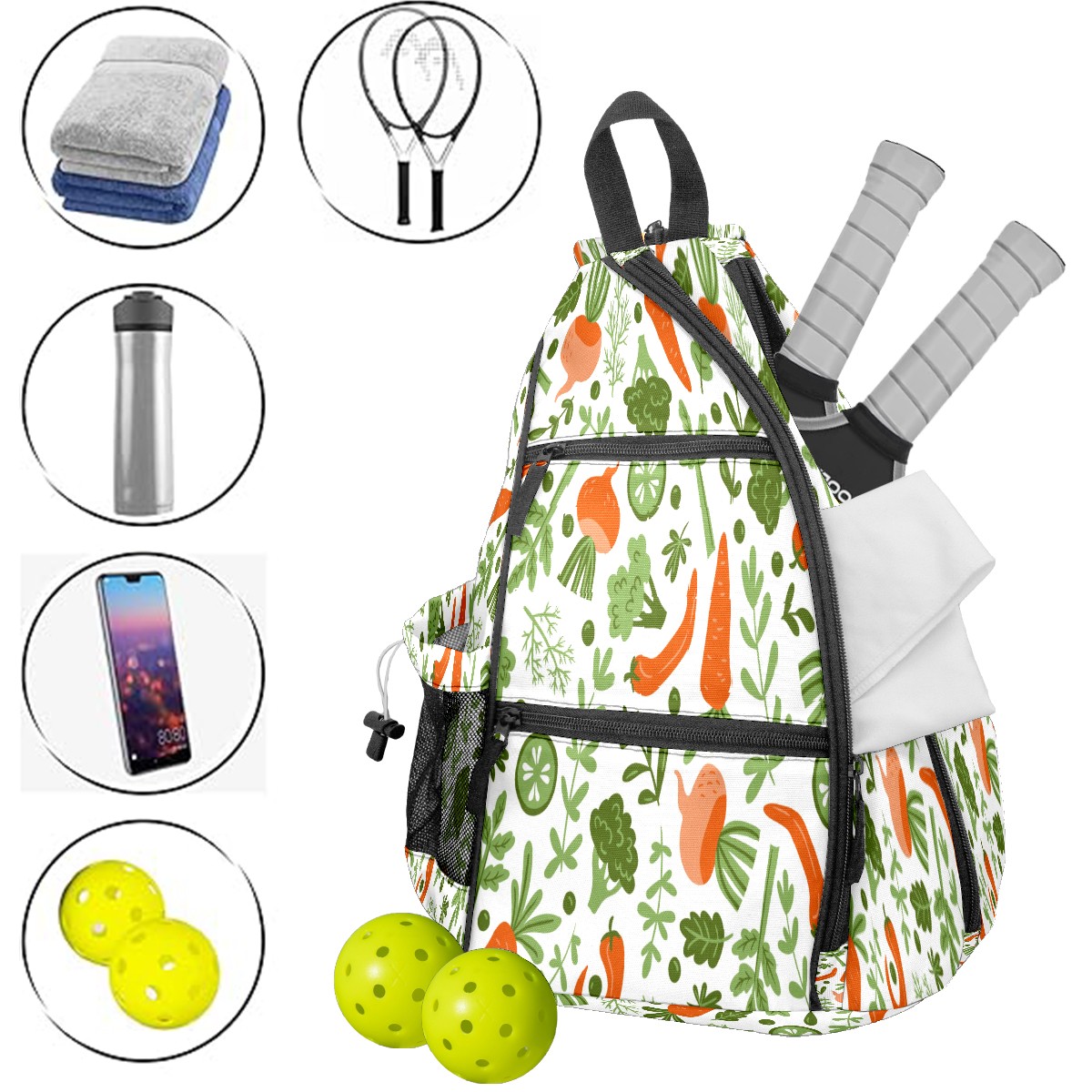 Multifunctional Pickleball Bag,Large Capacity Sports Pickleball Racket Bag, Water Bottle Holder and Fence Hook,Suitable for Both Men Women -Fruits