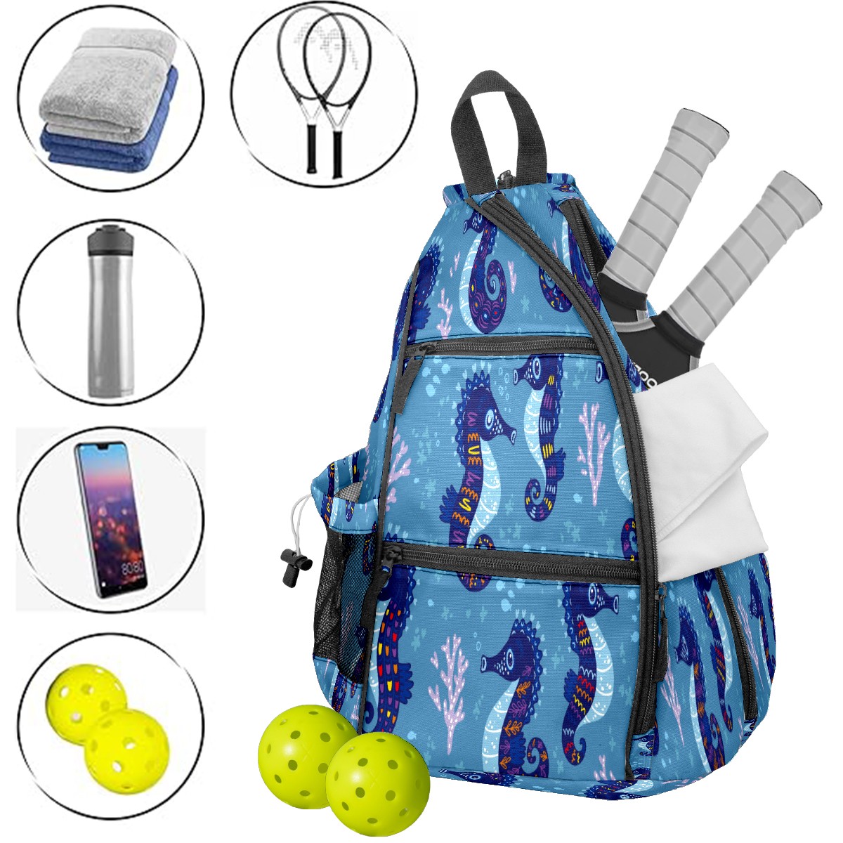 <p>This peakball backpack boasts a spacious 14-inch x 10-inch x 19-inch interior. The main compartment is clearly divided, easily accommodating 2-3 rackets and 6-8 peakballs. A side pocket can hold a water bottle, and an inner pocket provides storage for small items like phones and keys. The adjustable, thickened shoulder straps can be adjusted to fit different body types, effectively distributing weight and preventing shoulder and back pain even when fully loaded and worn for extended periods. Its convenience is particularly outstanding – all peakball accessories can be neatly stored in one bag, making travel easy. Moreover, its versatility is incredibly broad. Besides peakballs, it can also be used as a badminton or table tennis racket bag, and is perfect for carrying clothes and personal items when going to the gym or on short trips. One bag, multiple uses, and super convenient. For pickleball players of all ages and genders, this is not just an essential equipment storage bag, but also a thoughtful gift—its simple and durable design suits everyone, making it perfect for birthdays, holidays, or as a team reward for teammates. Almost every sports enthusiast who has used it praises its practicality and versatility.</p>