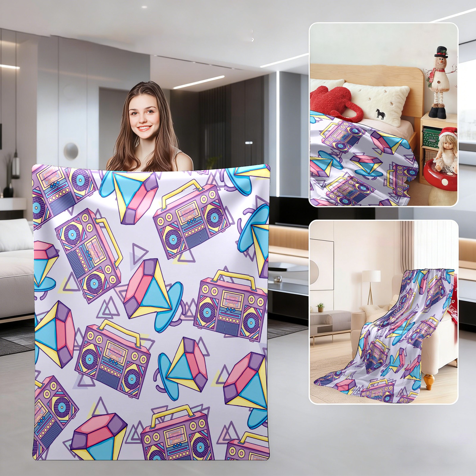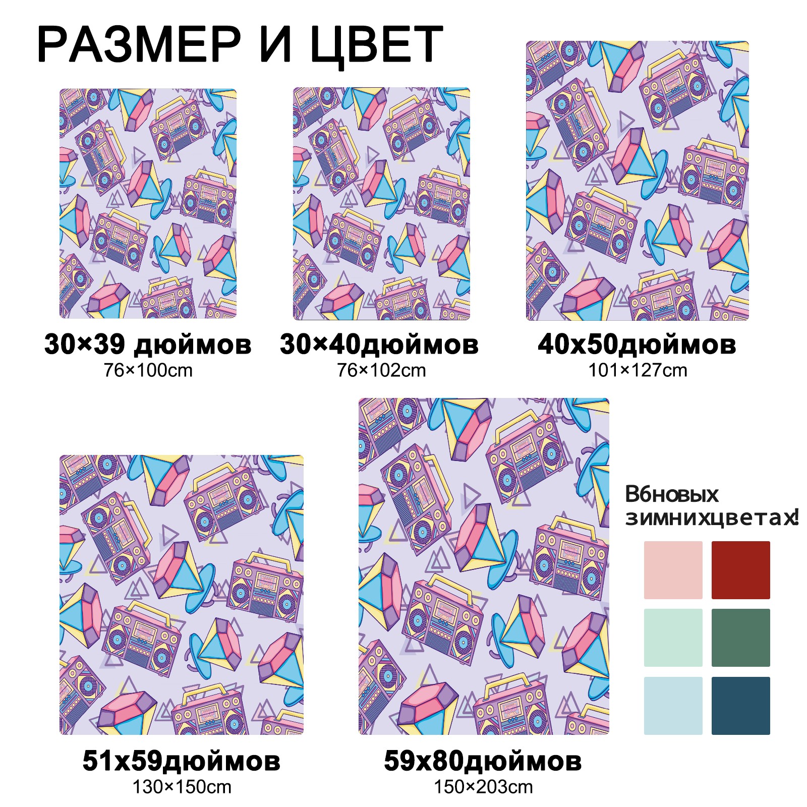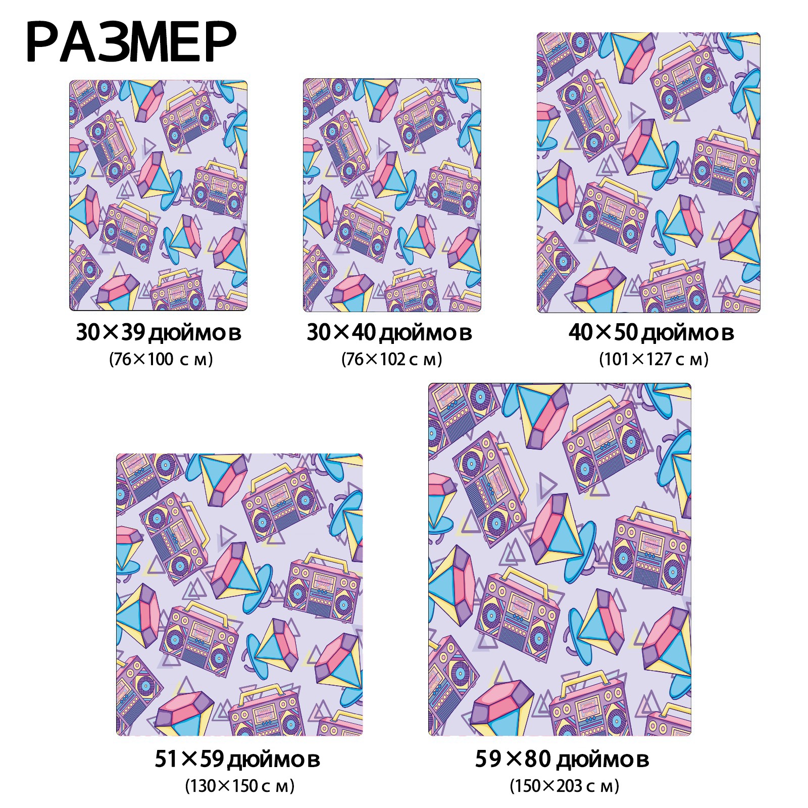 Retro Purple Radio Diamond Pattern 76x102cm