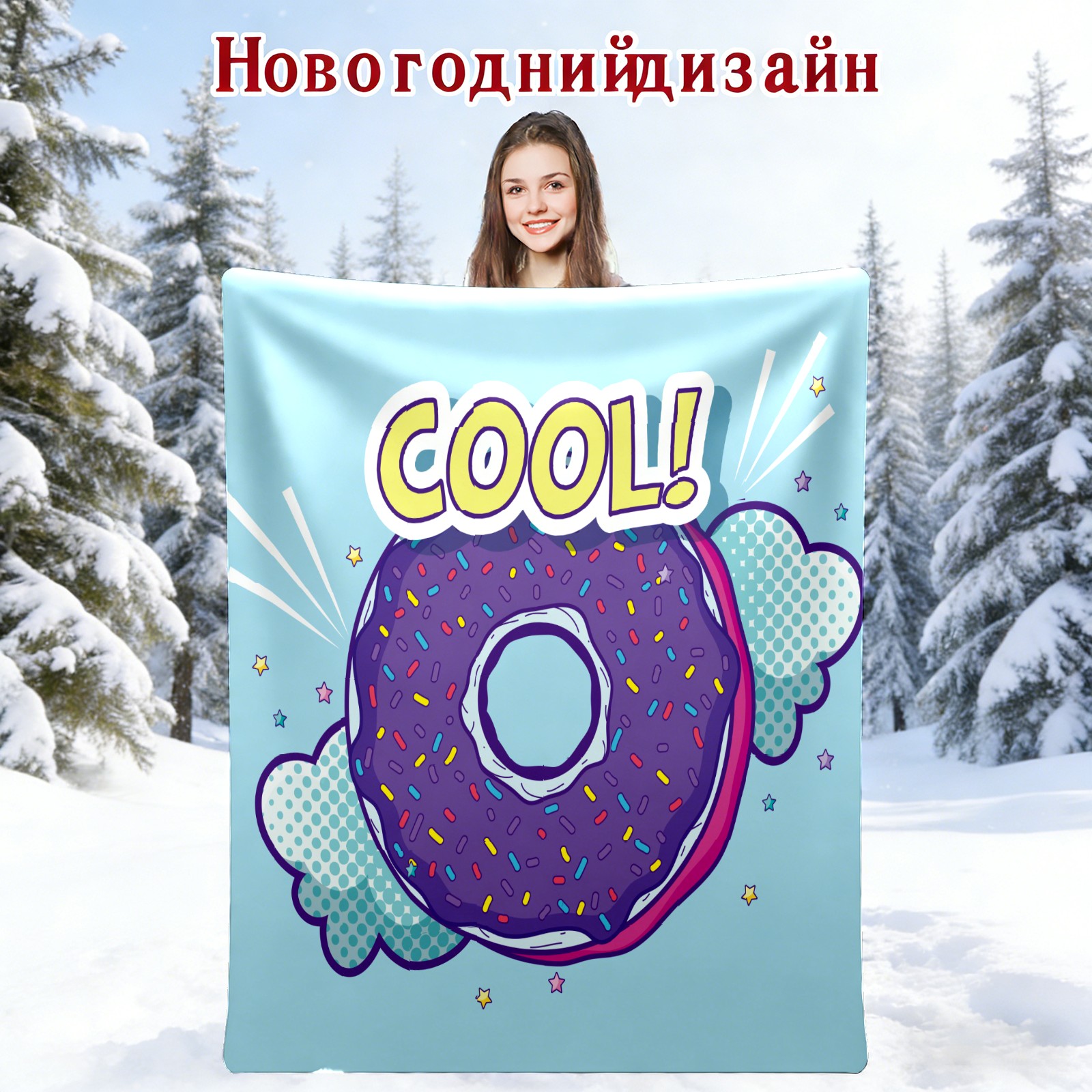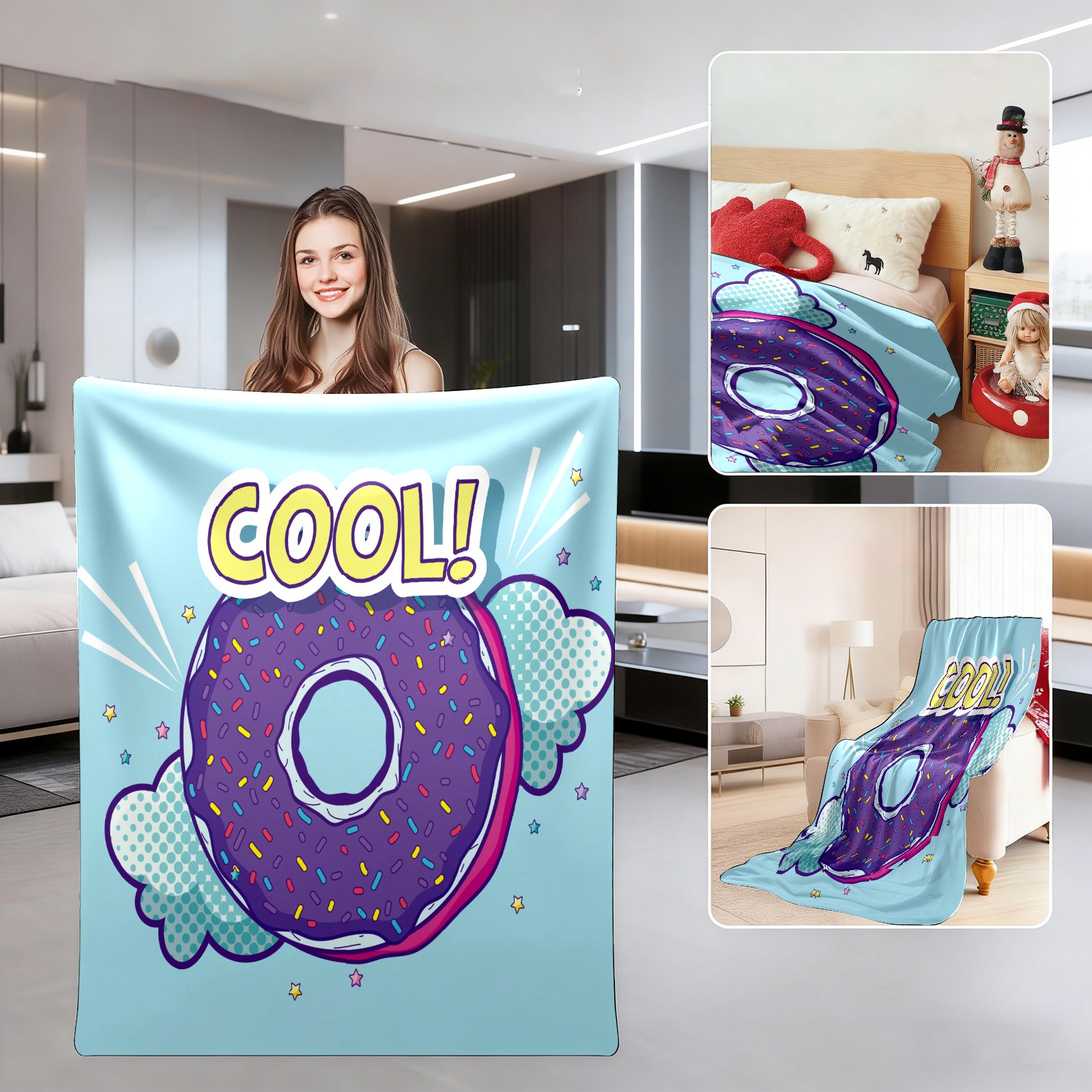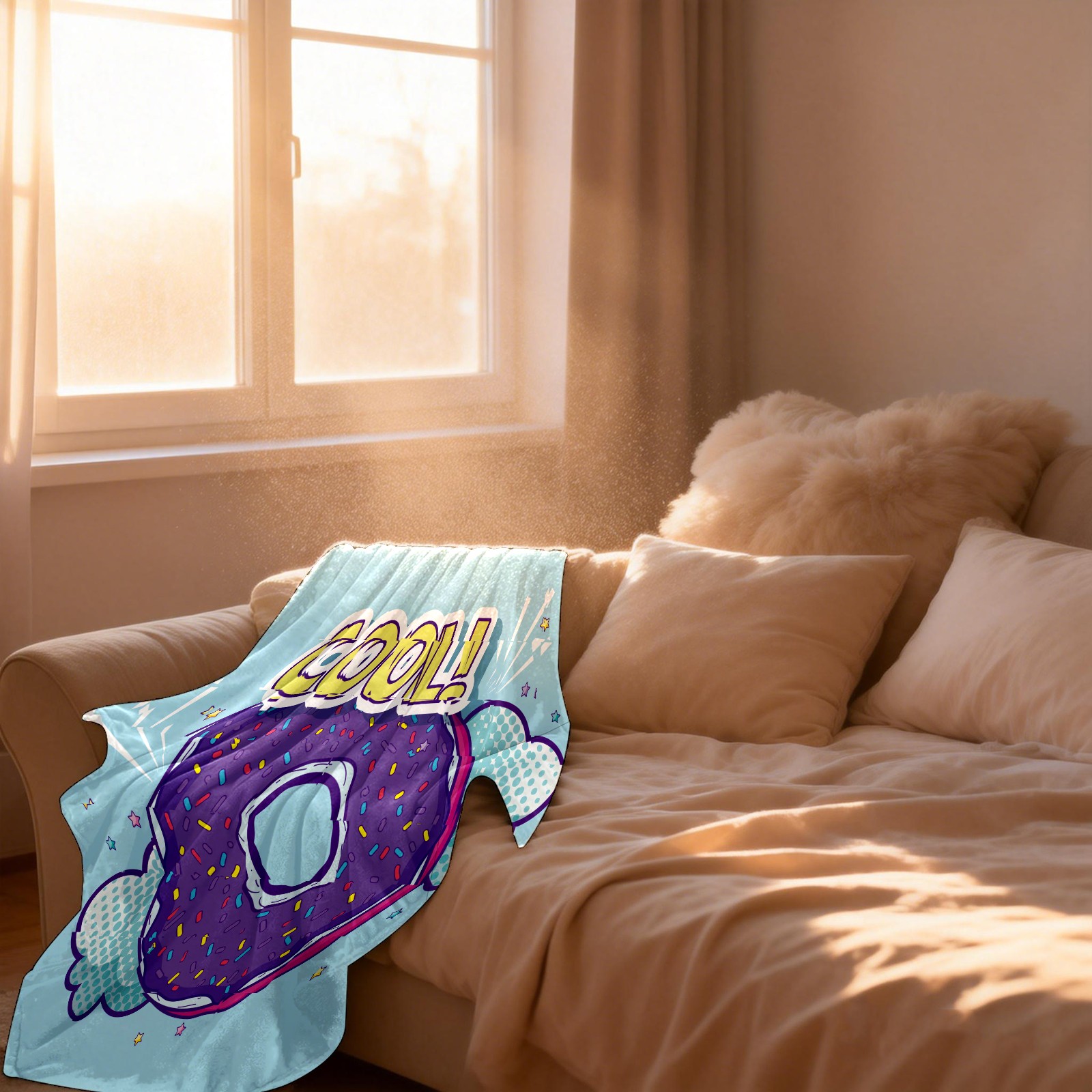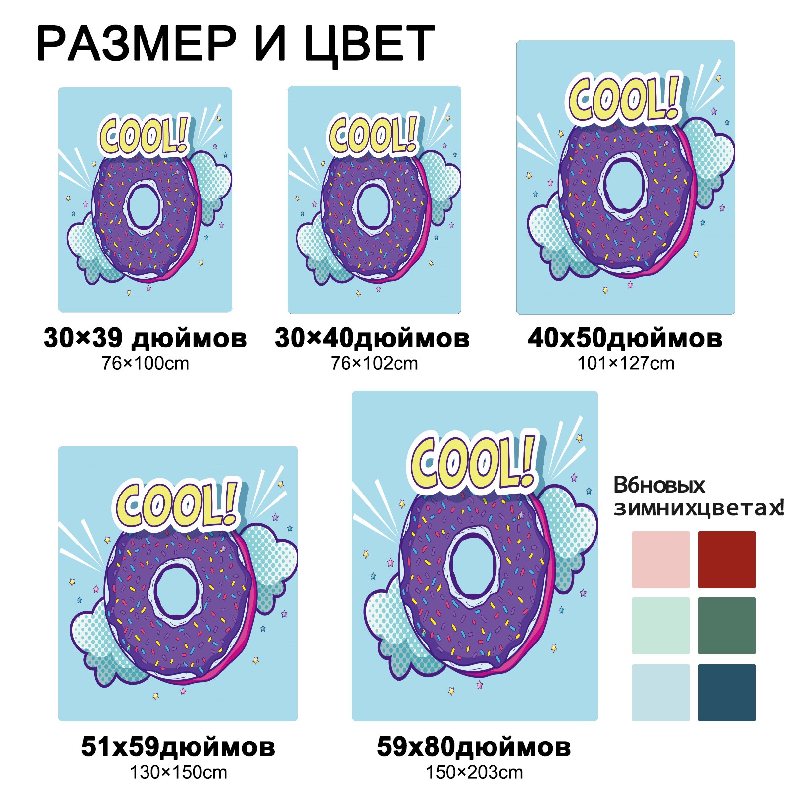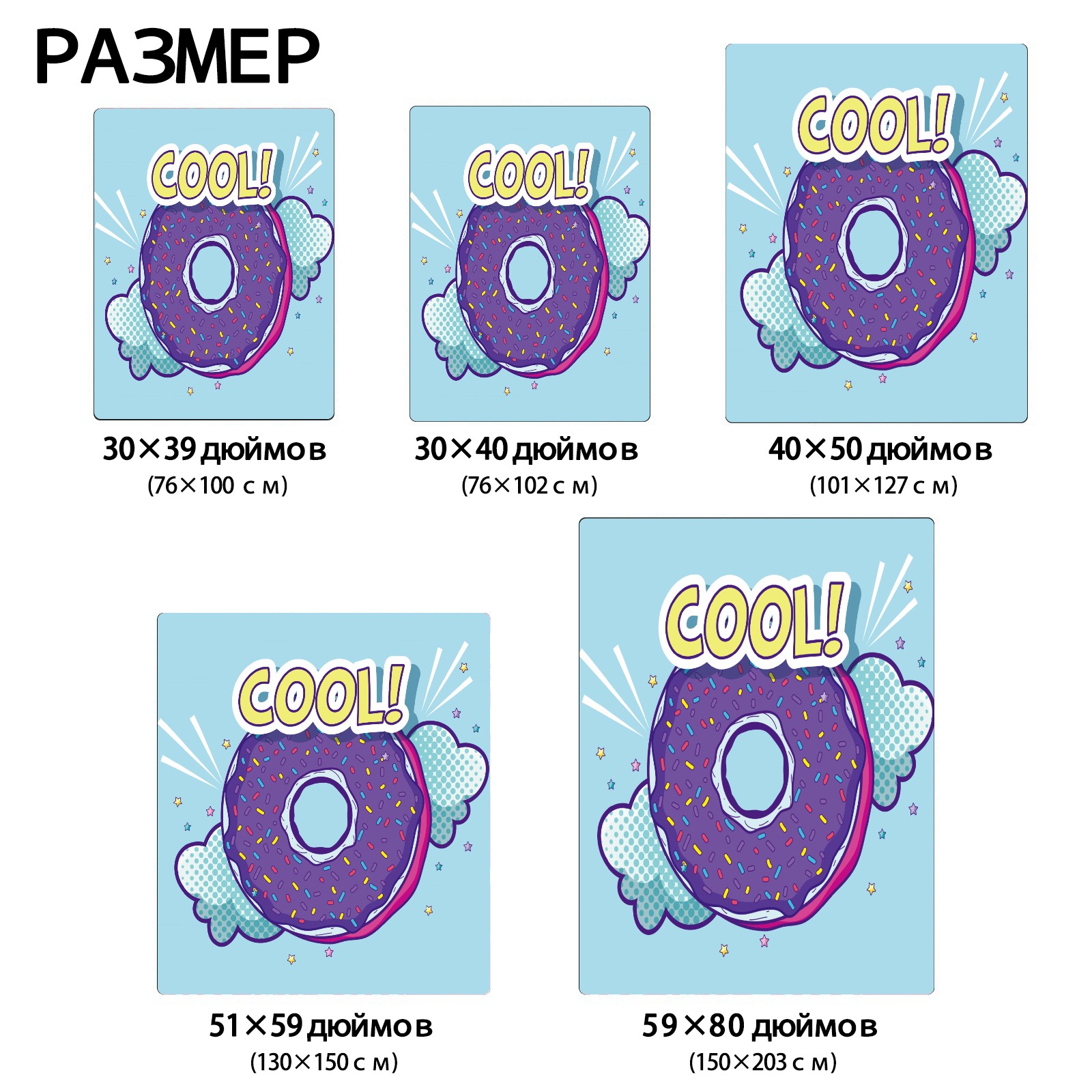 Funny Cartoon Purple Donuts Clouds Cool 76x102cm