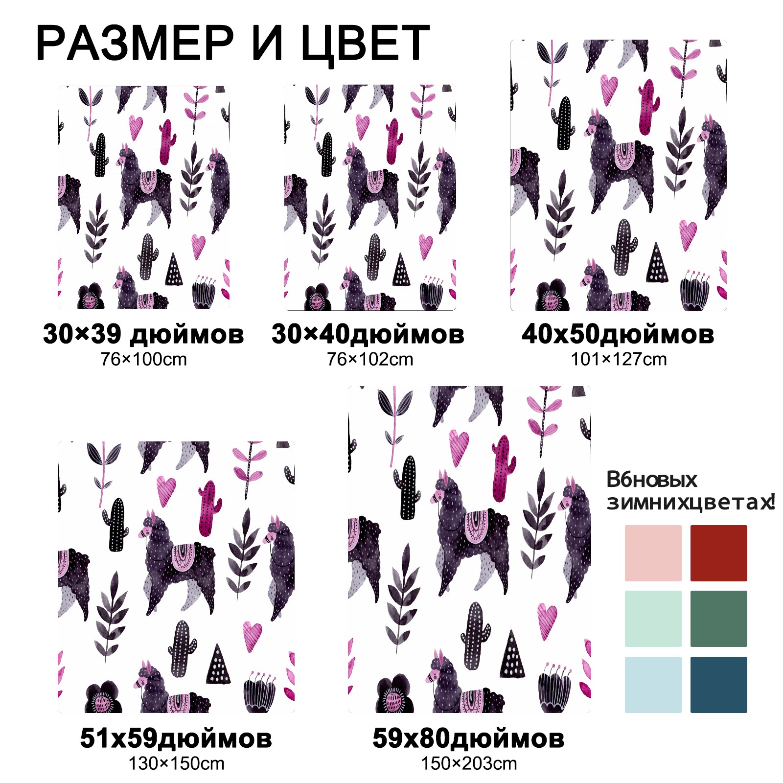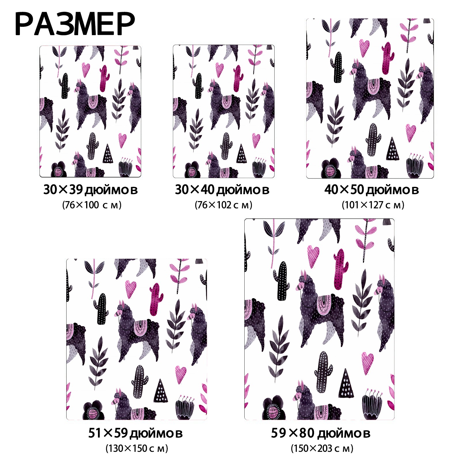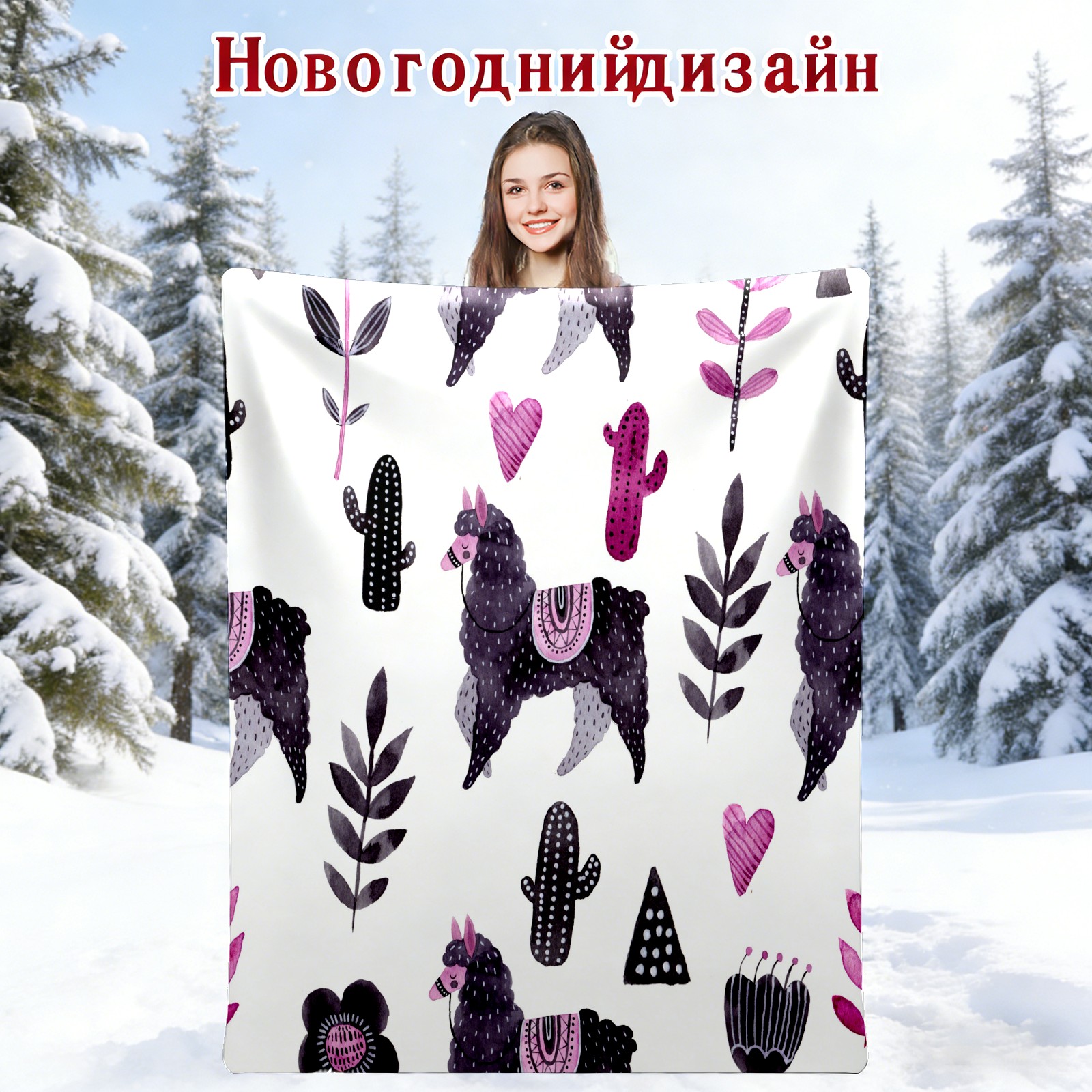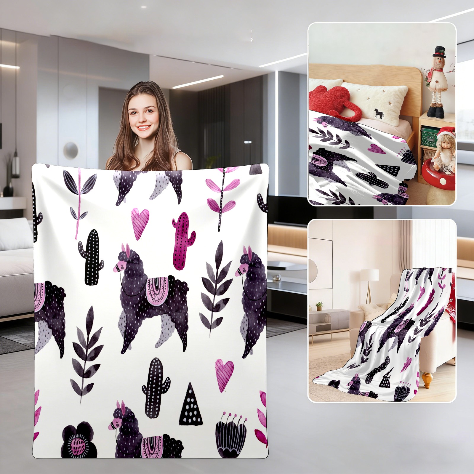 Cartoon Lovely Purple Alpaca 76x102cm