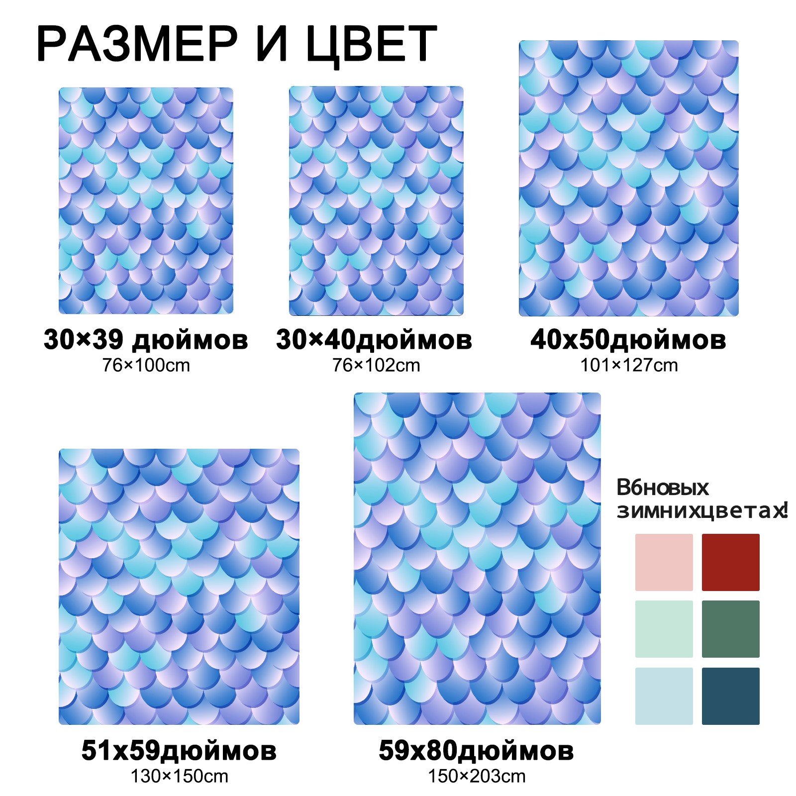 Mermaid Scale Purple Blue 76x100cm