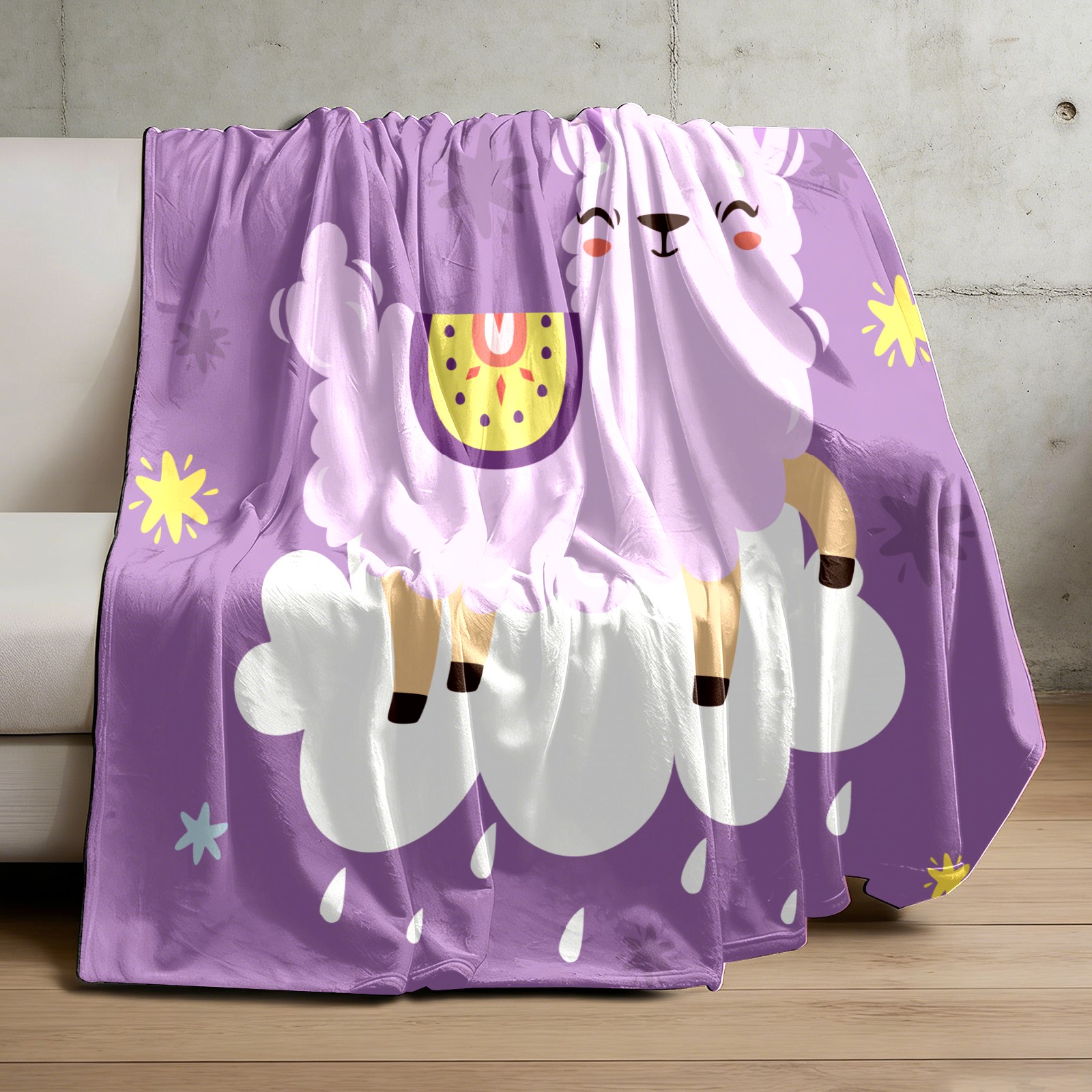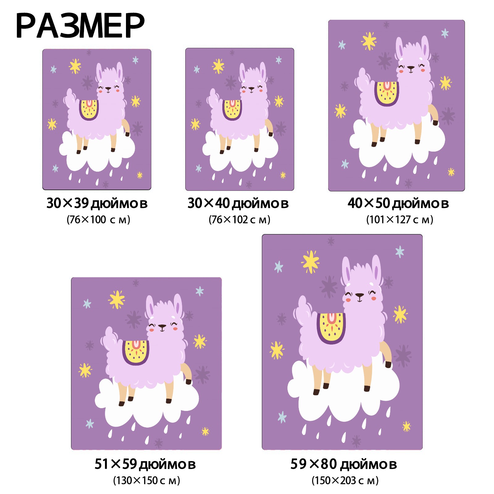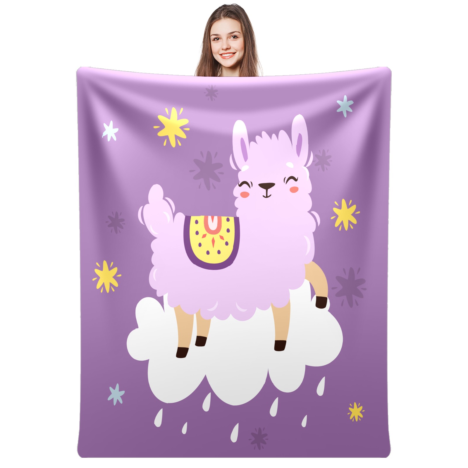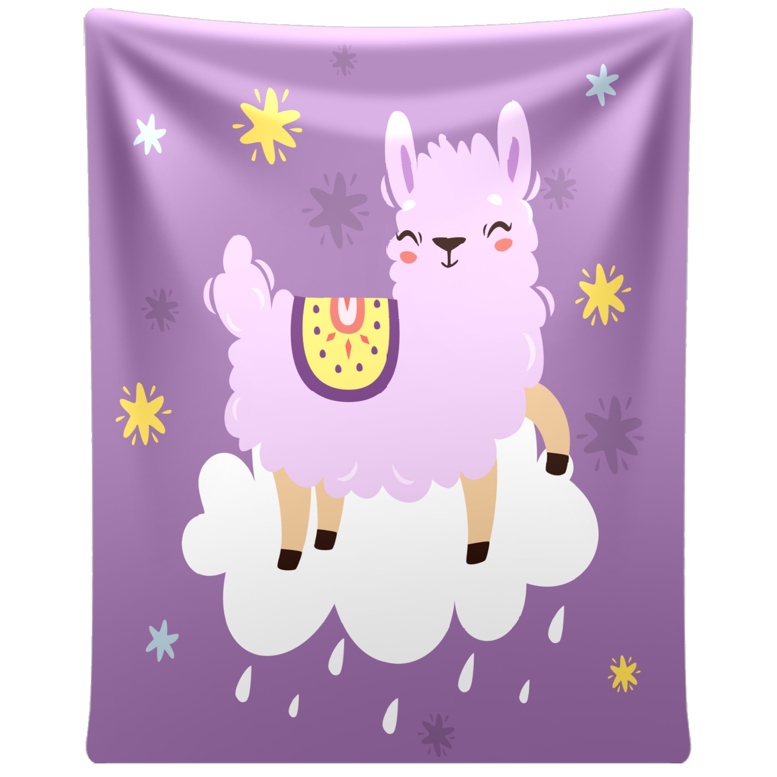 Cute Purple Llama Alpaca On The Cloud 76x100cm
