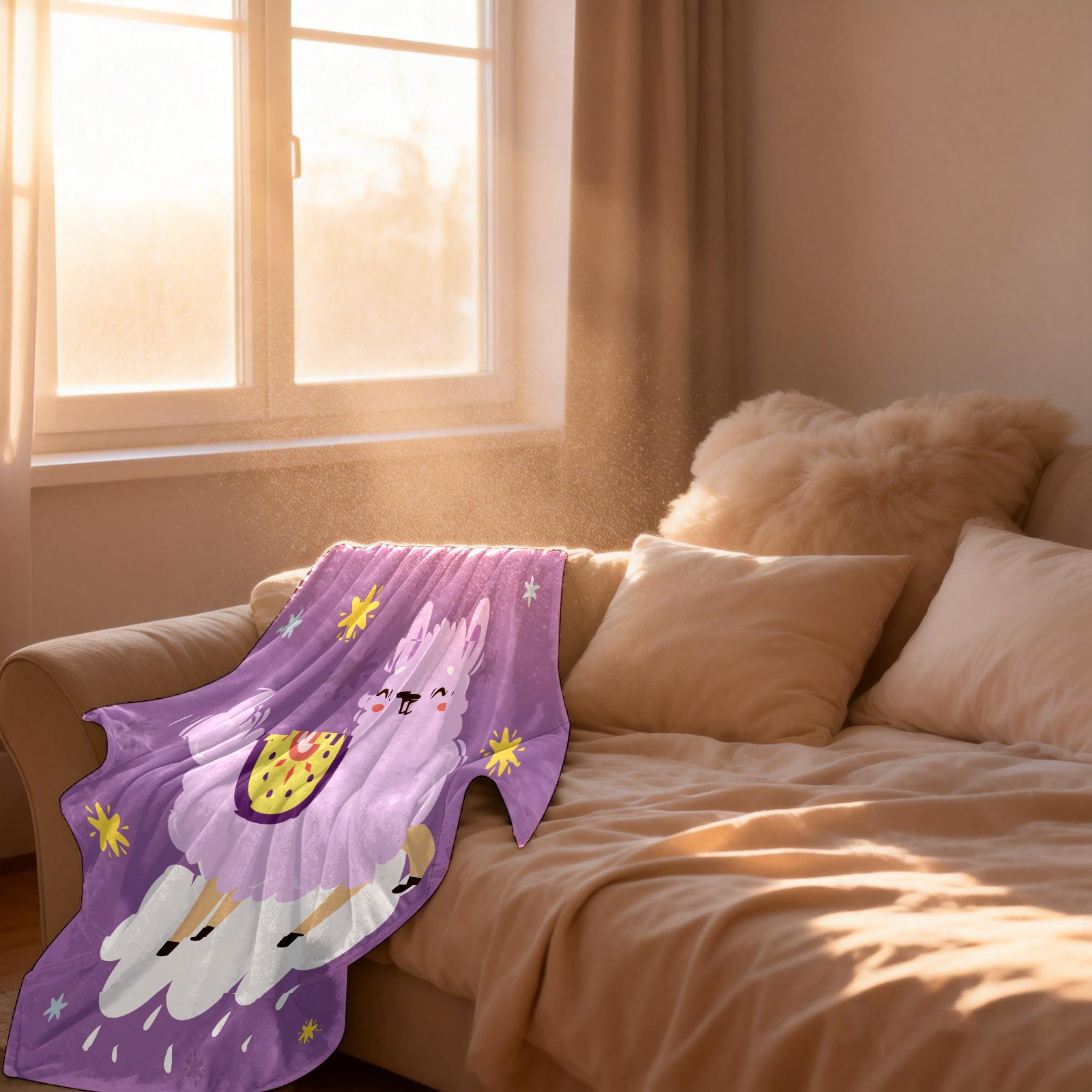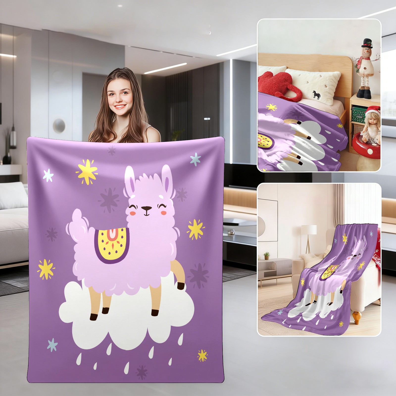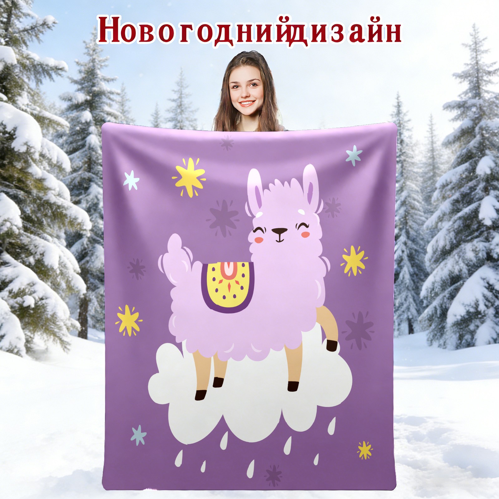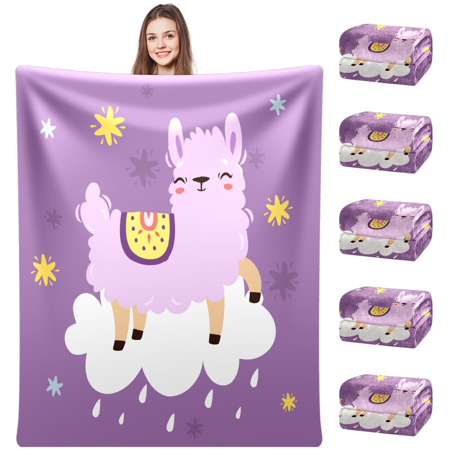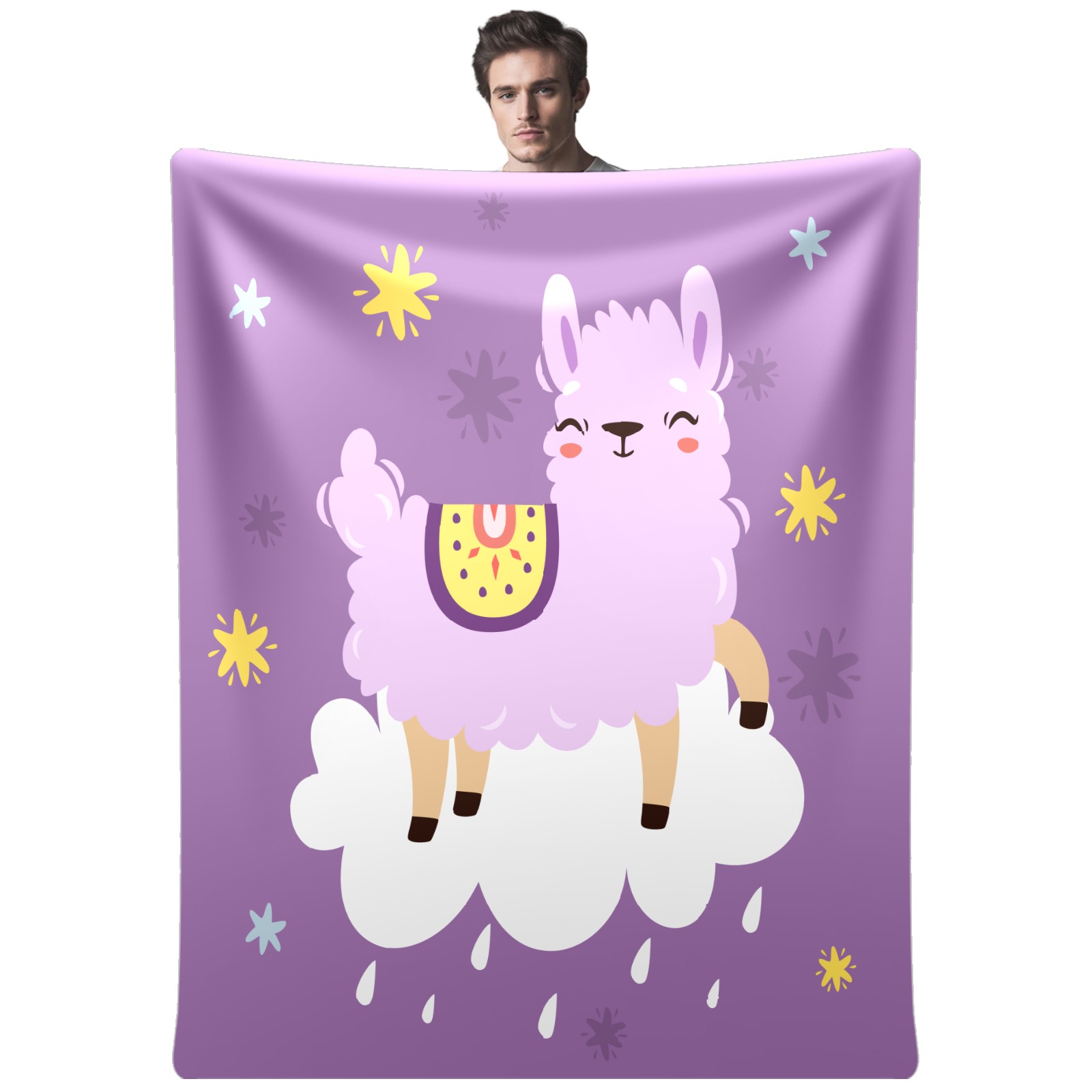 Cute Purple Llama Alpaca On The Cloud 76x100cm