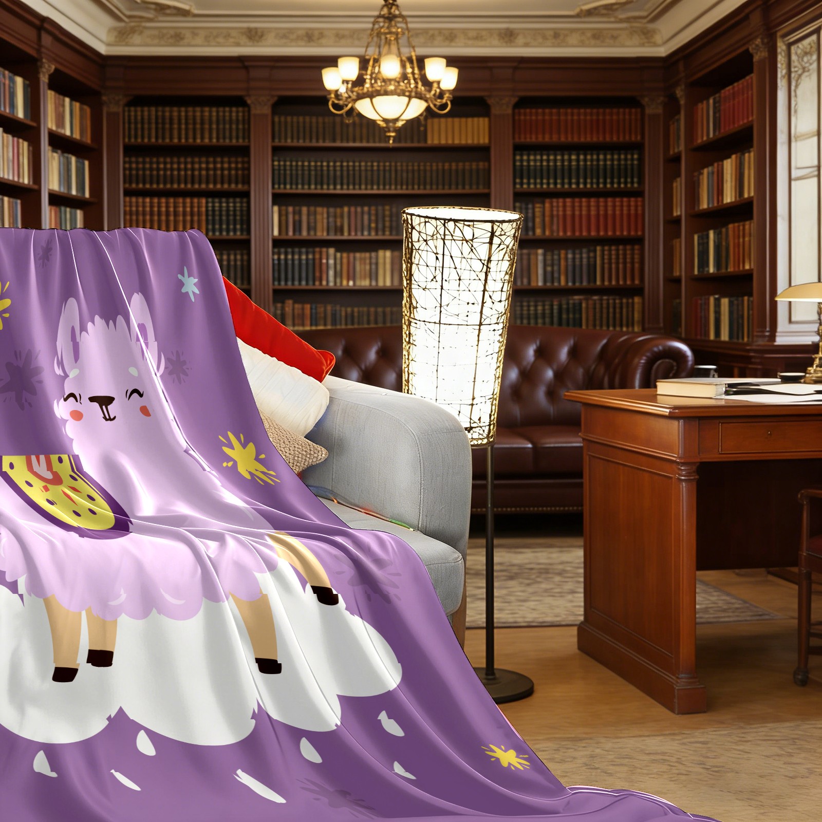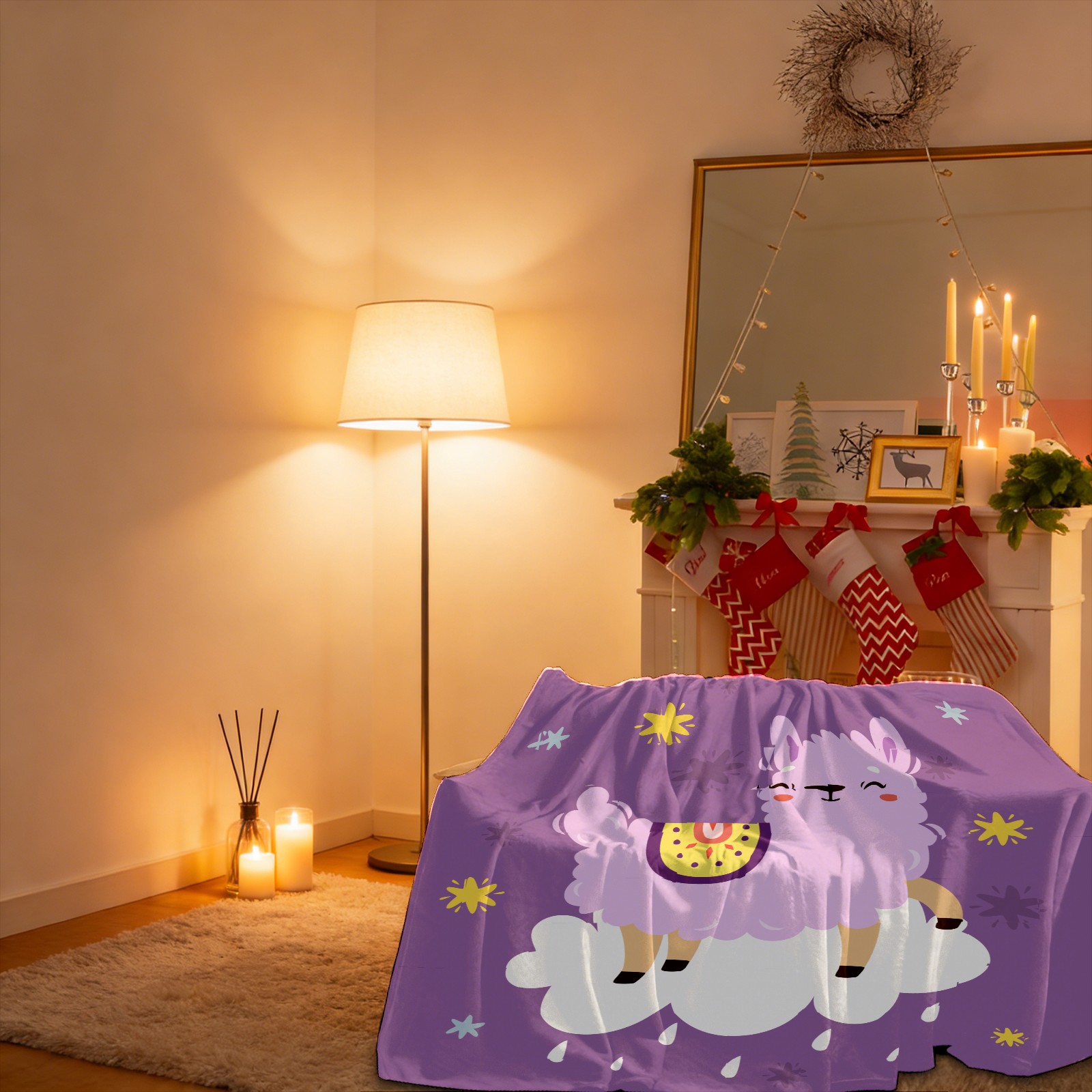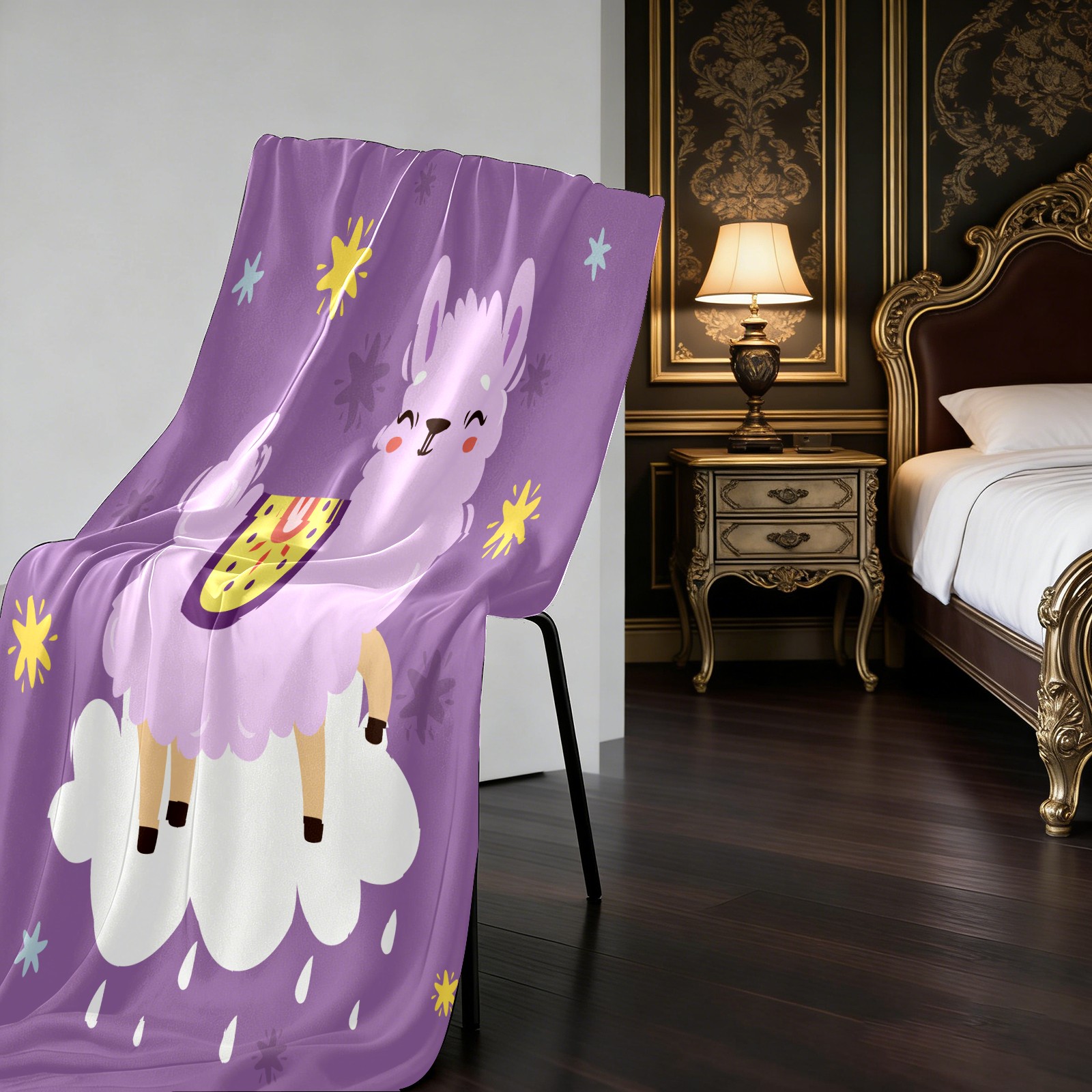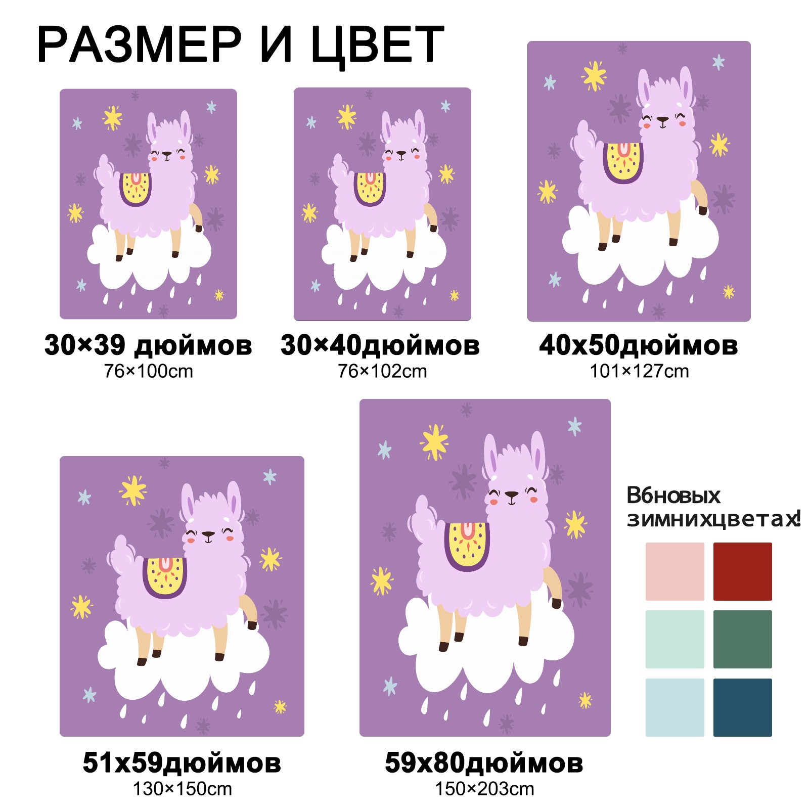 Cute Purple Llama Alpaca On The Cloud 76x100cm