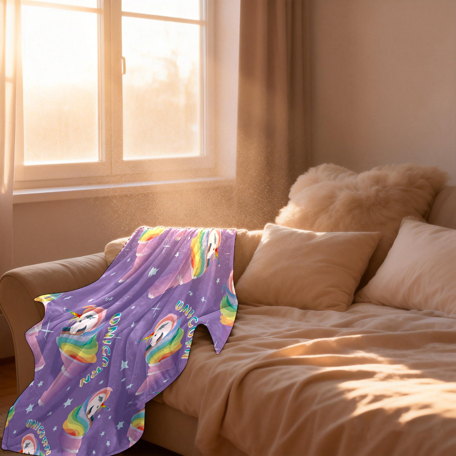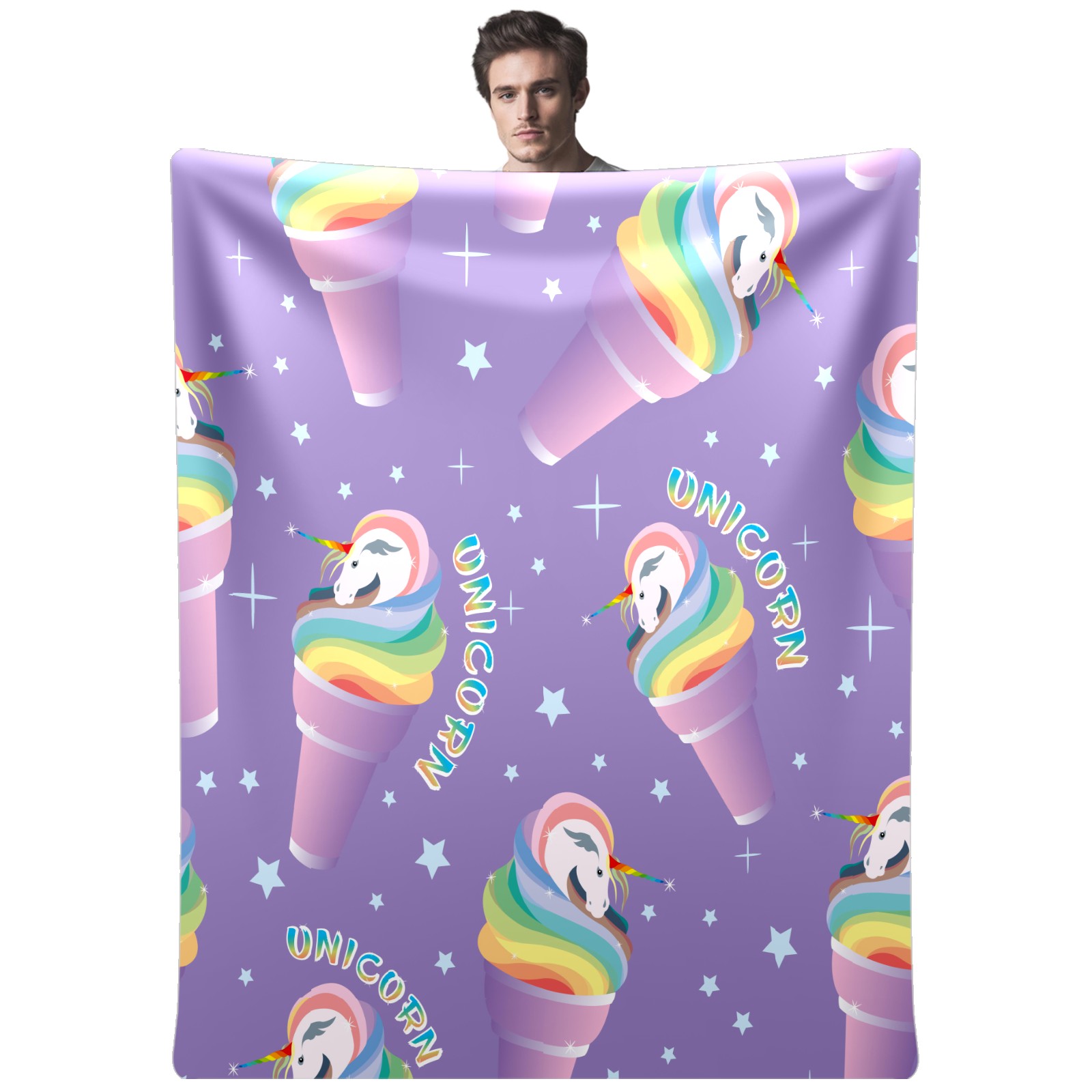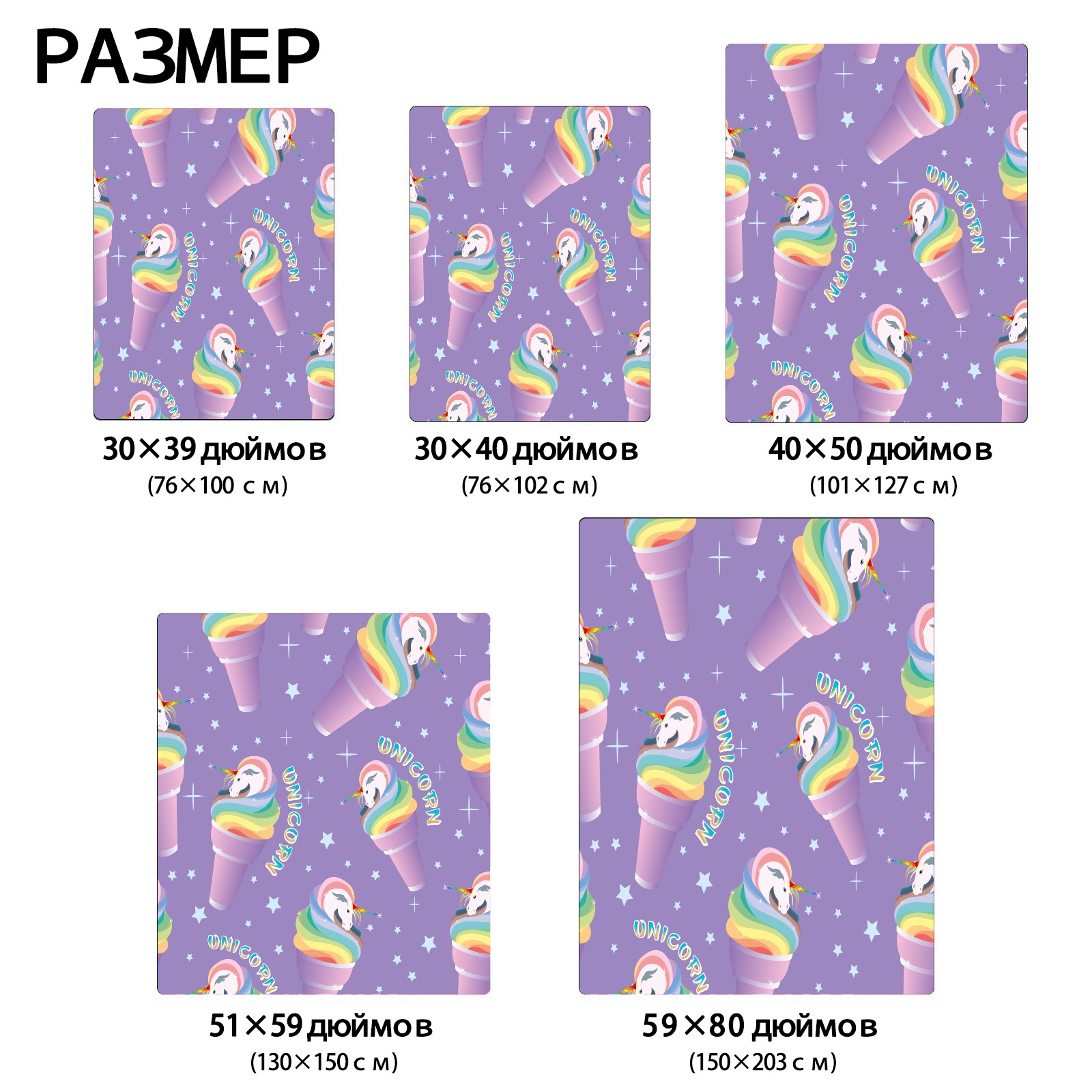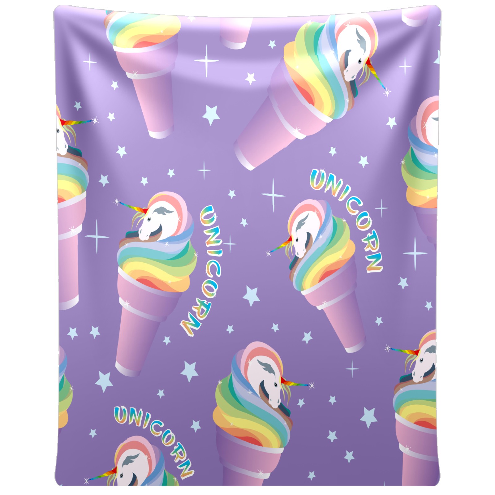 Cartoon Ice Cream Unicorn Purple Pattern 76x100cm