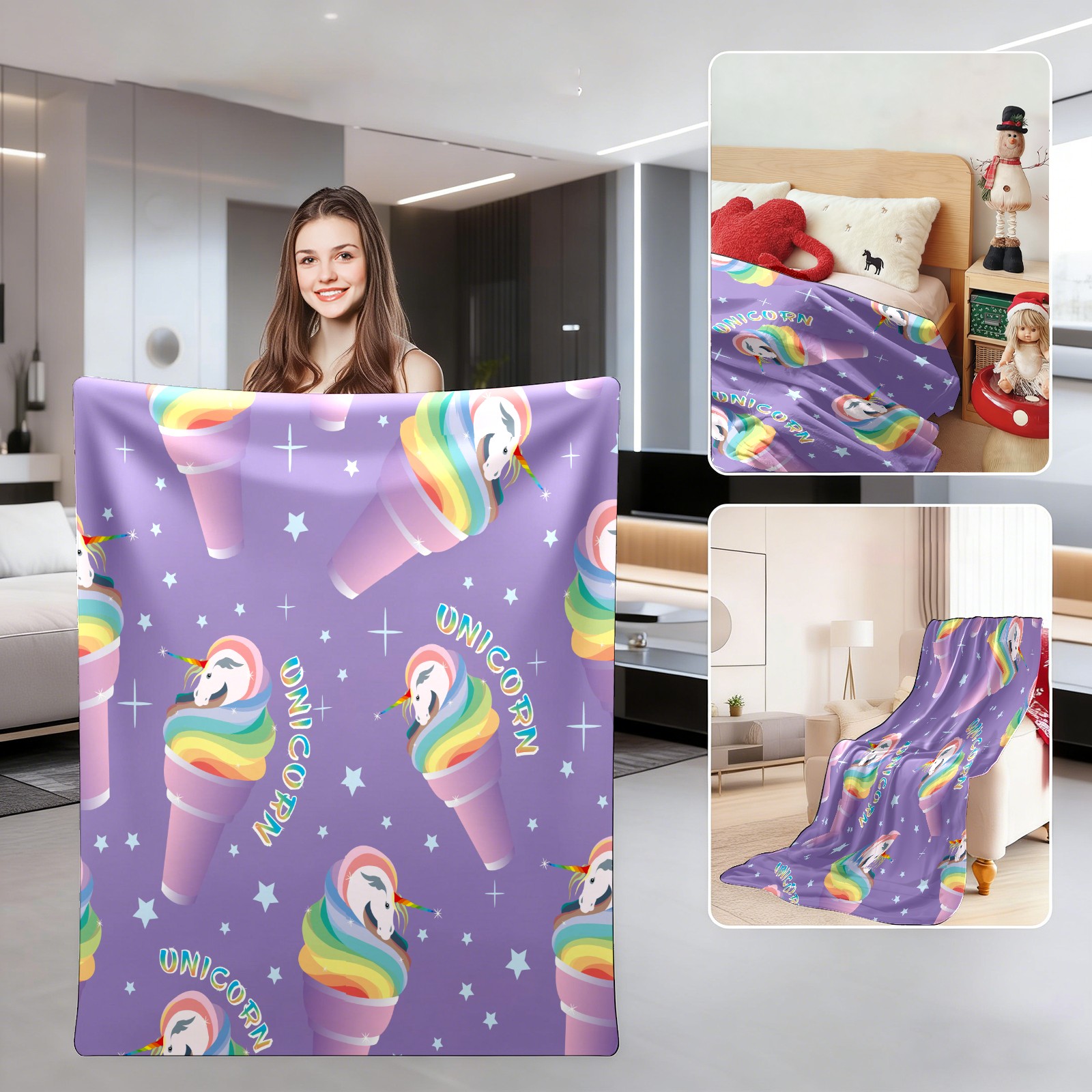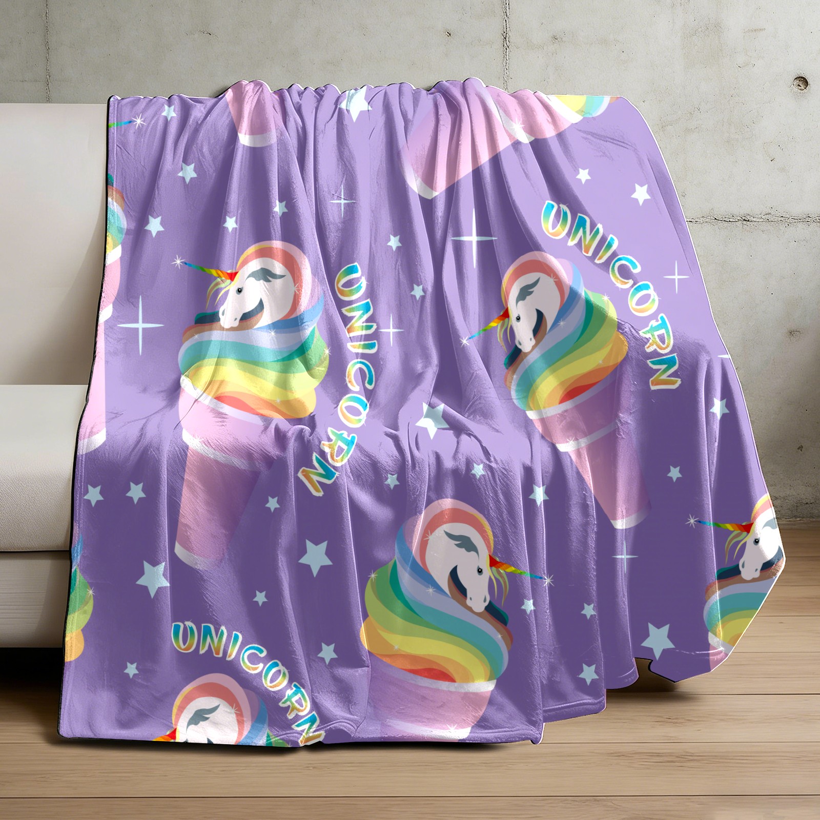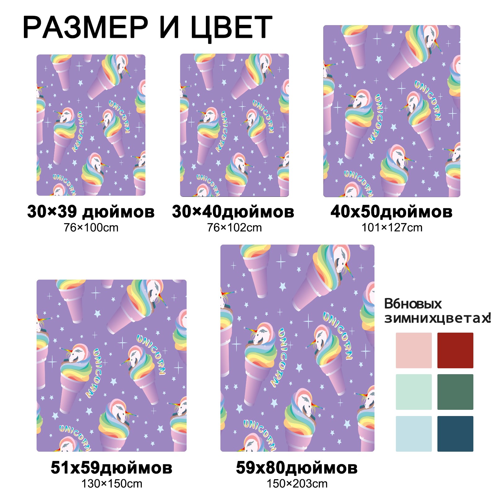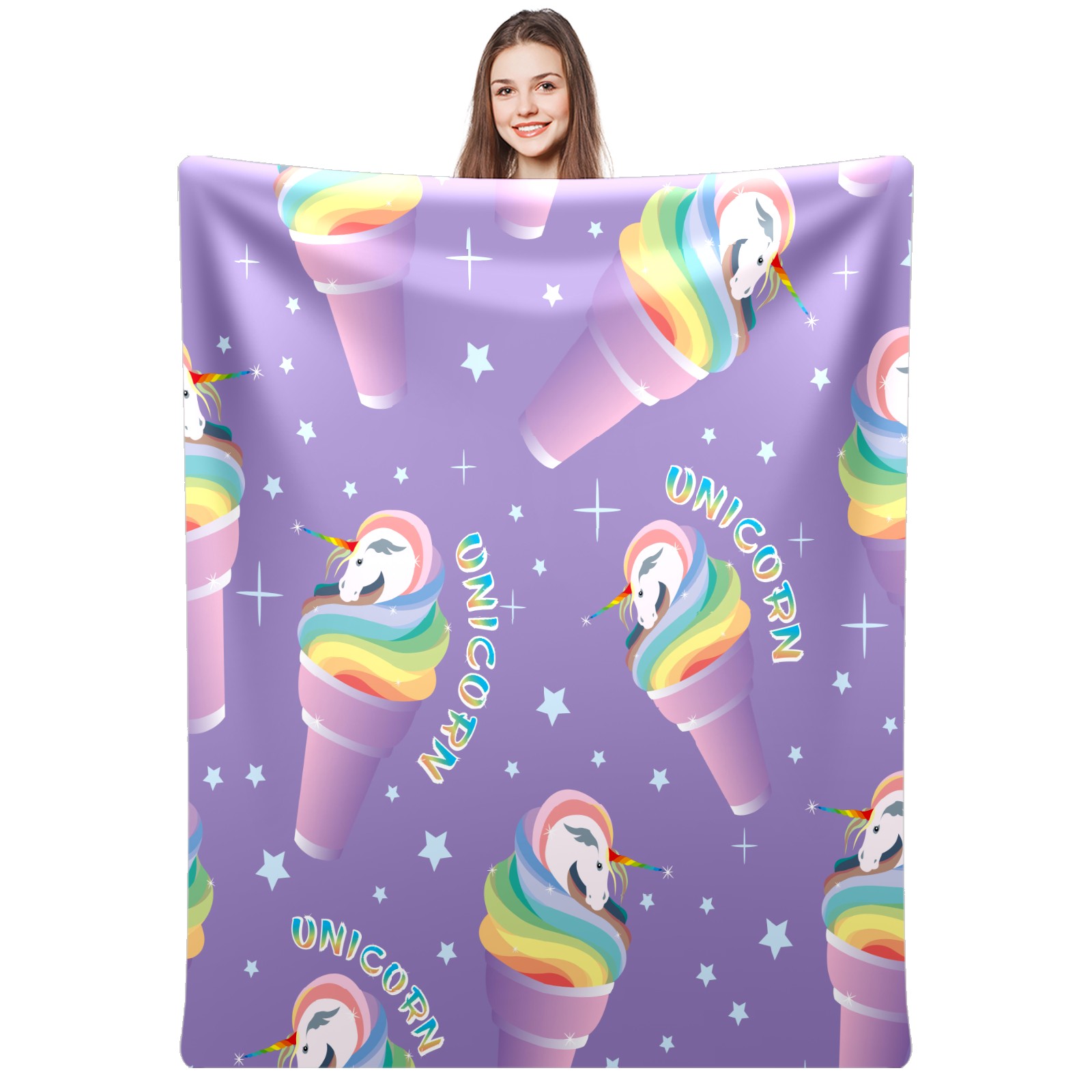 Cartoon Ice Cream Unicorn Purple Pattern 76x100cm