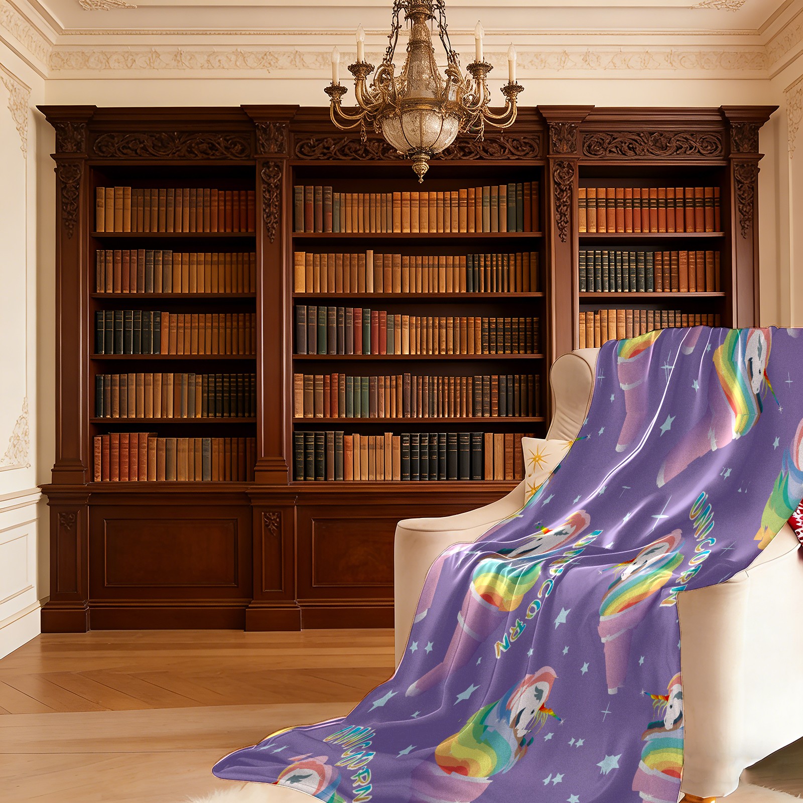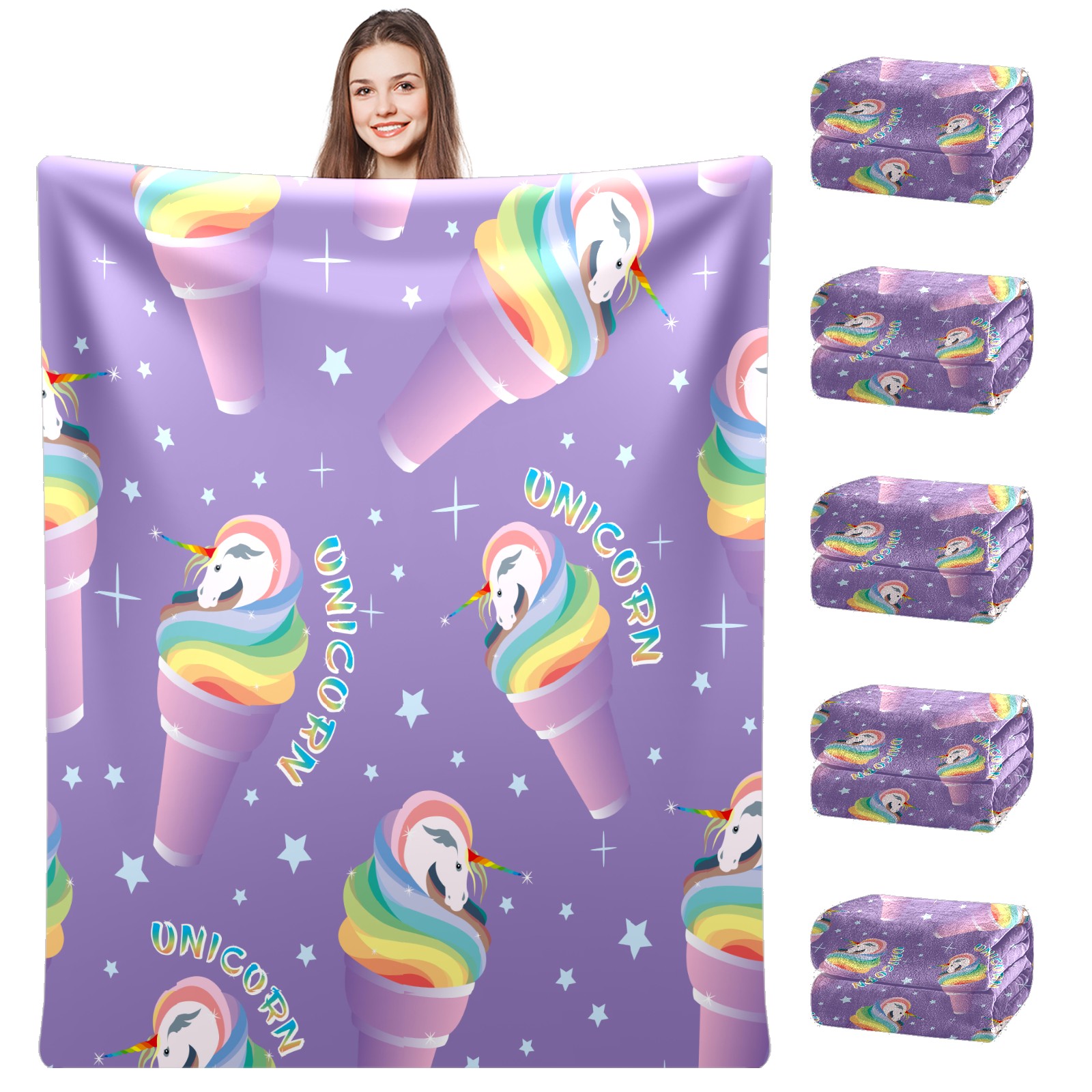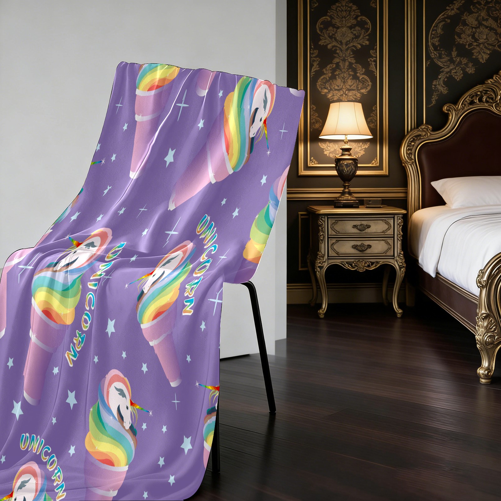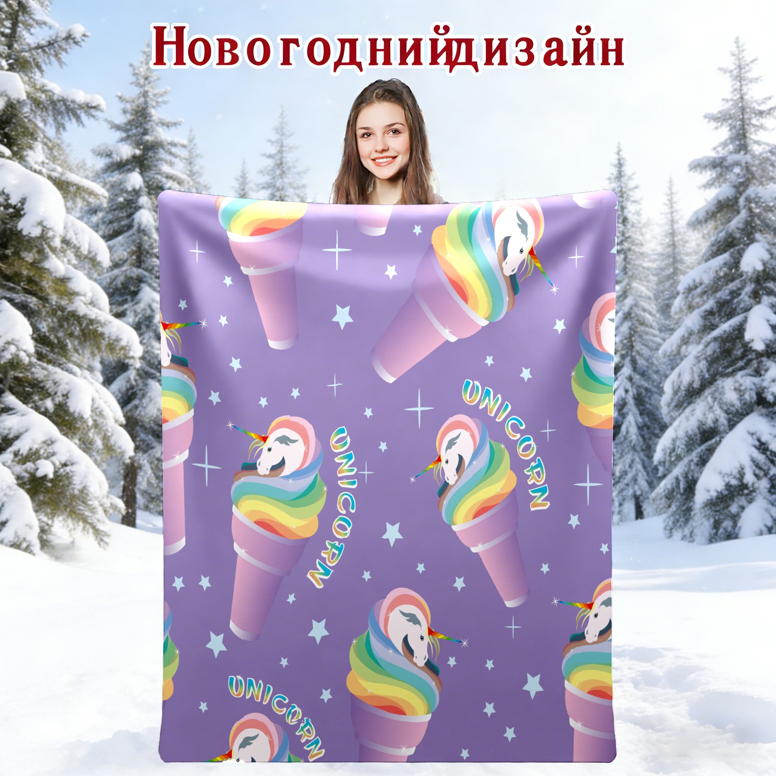Cartoon Ice Cream Unicorn Purple Pattern 76x100cm