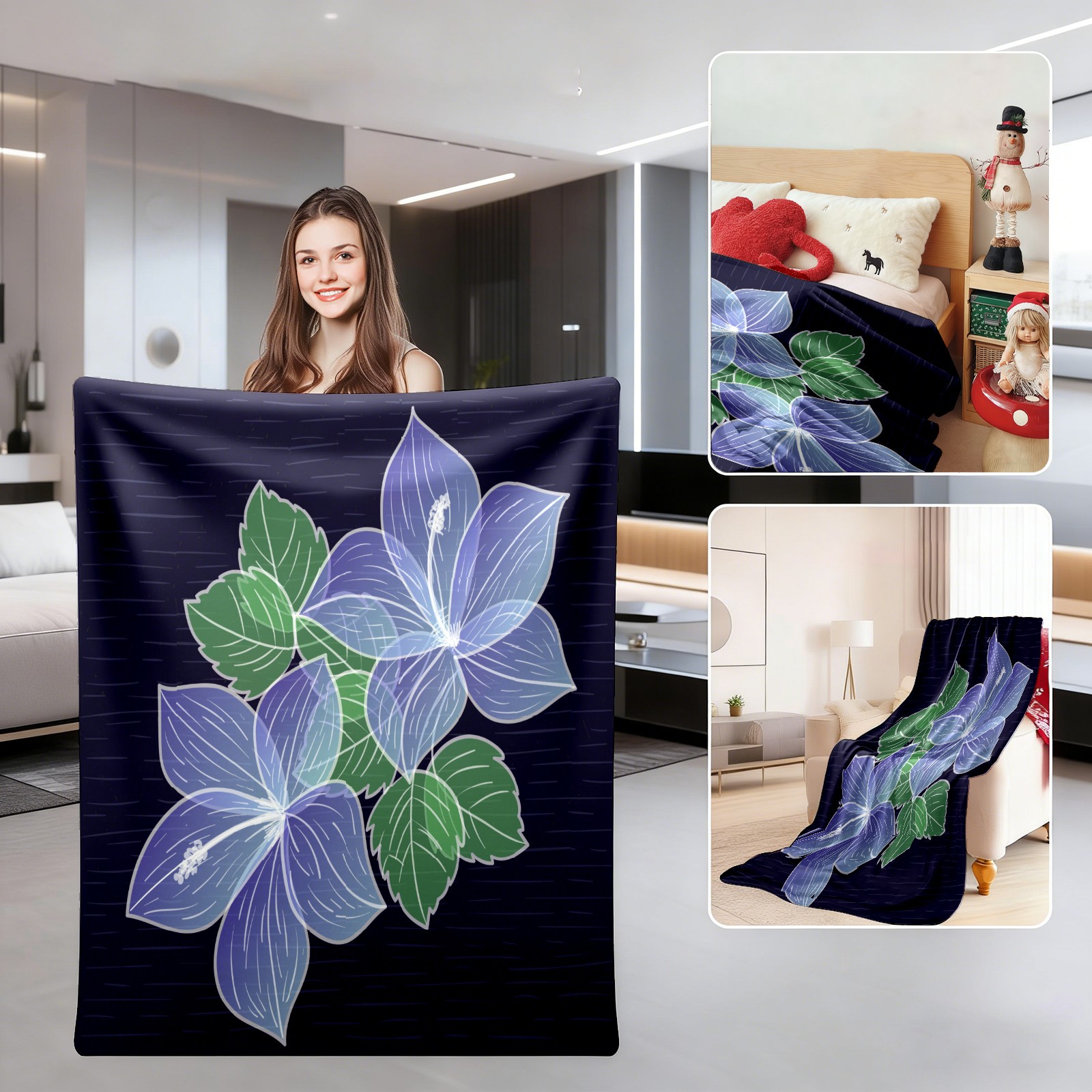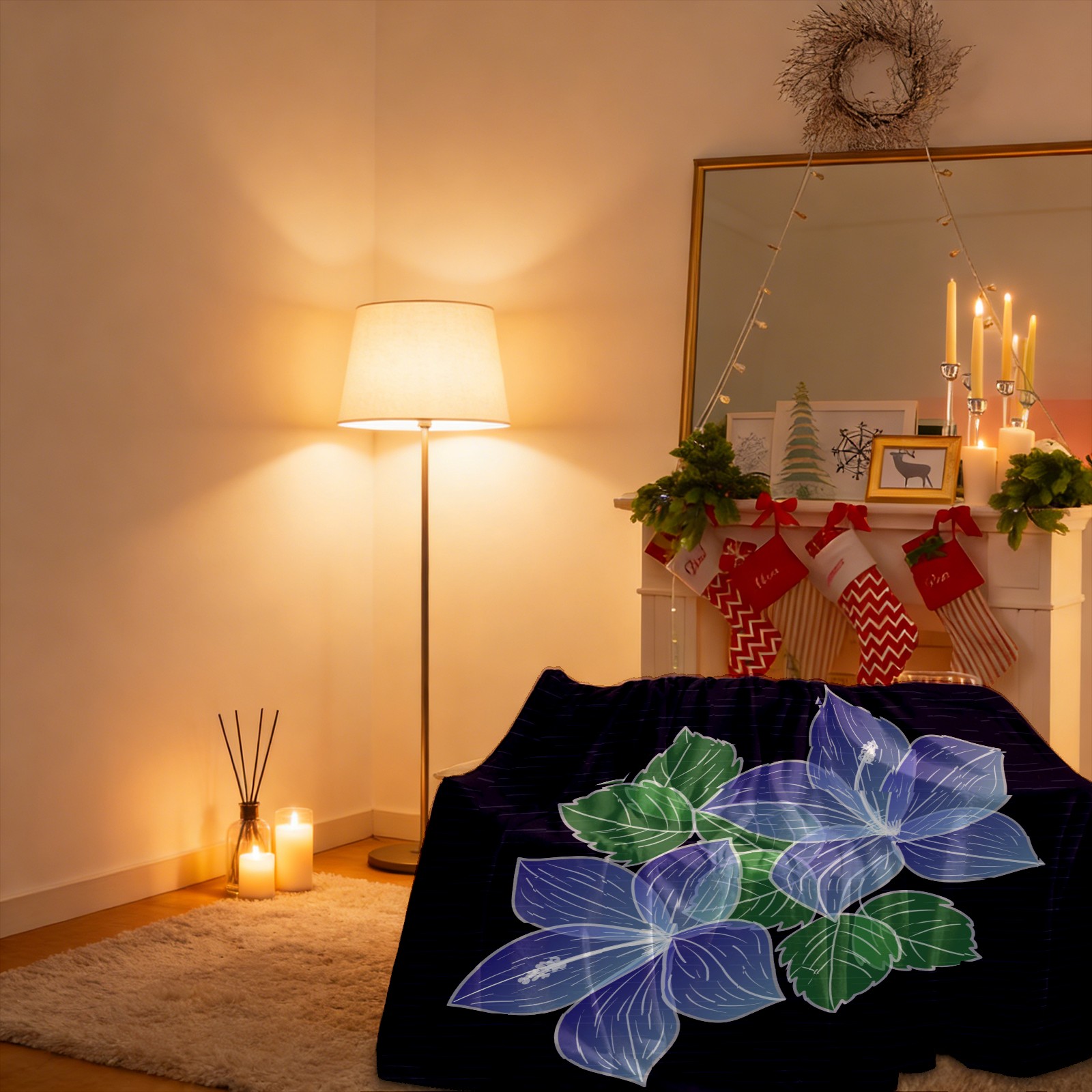 Hand Drawn Purple Flower 76x100cm