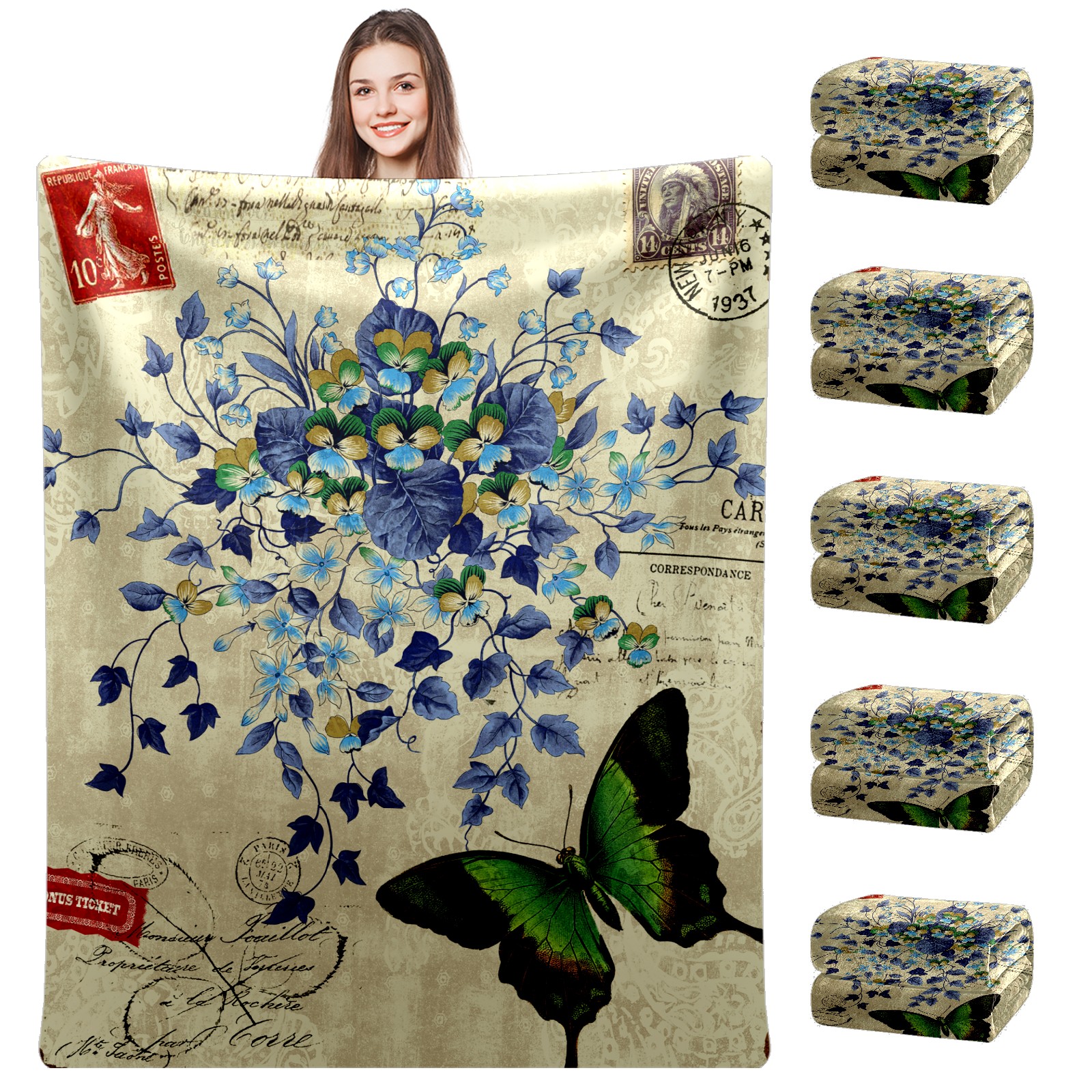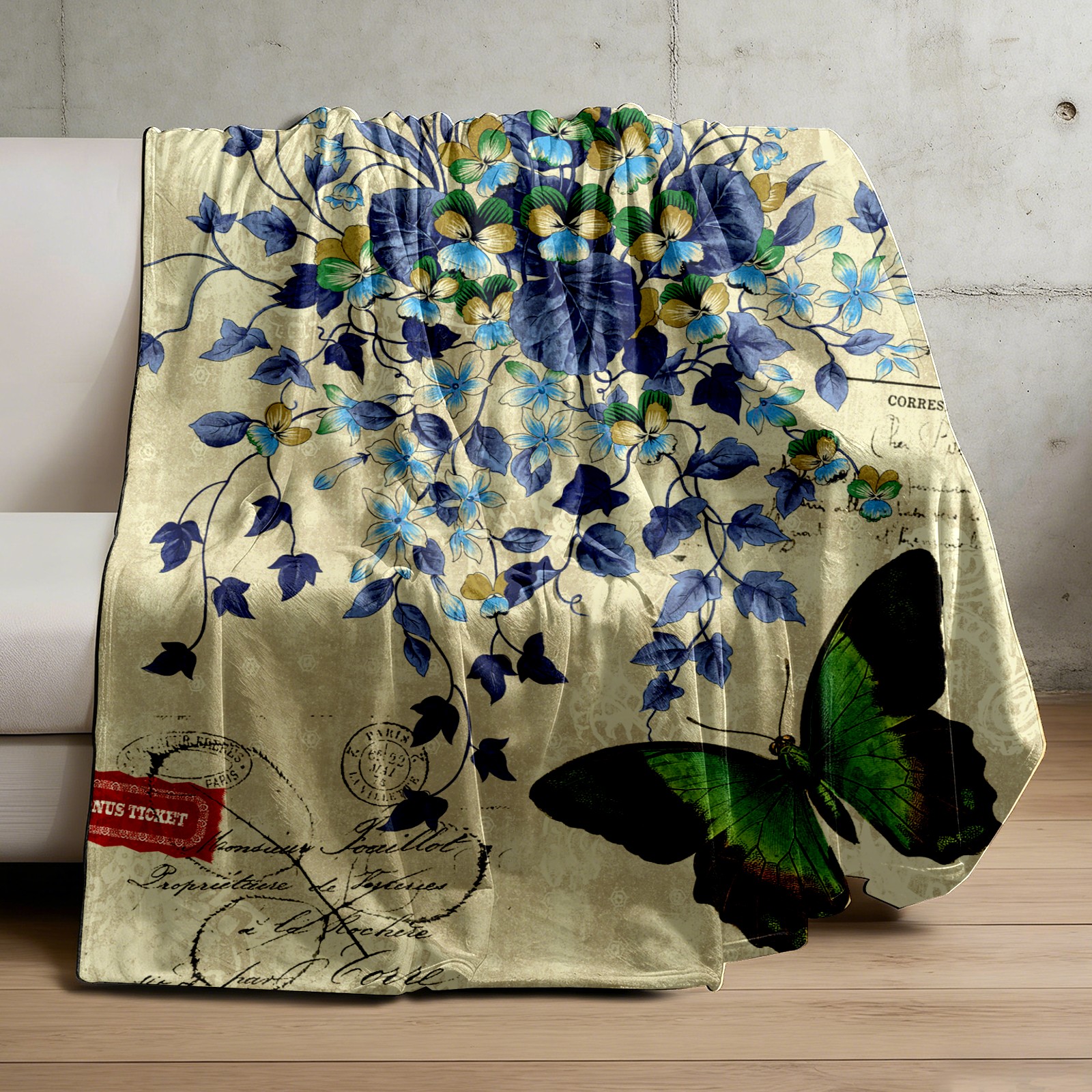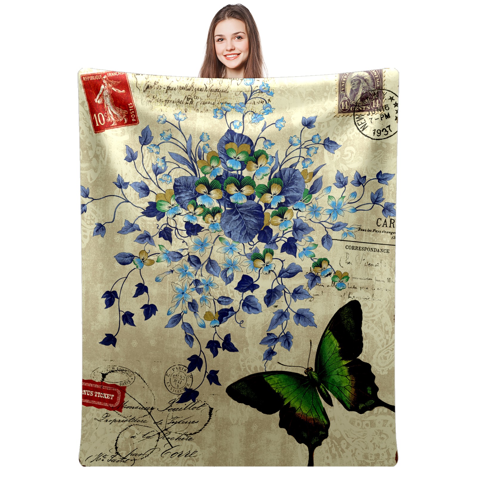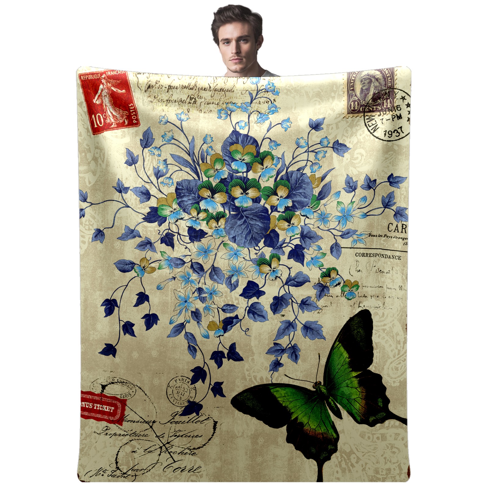 Vintage Retro Butterfly Purple Floral 76x100cm