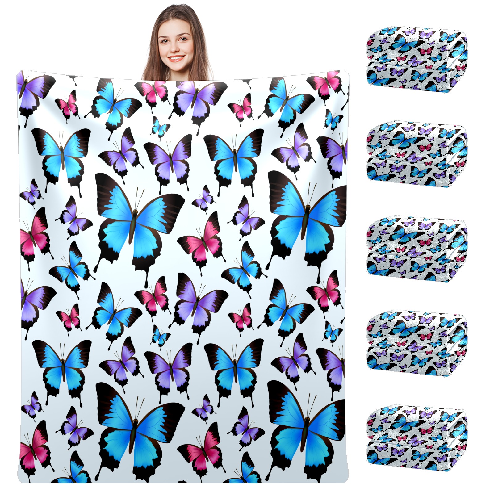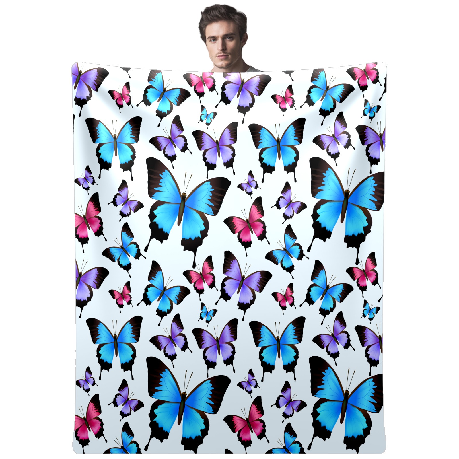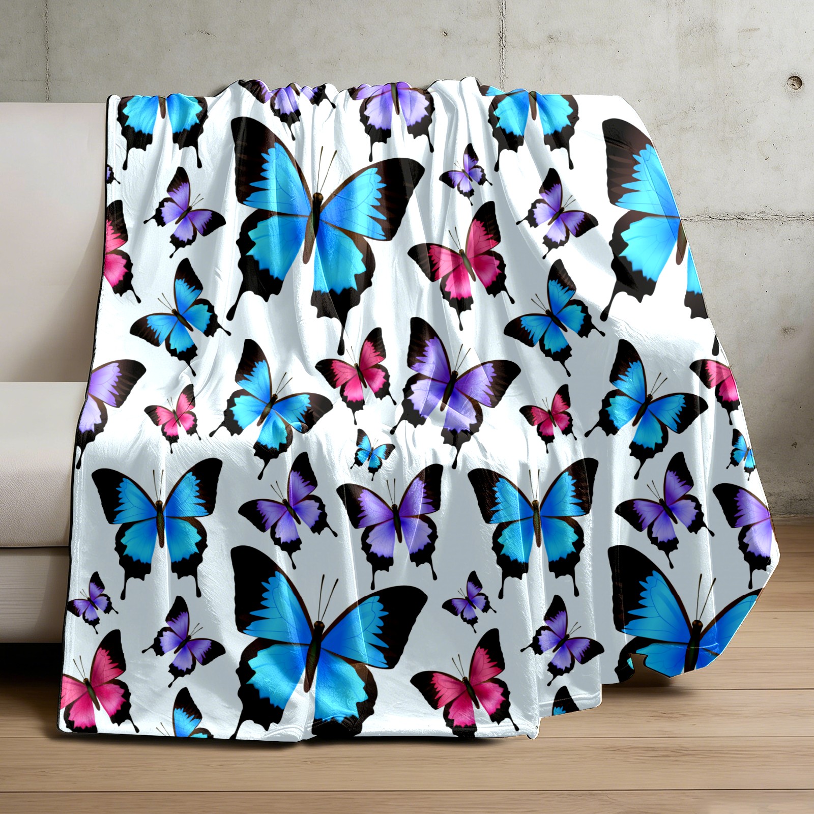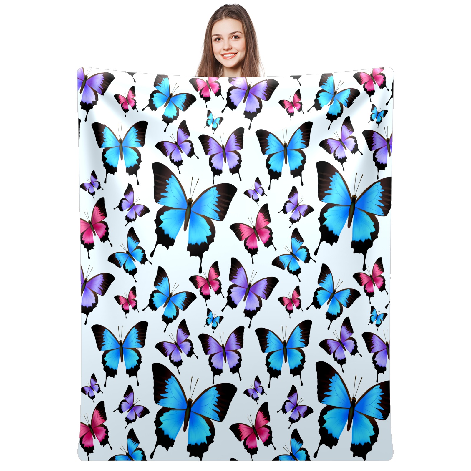 Blue Purple Pink Butterflies Pattern 76x100cm