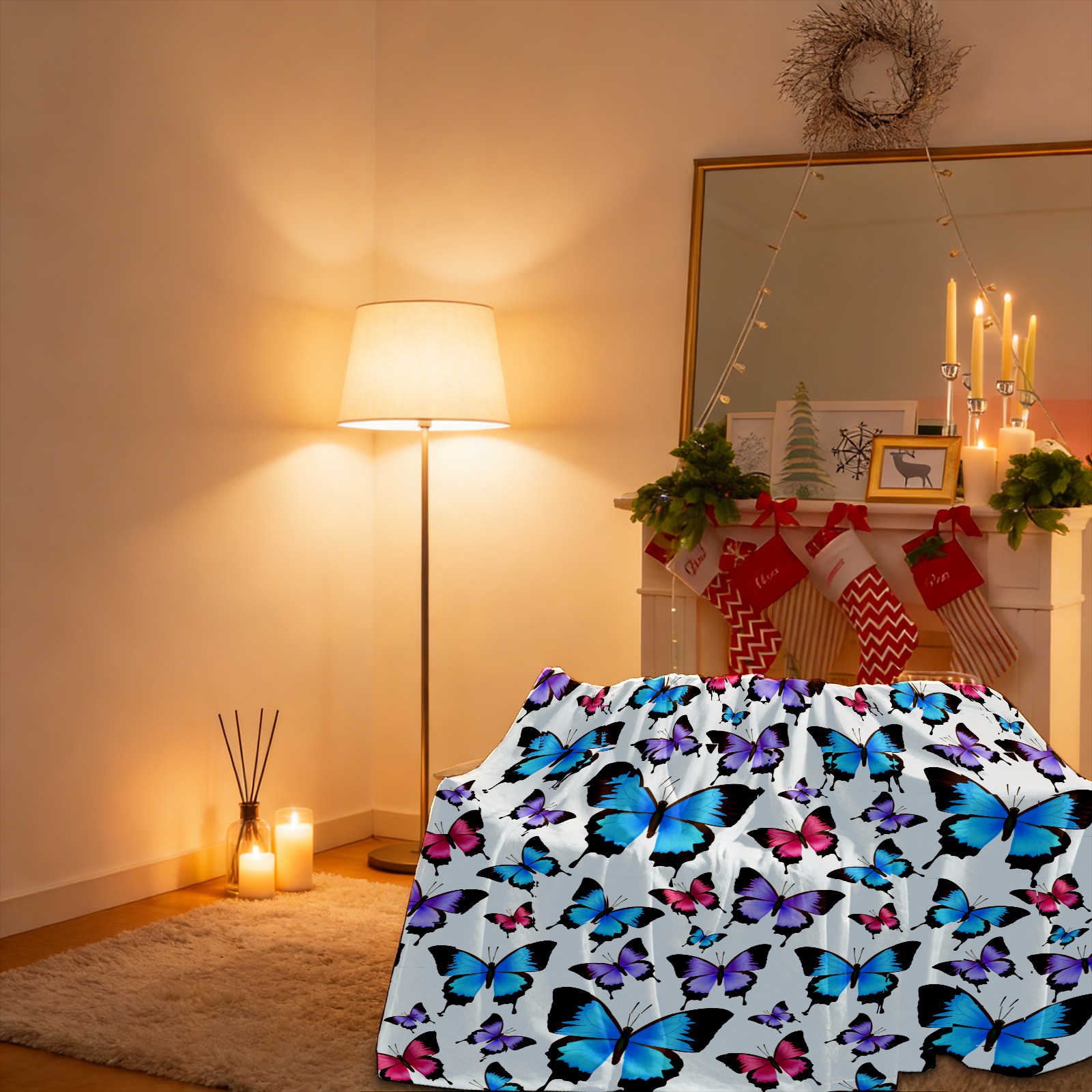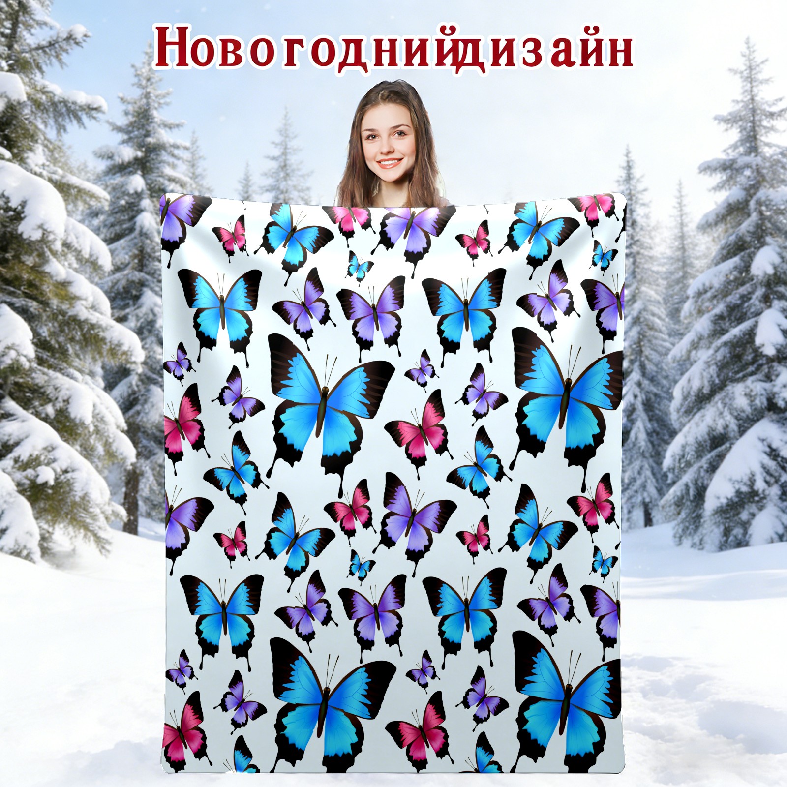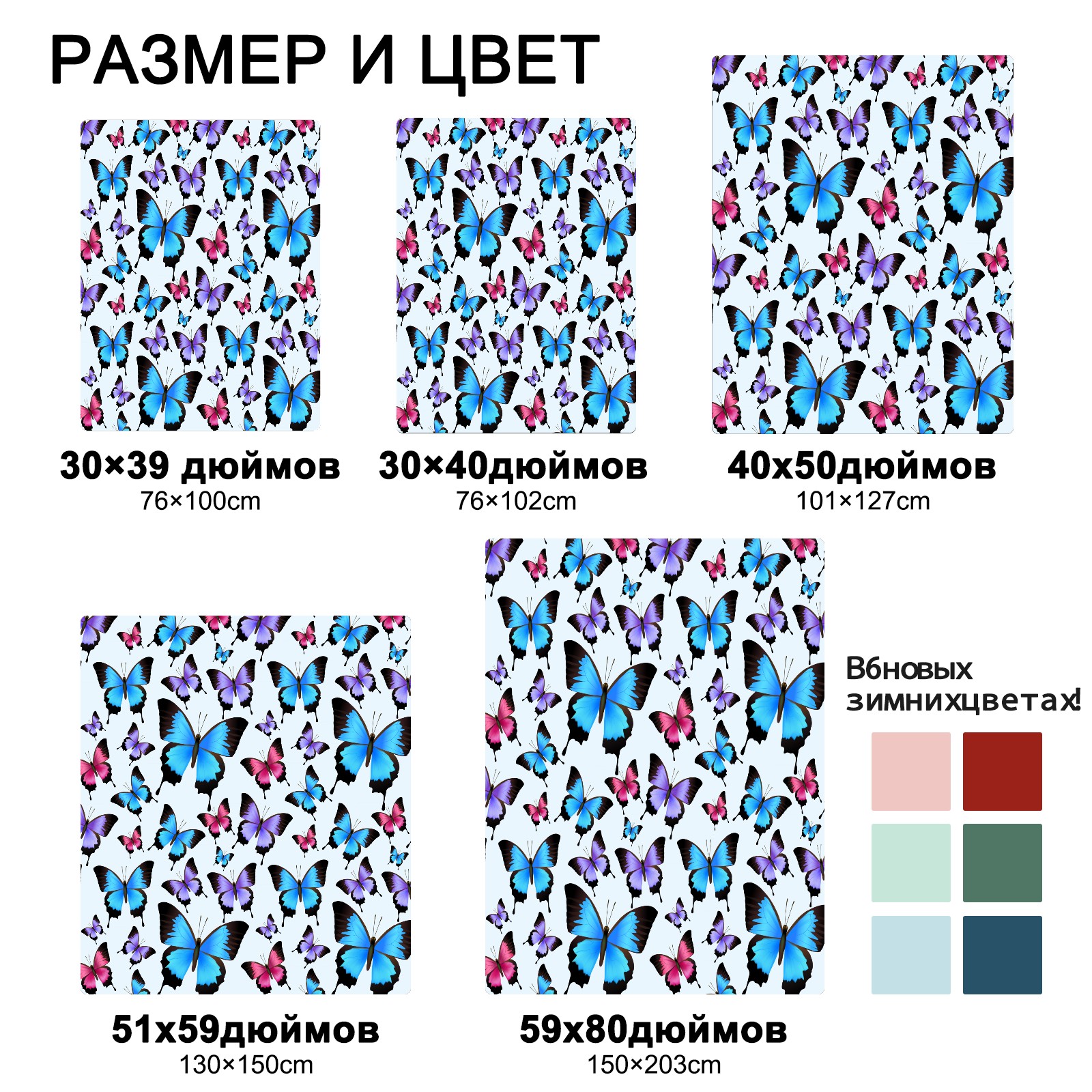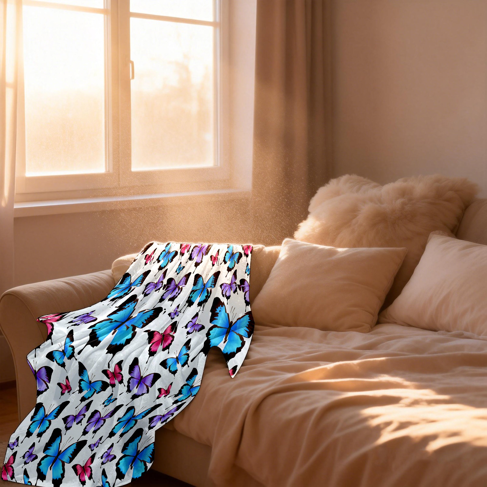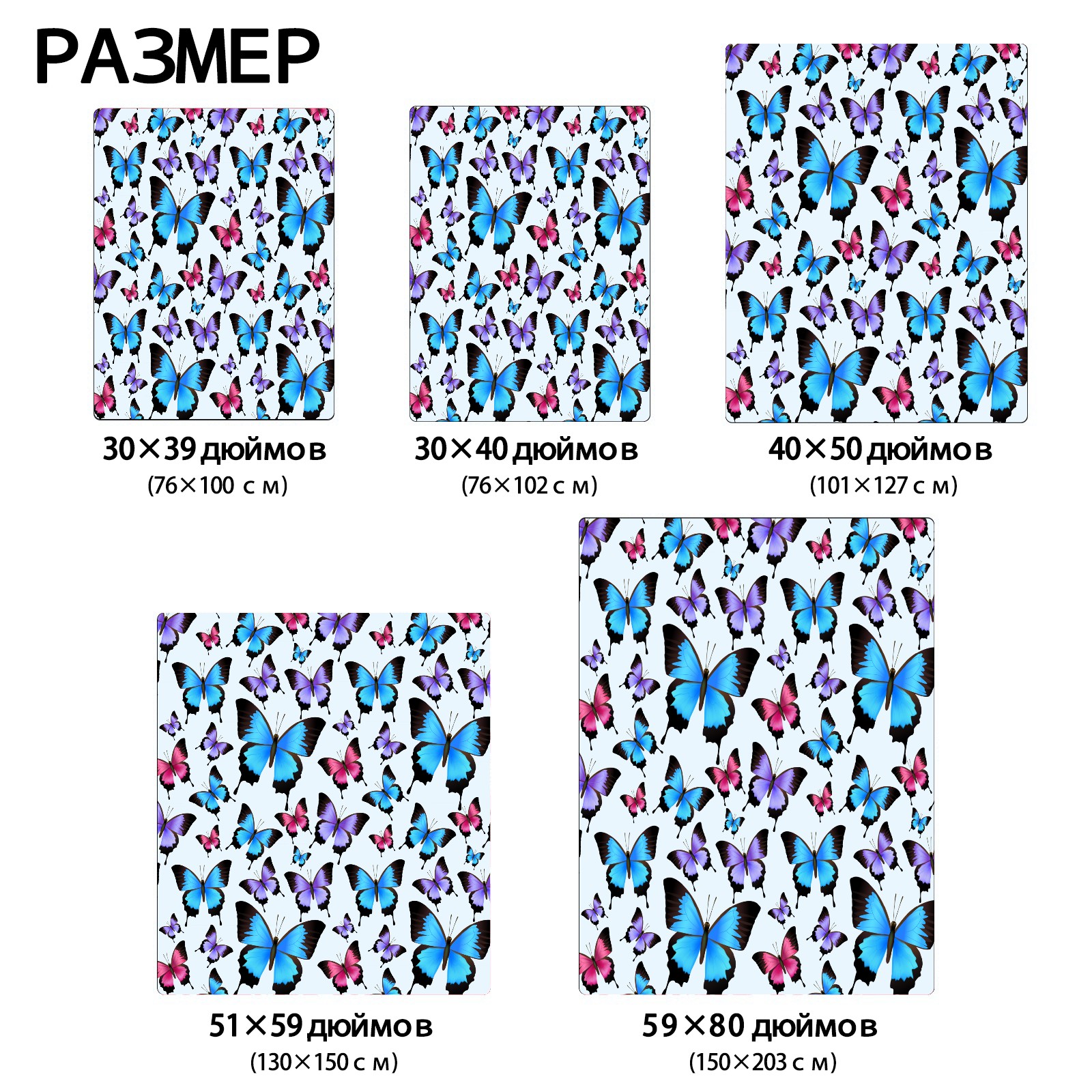 Blue Purple Pink Butterflies Pattern 76x100cm