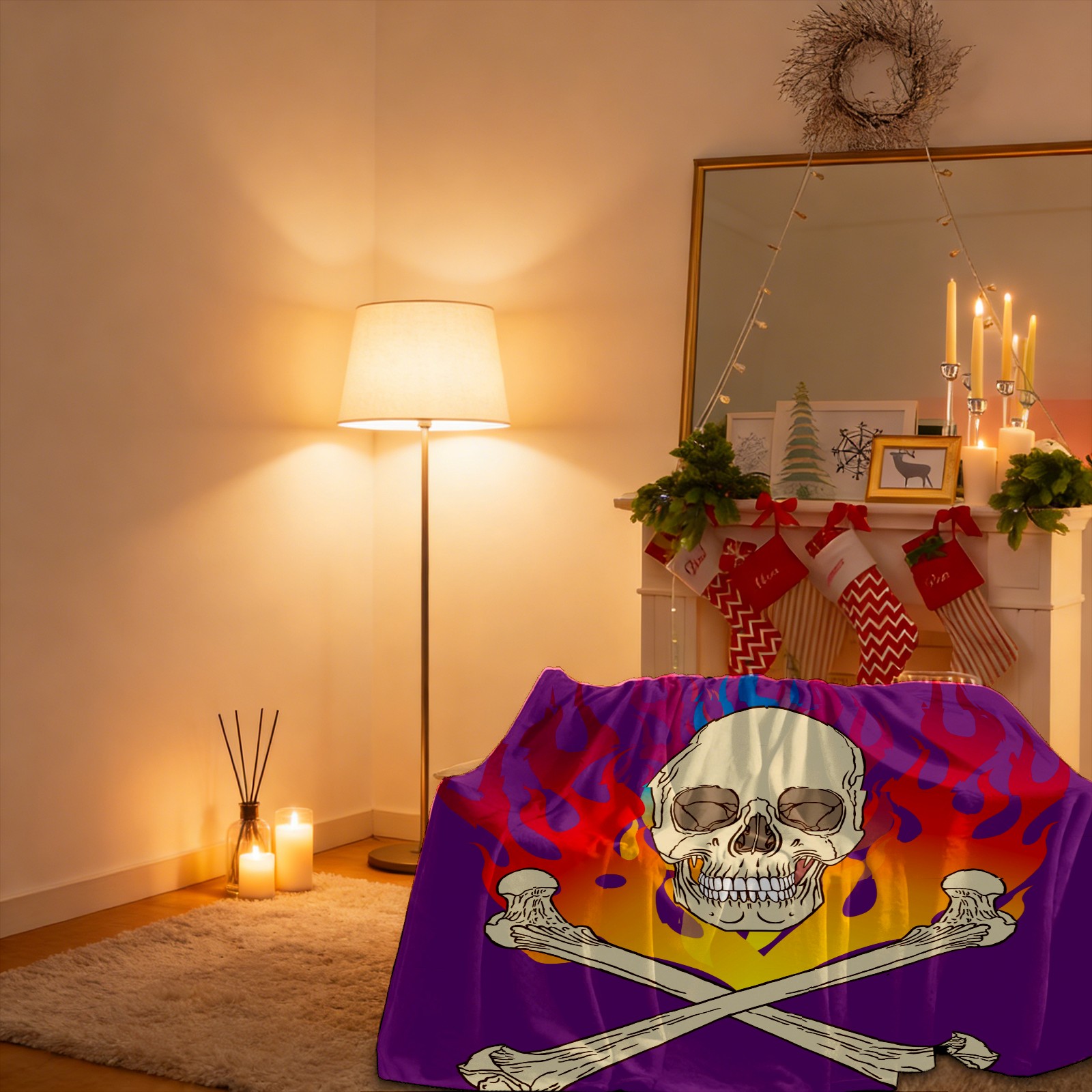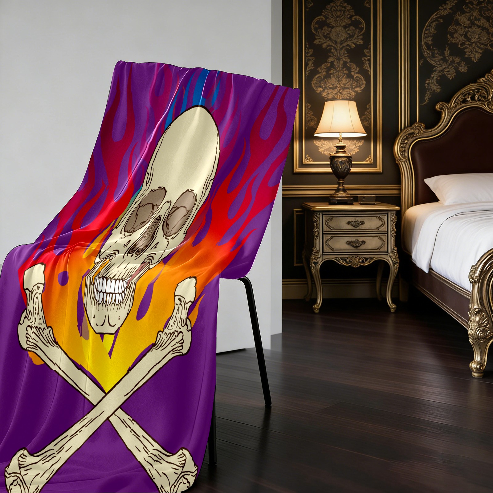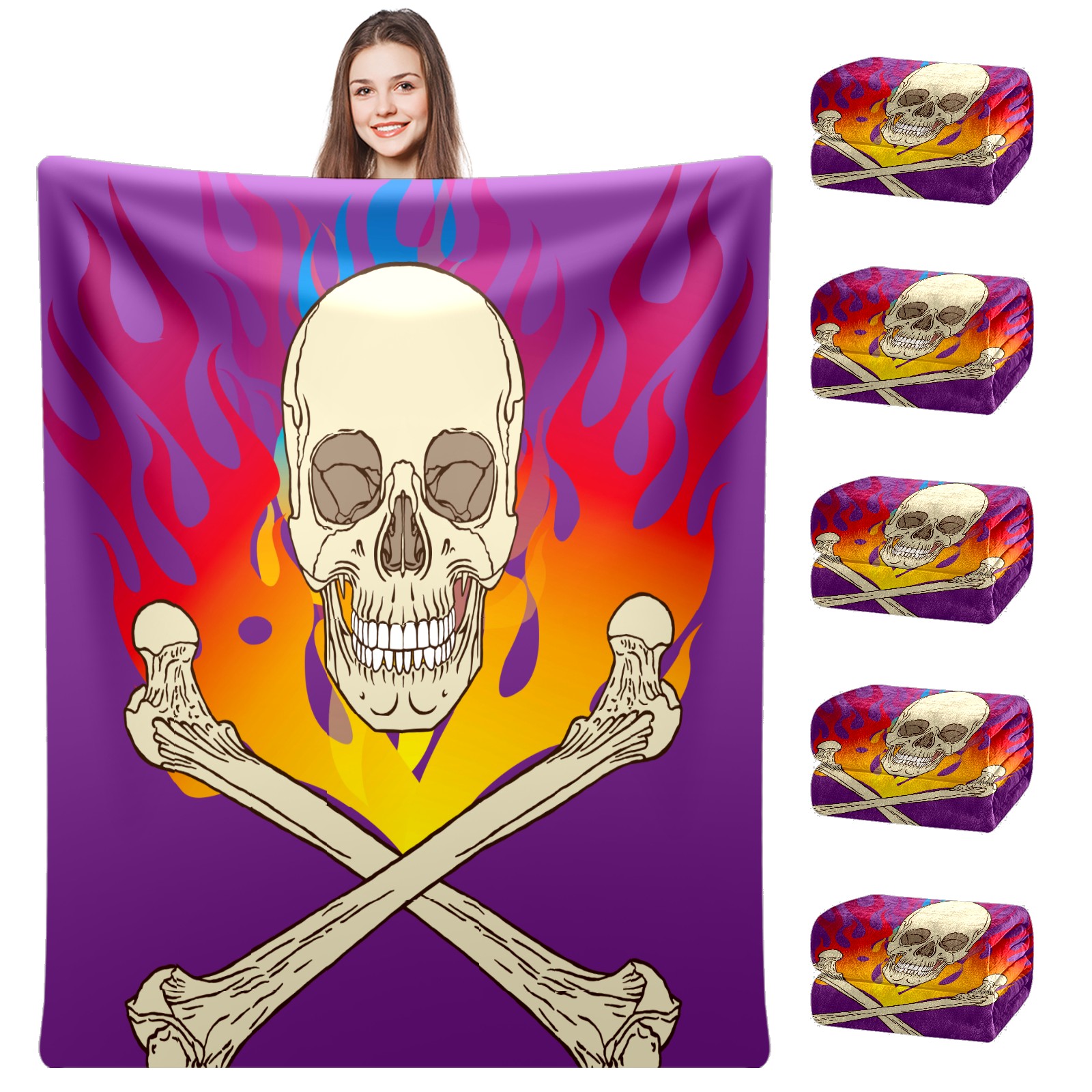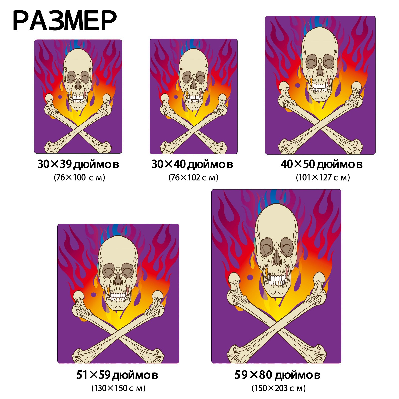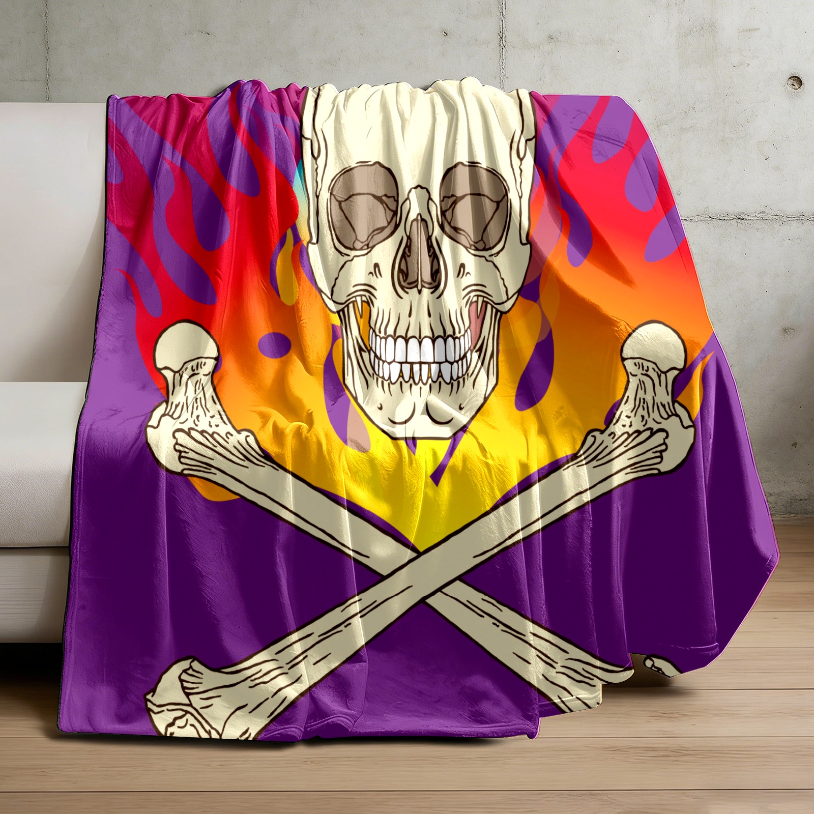 Skull Flame Purple 76x100cm