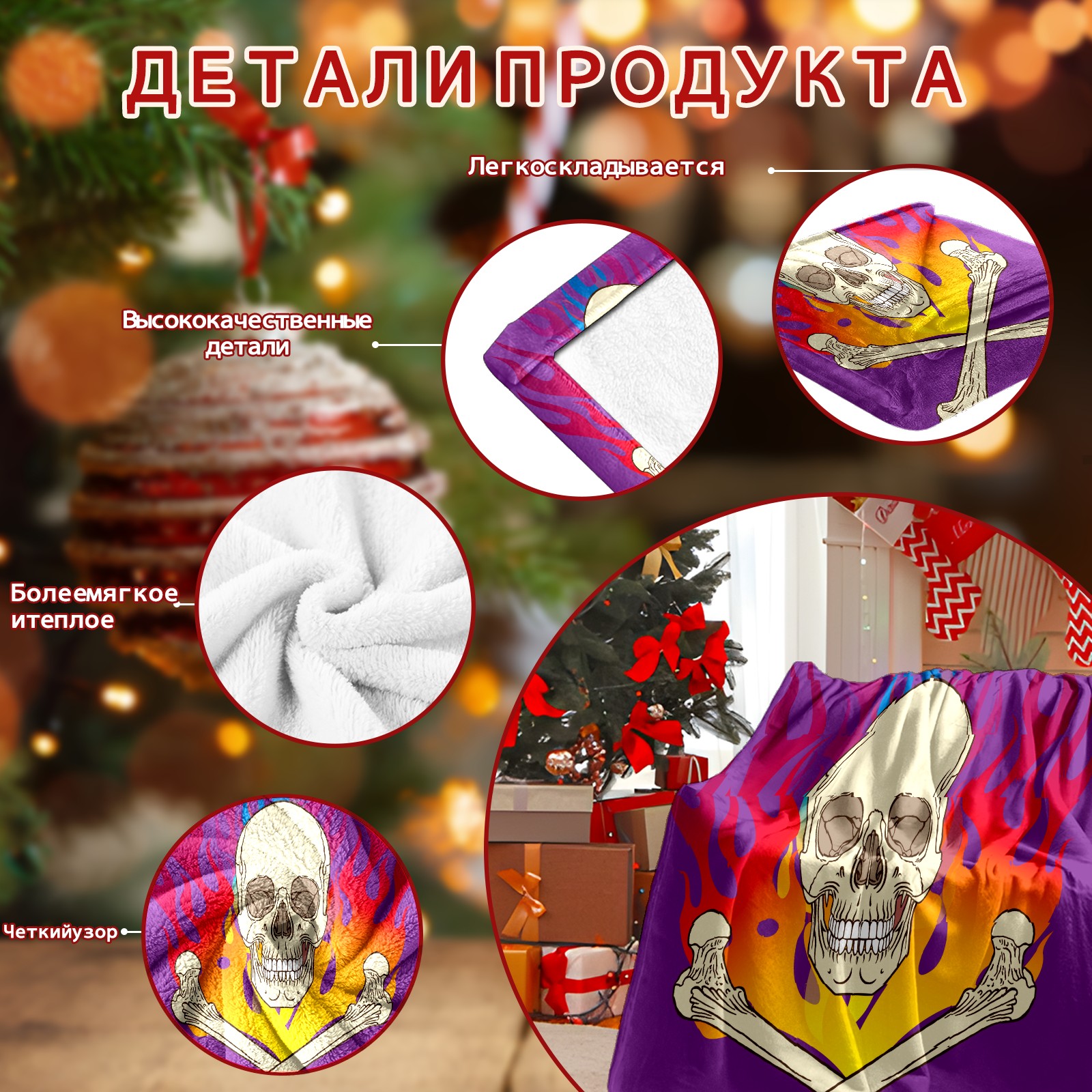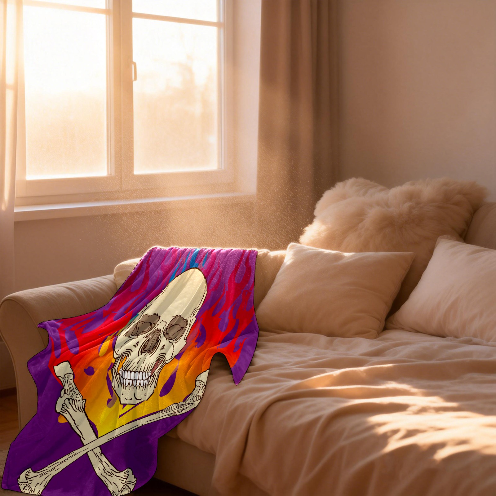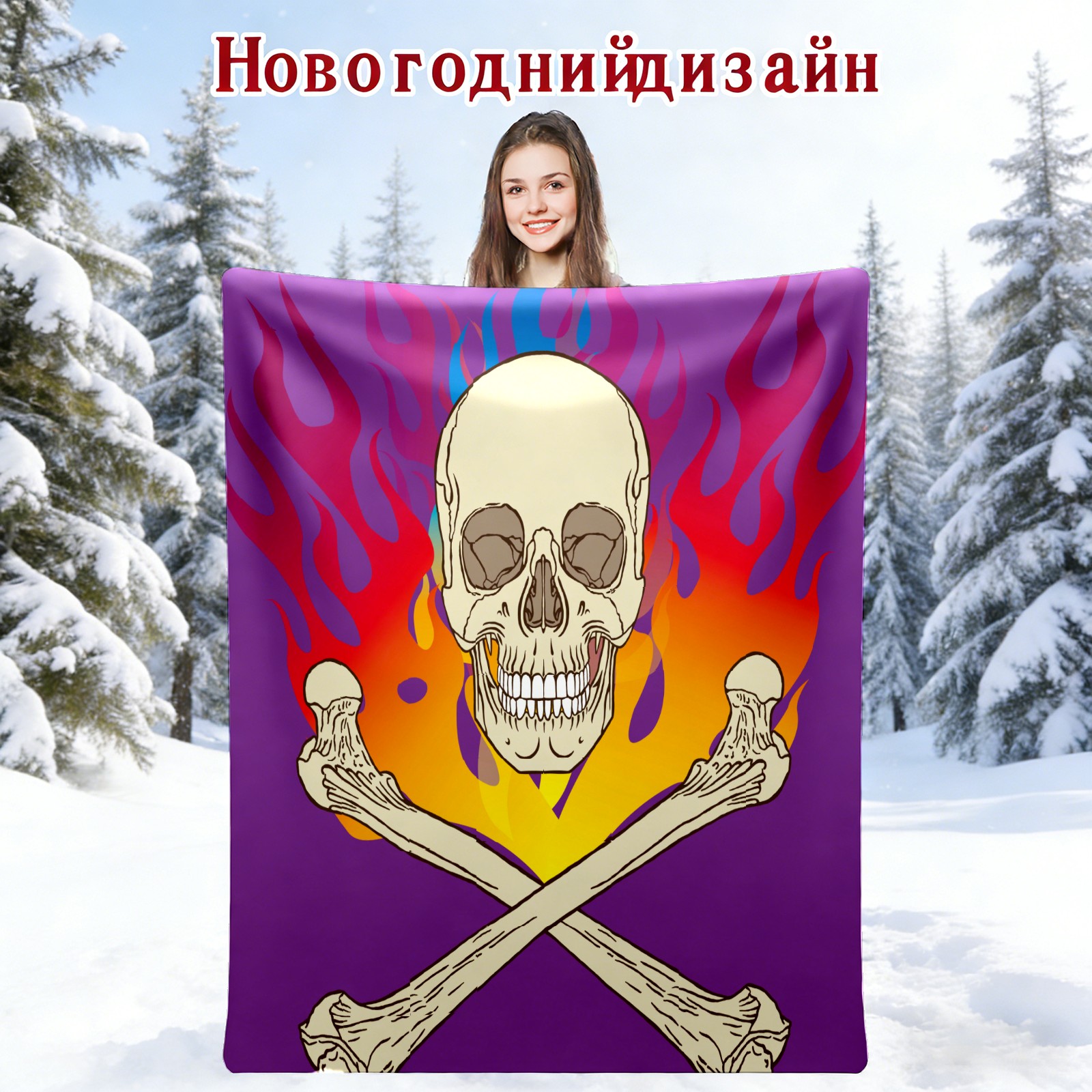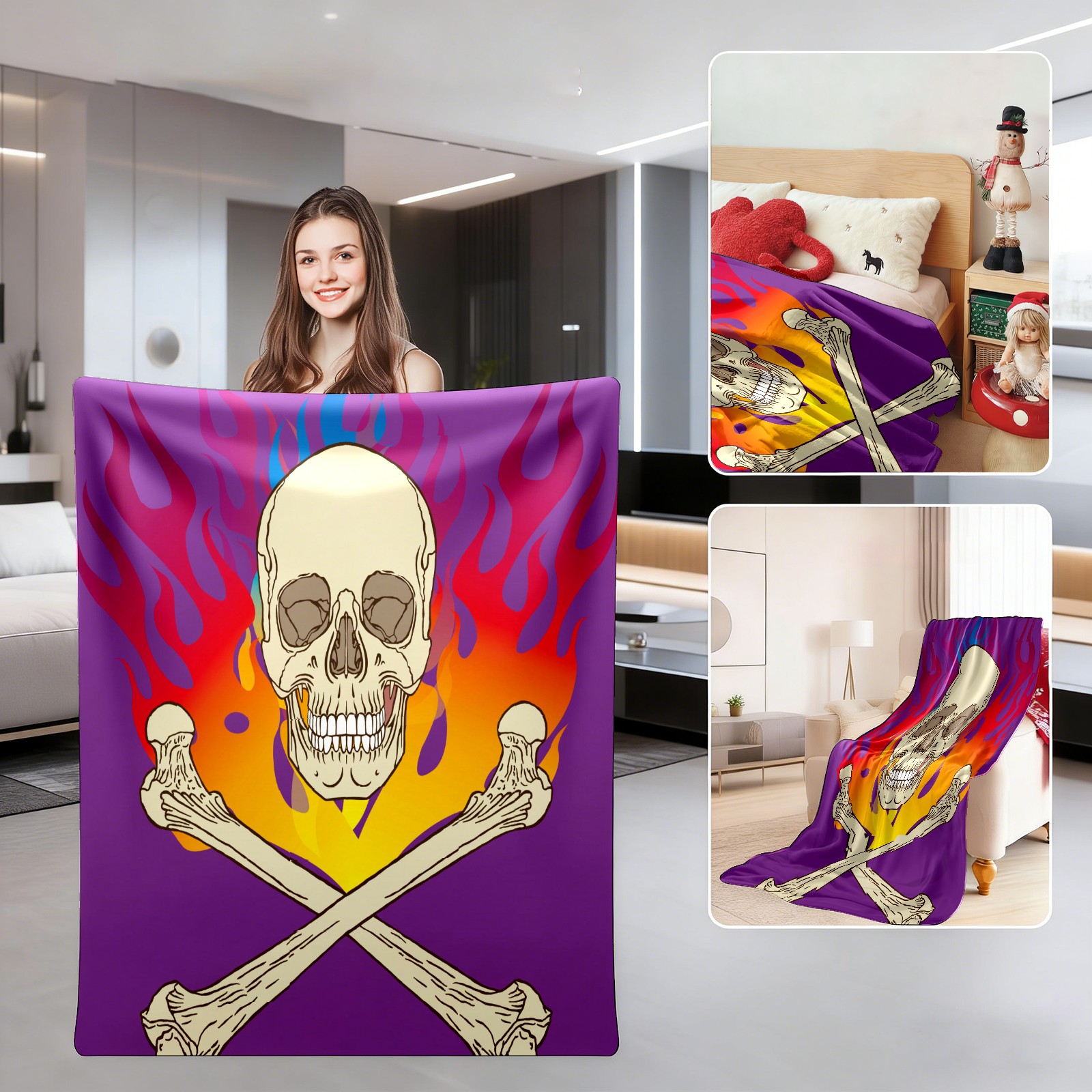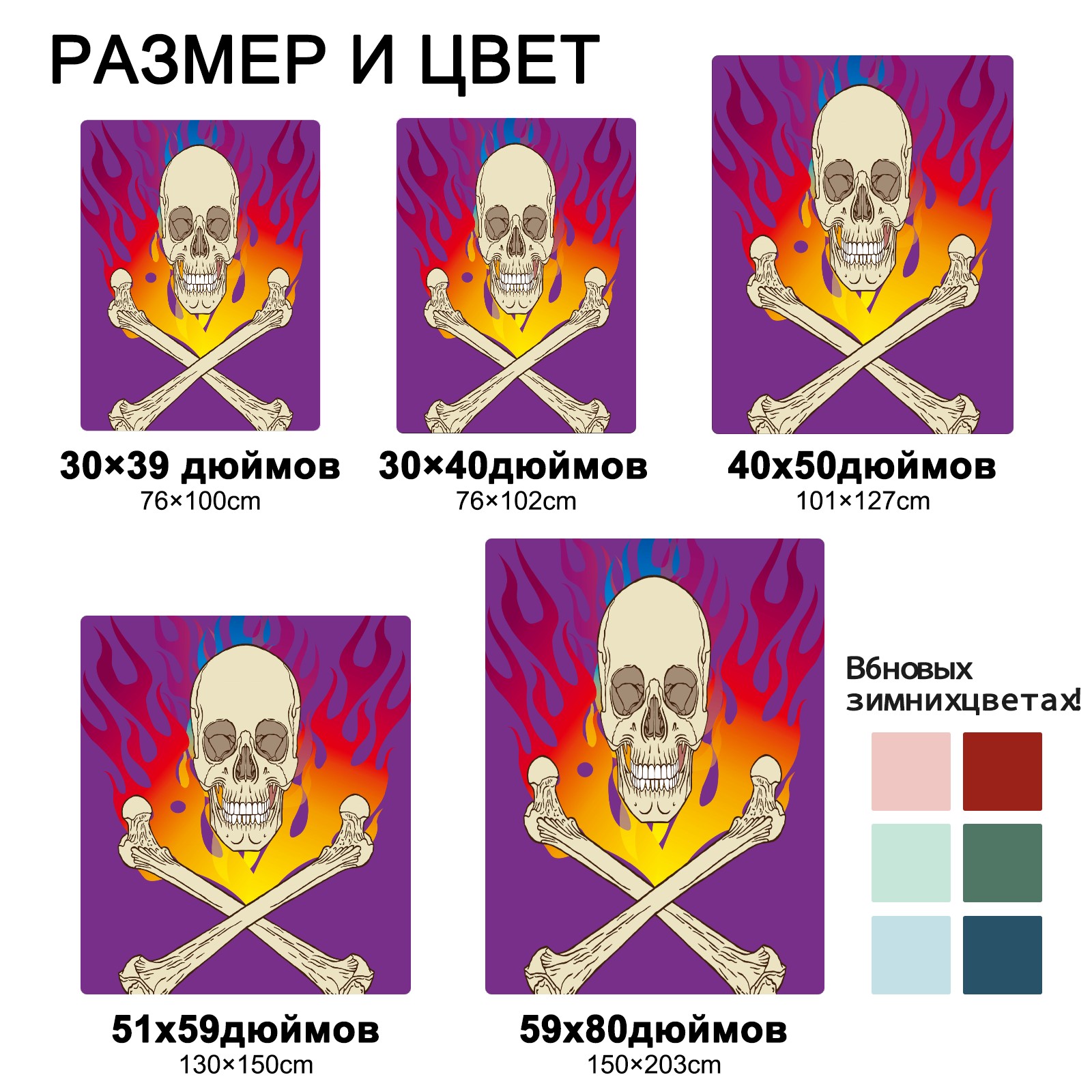 Skull Flame Purple 76x100cm