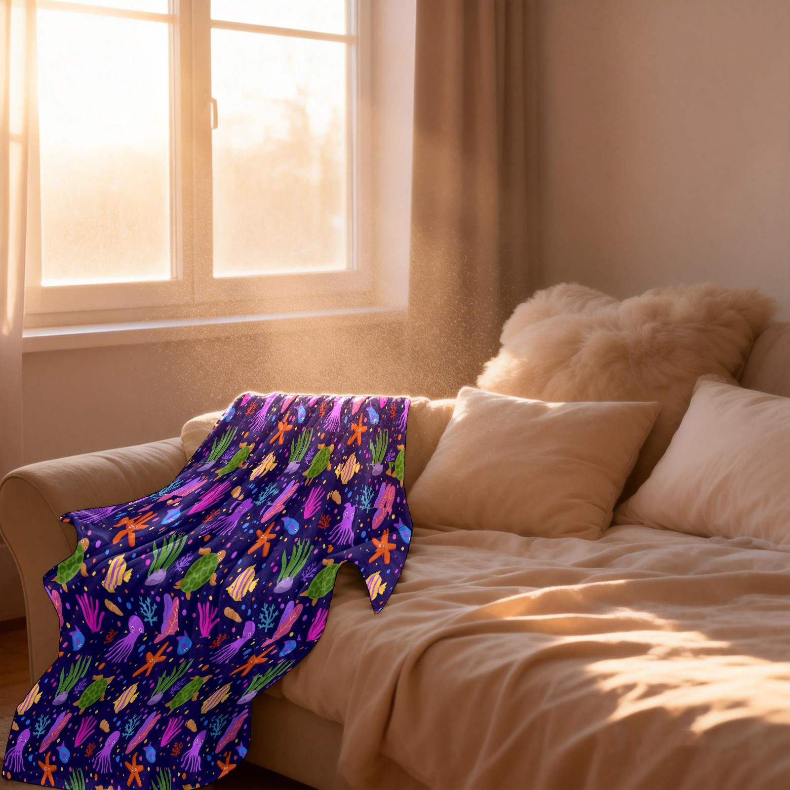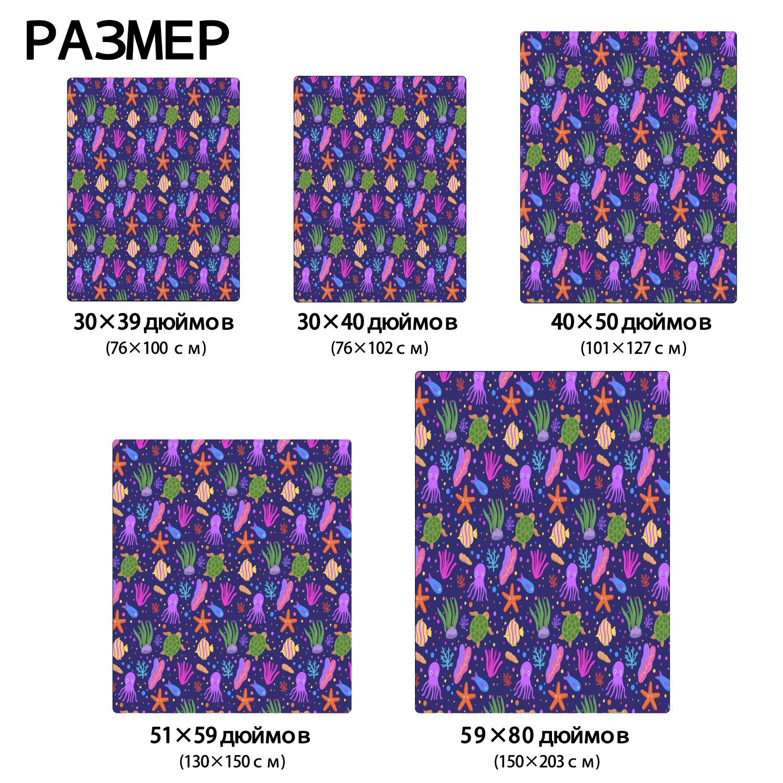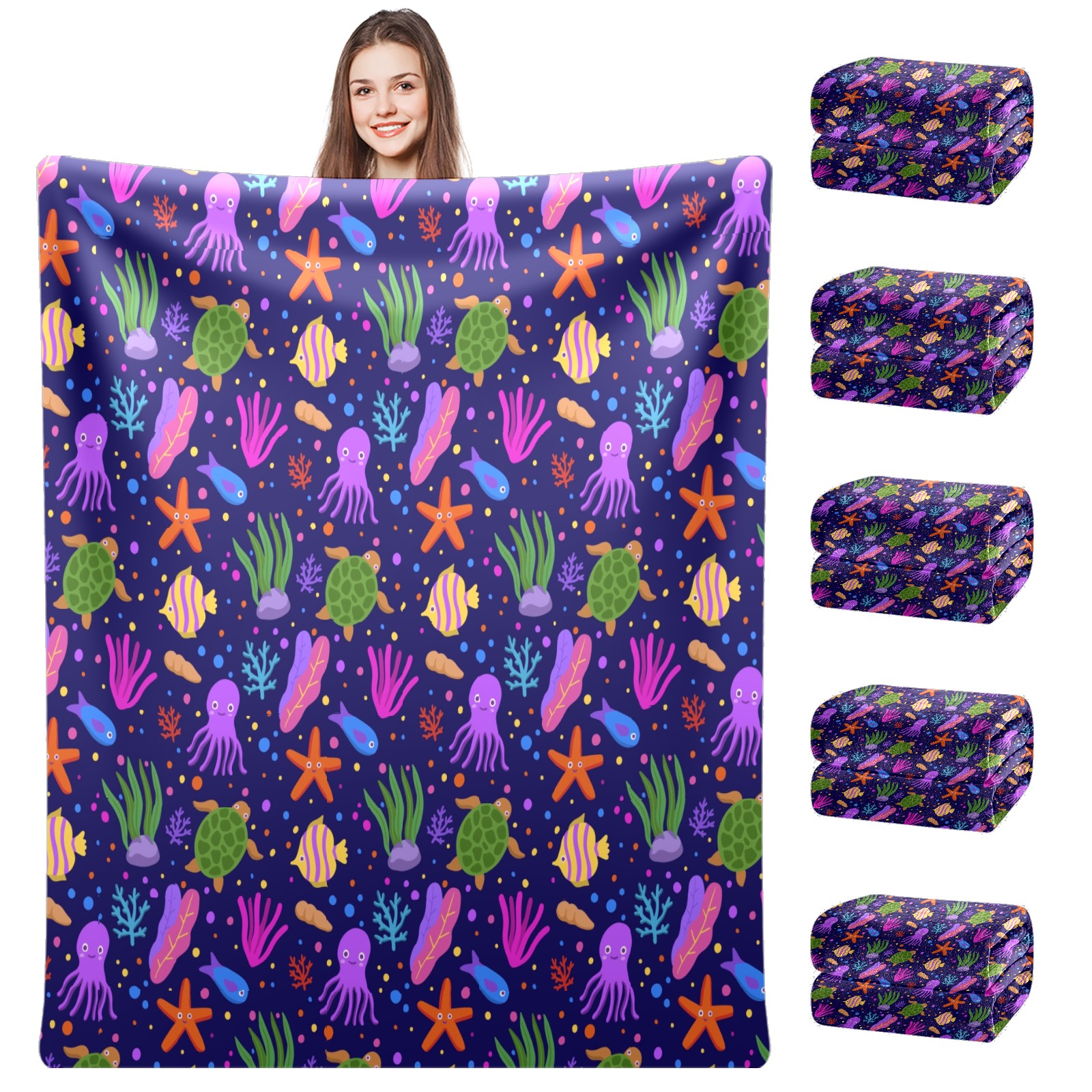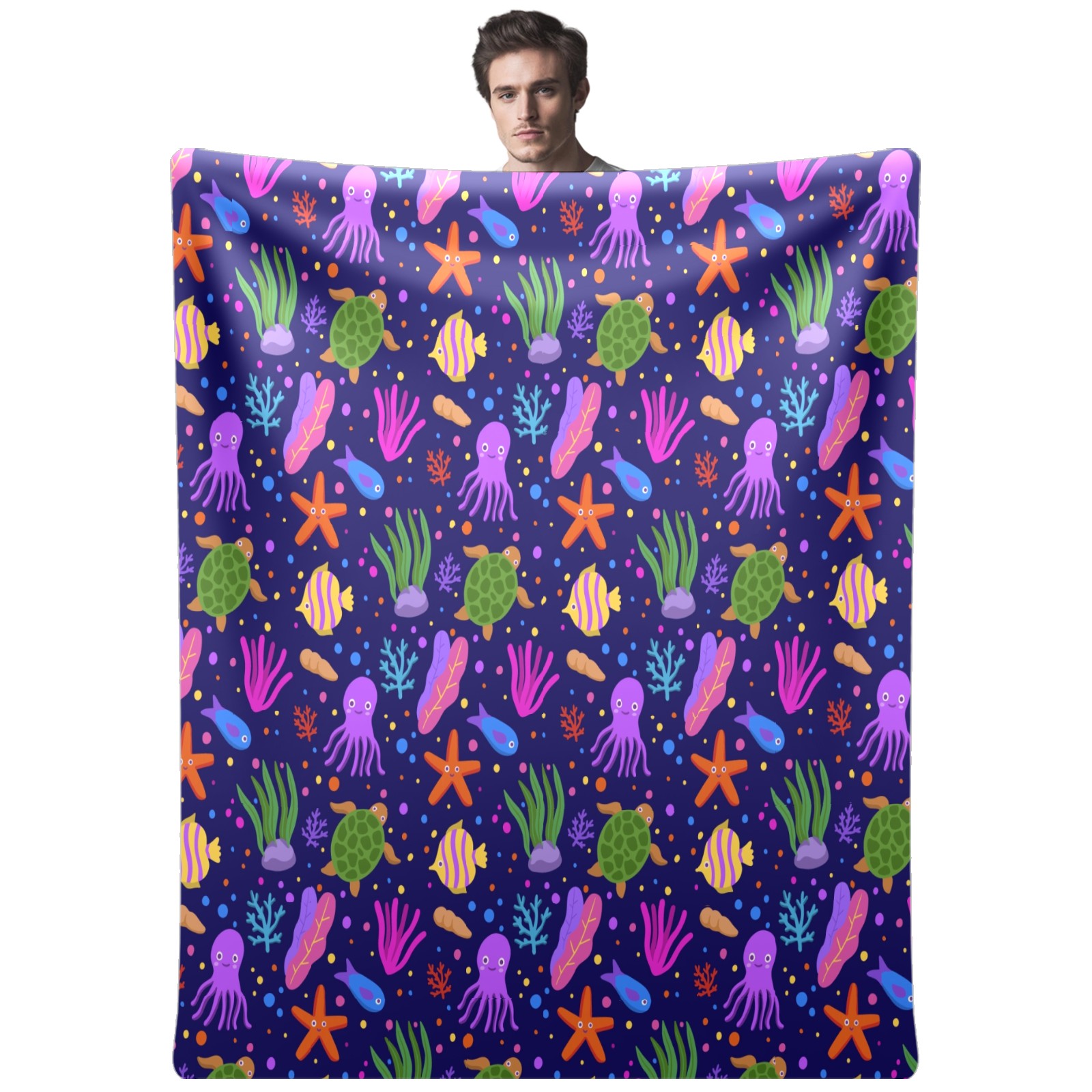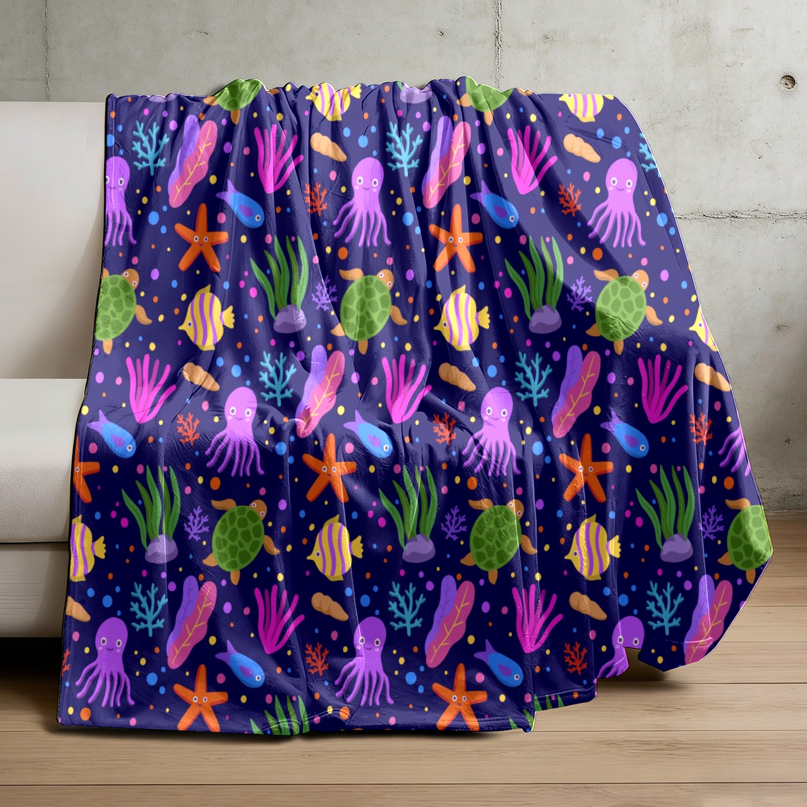 Purple Octopus Coral SeaTurtle Starfish 76x100cm