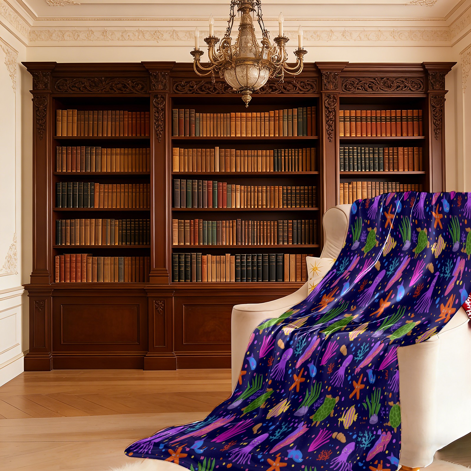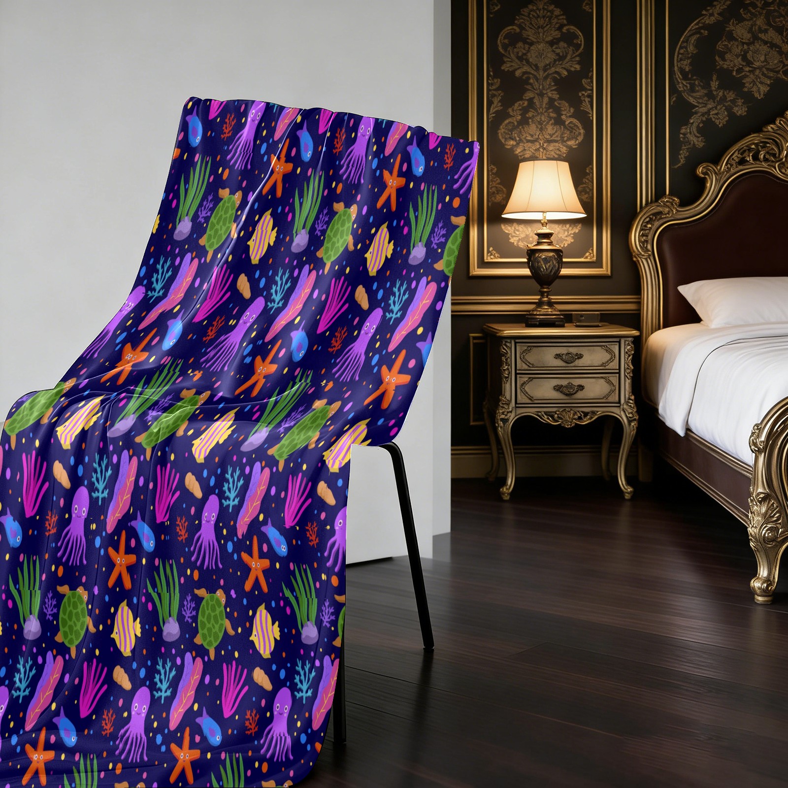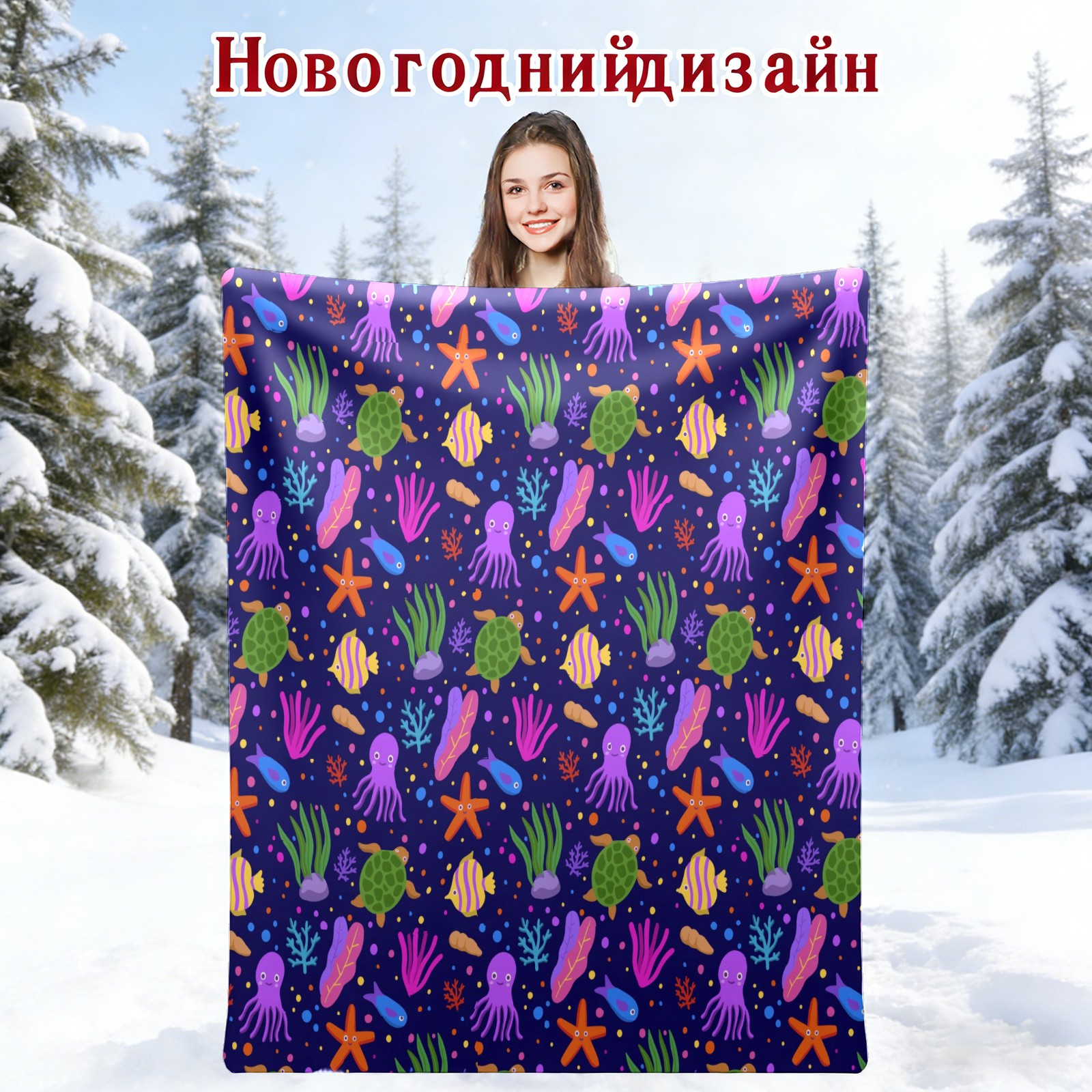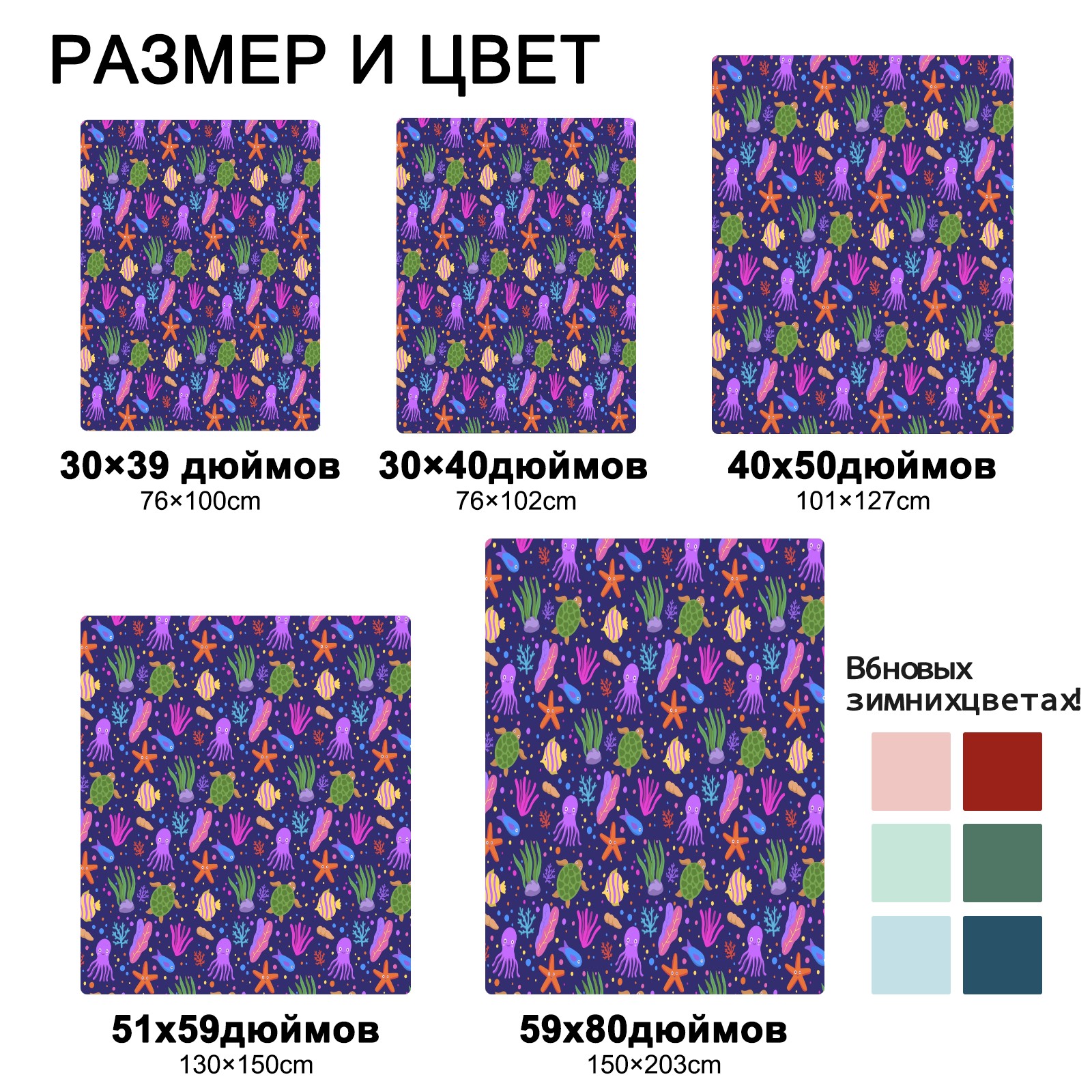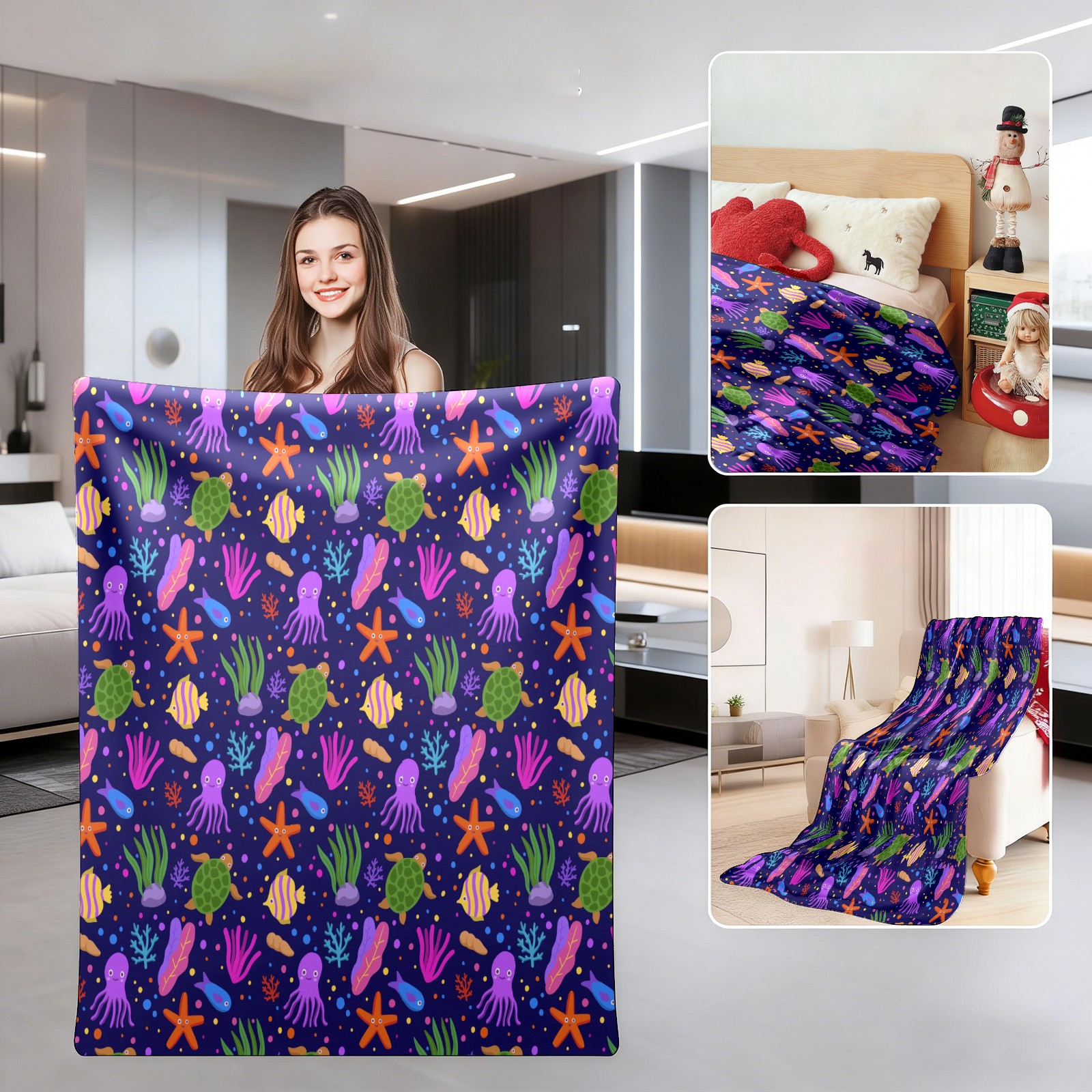 Purple Octopus Coral SeaTurtle Starfish 76x100cm