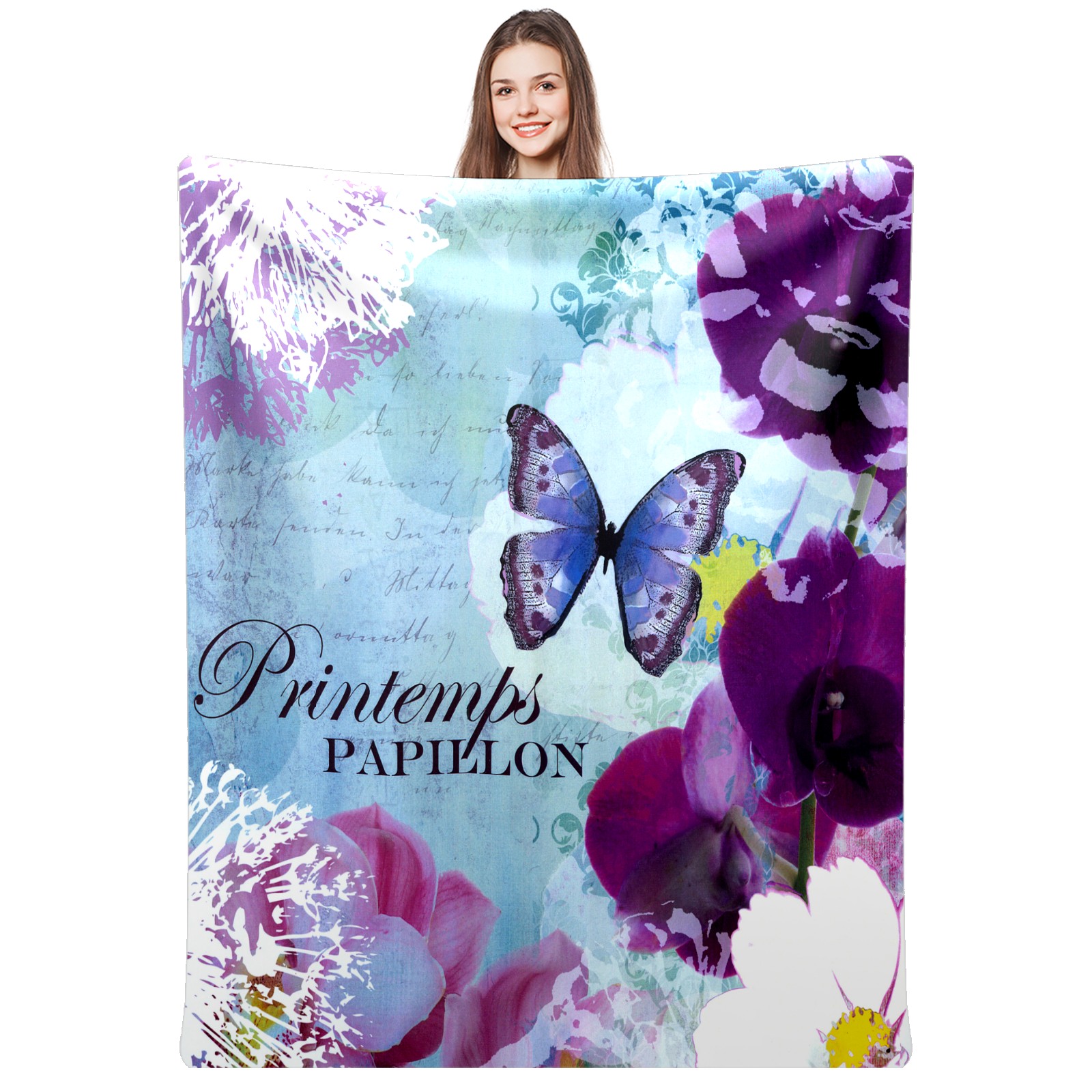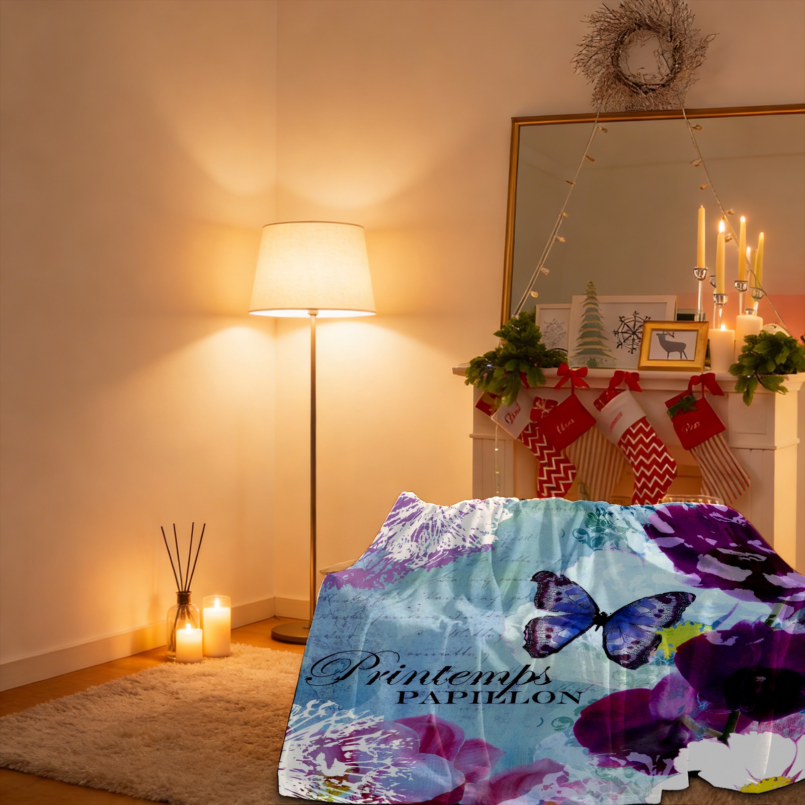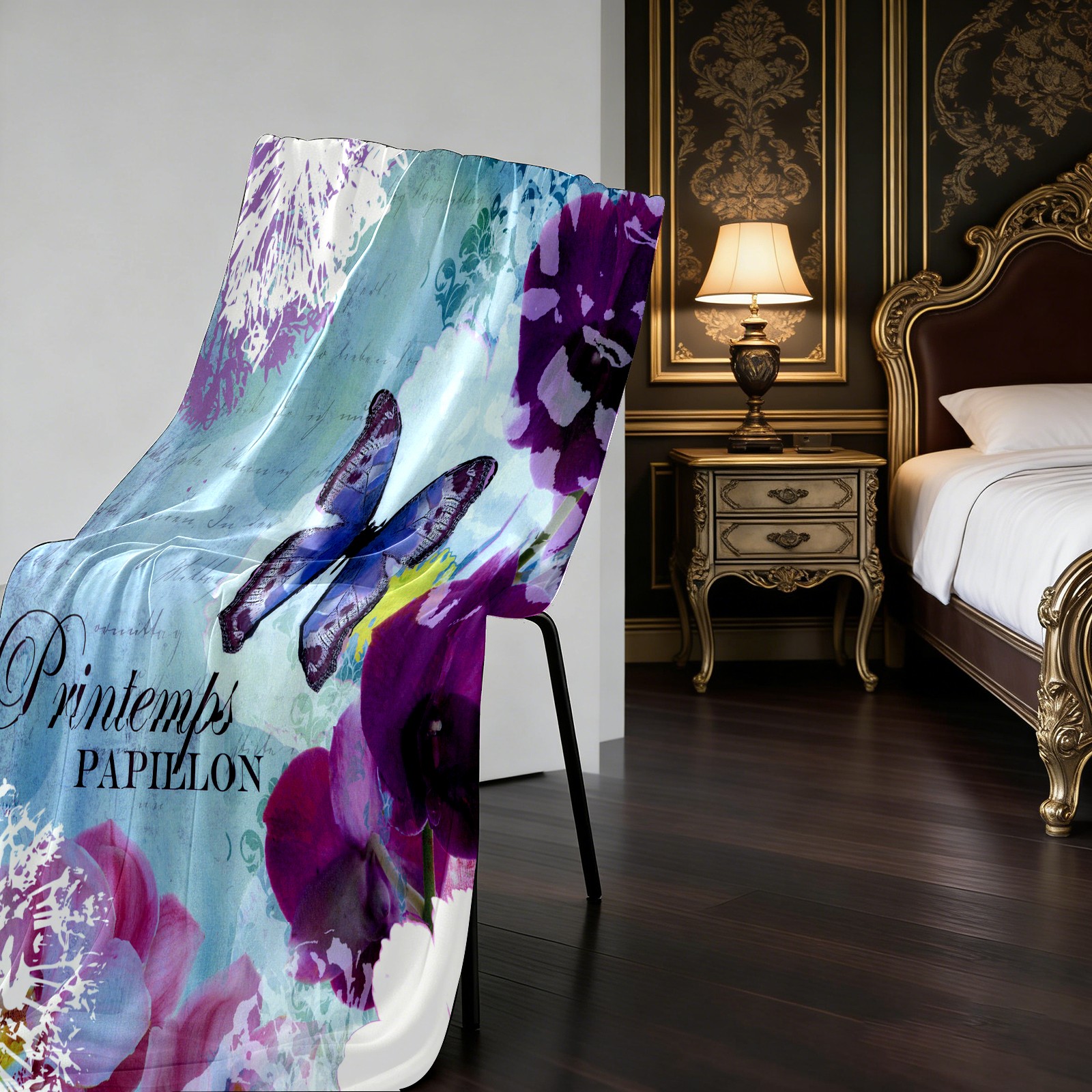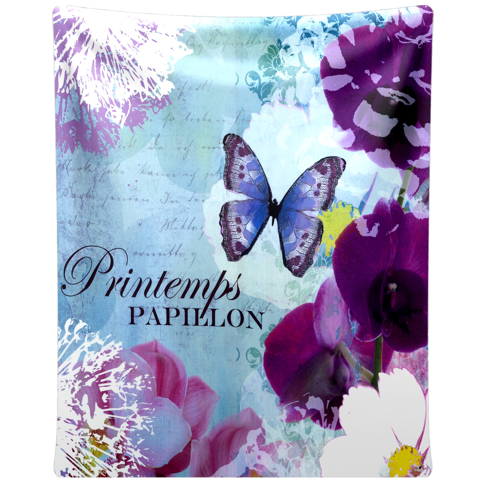 Vintage Retro Butterfly Floral Purple 76x100cm