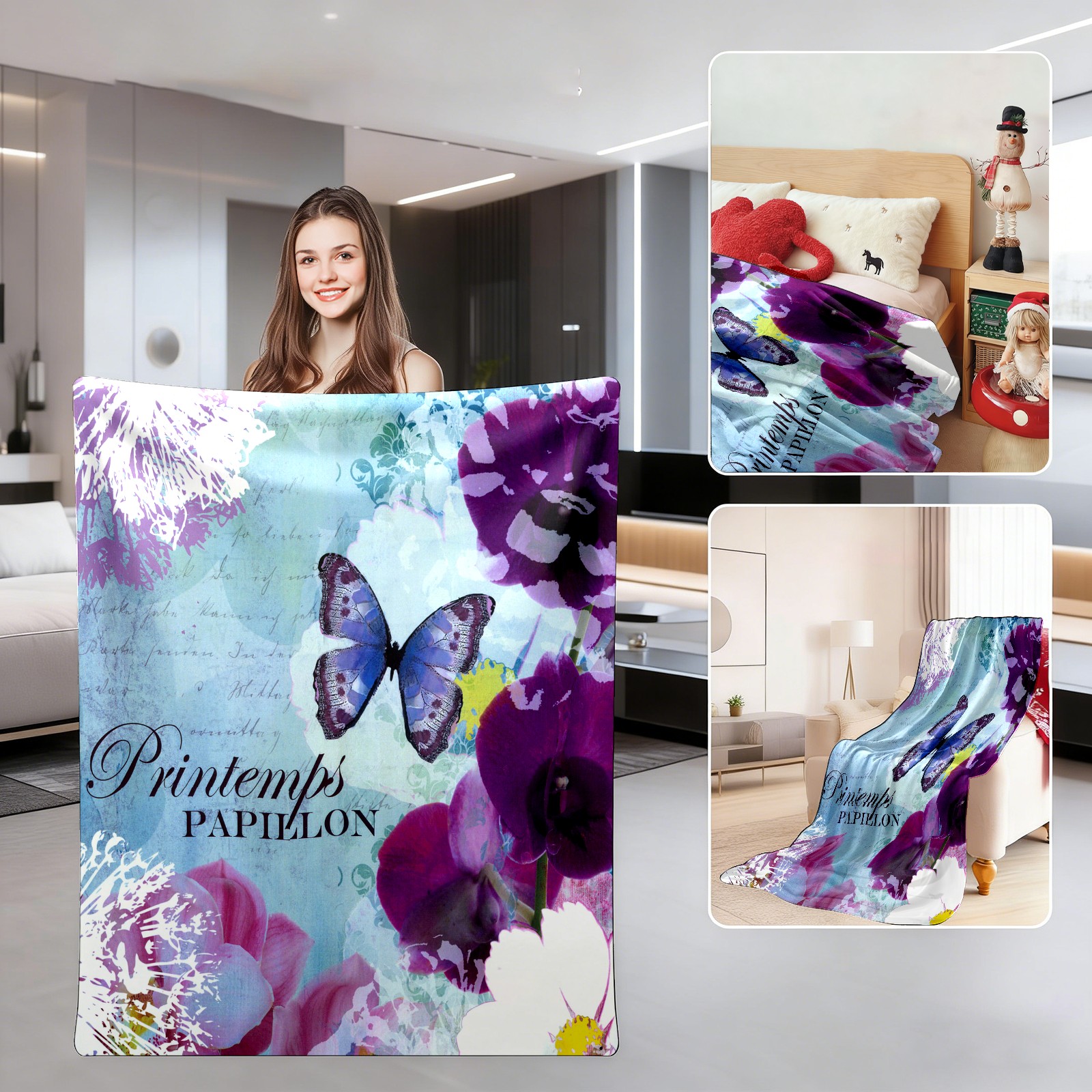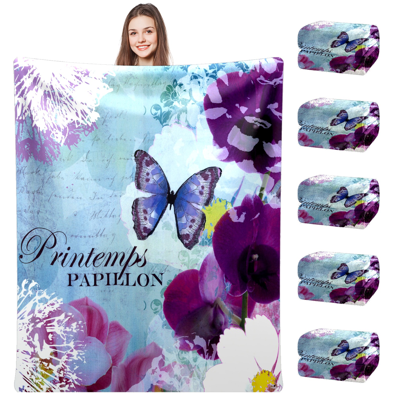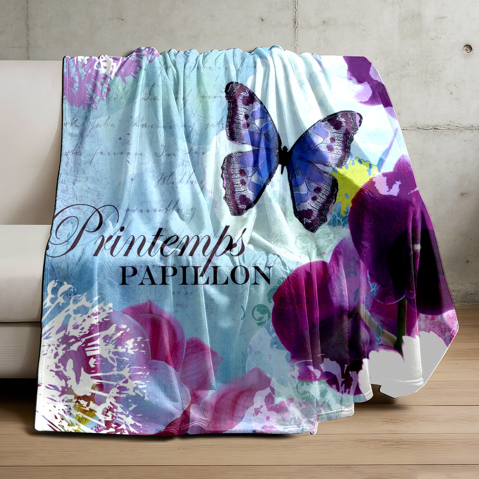 Vintage Retro Butterfly Floral Purple 76x100cm