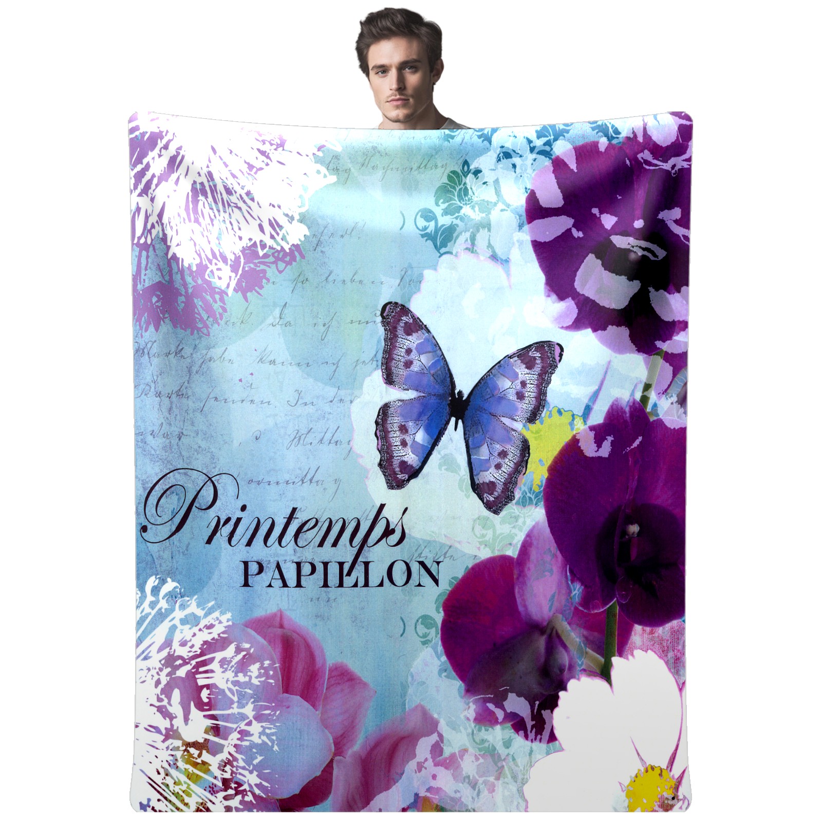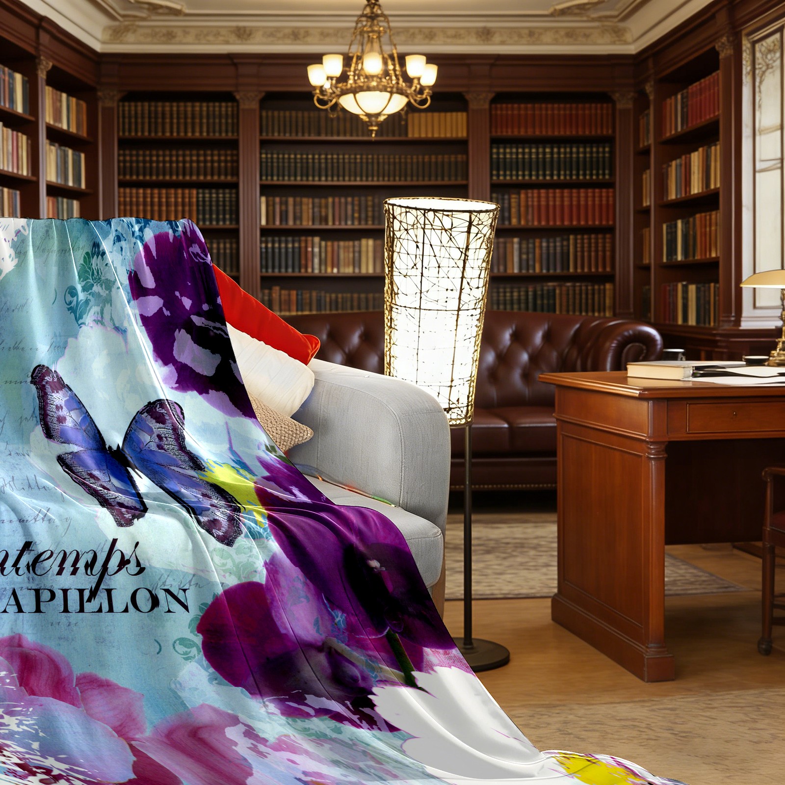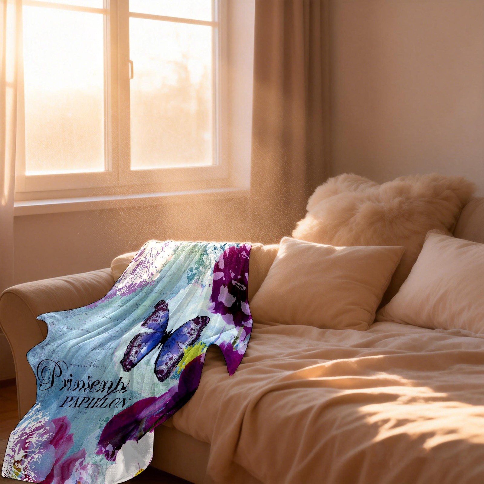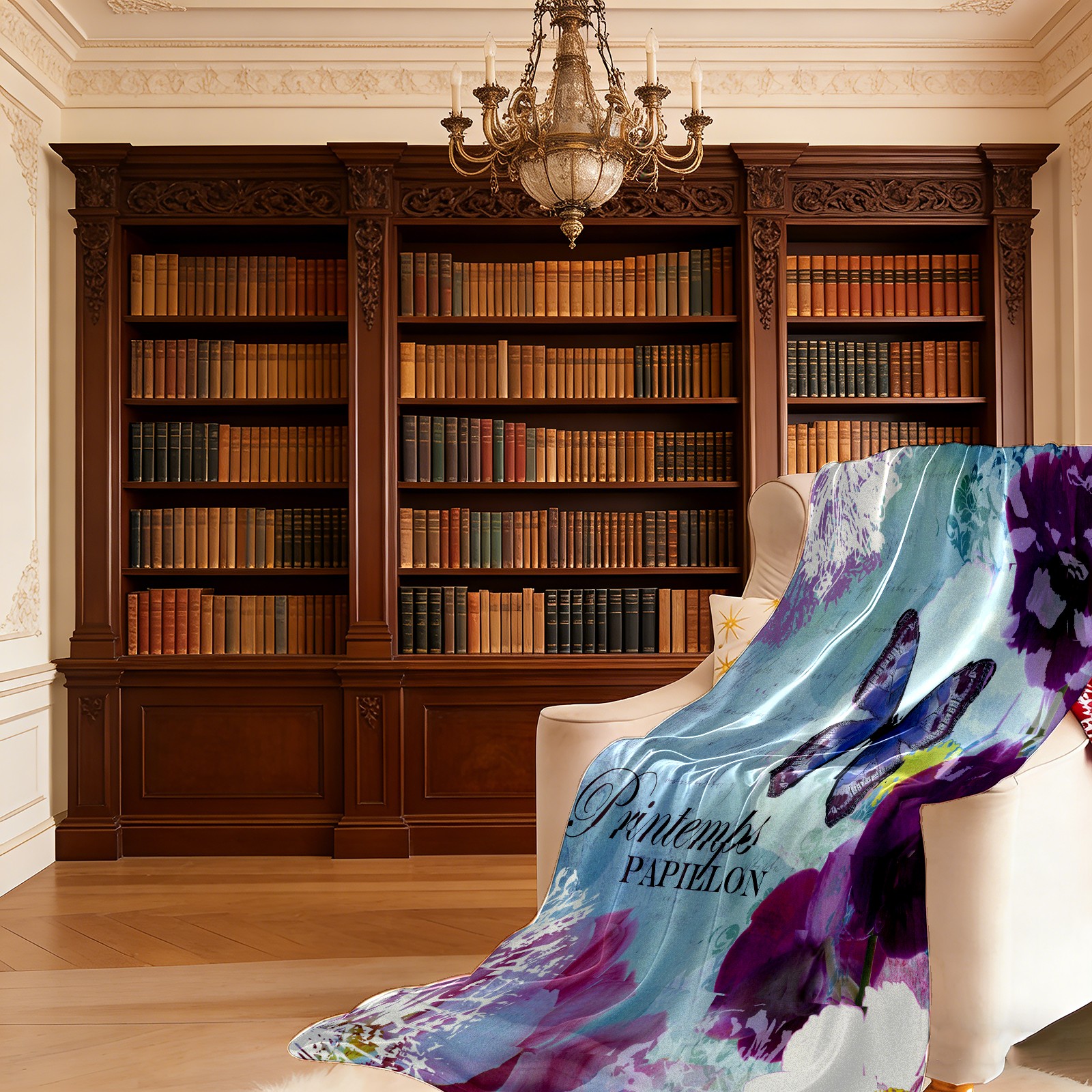 Vintage Retro Butterfly Floral Purple 76x100cm