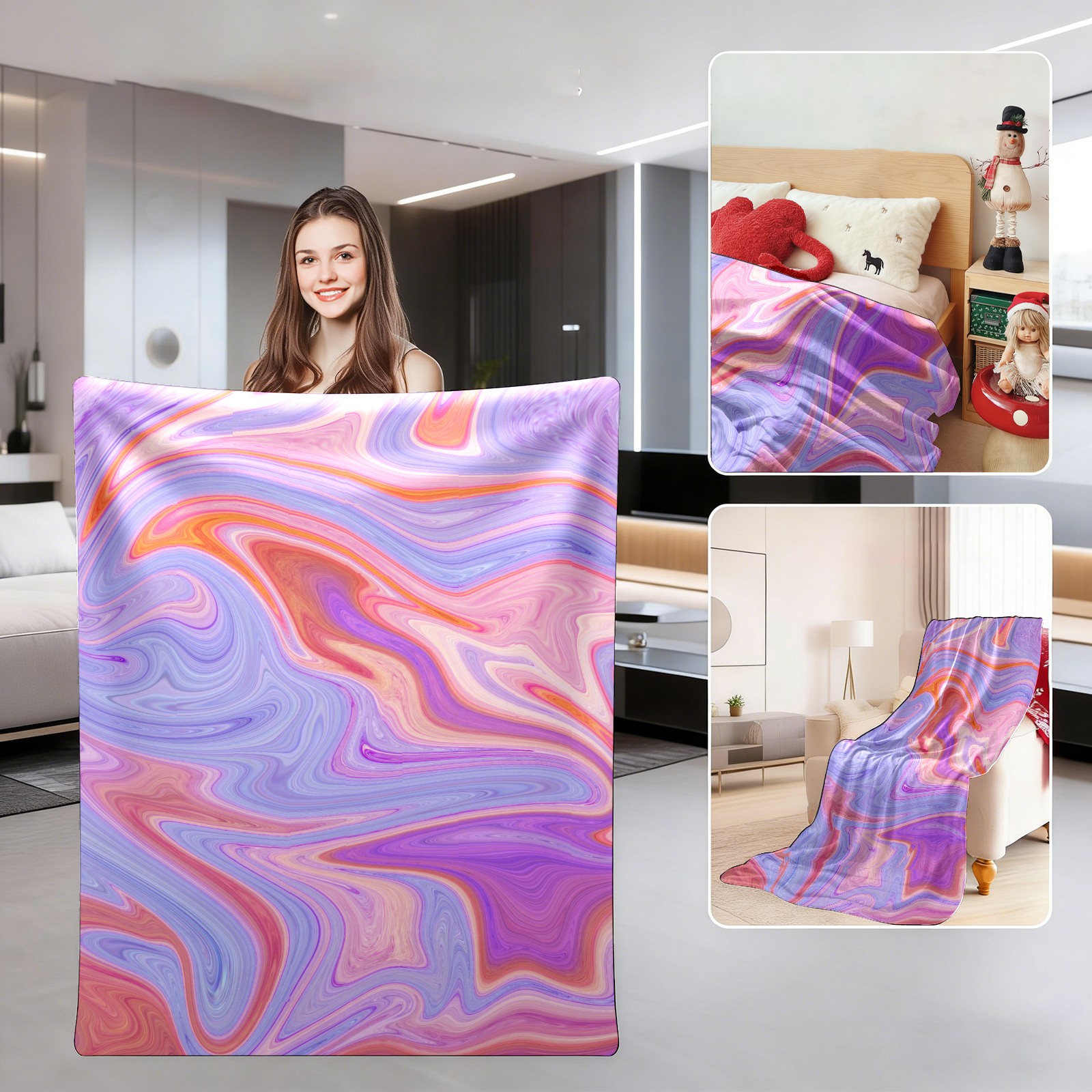 Abstract Watercolor Purple Marble Print 76x100cm