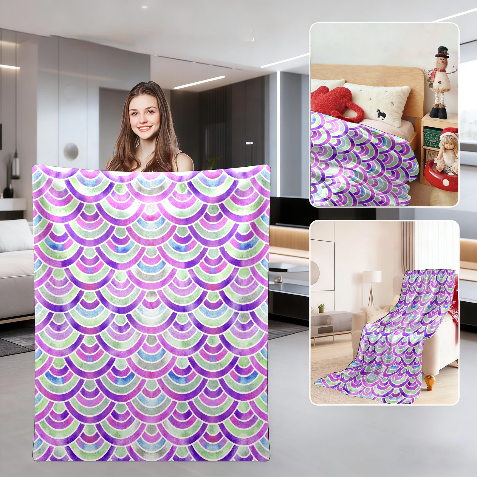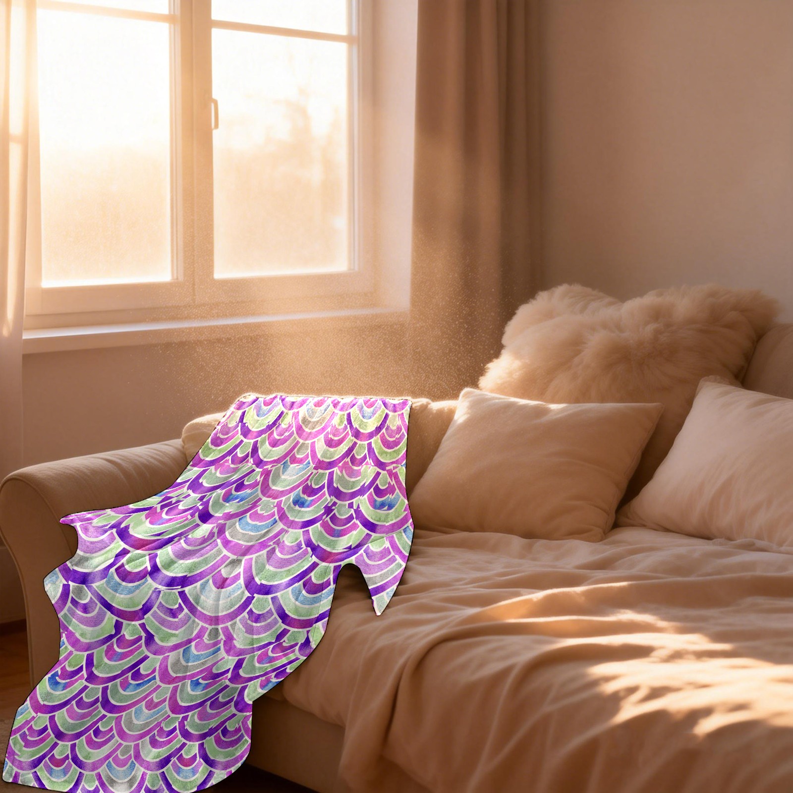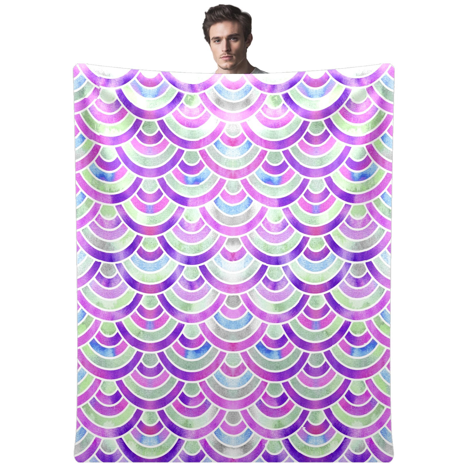 Colorful Watercolor Mermaid Scale Purple 76x100cm