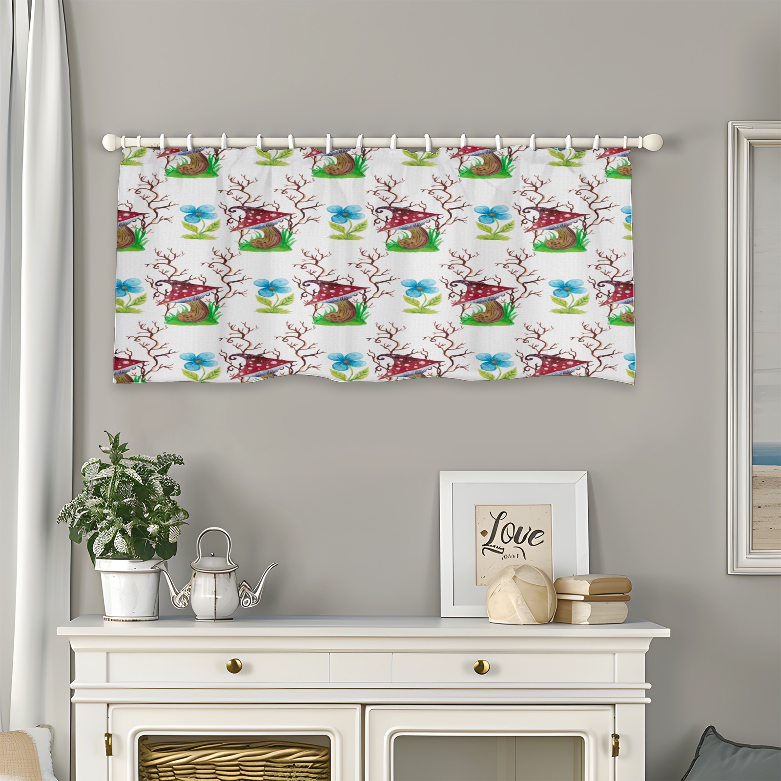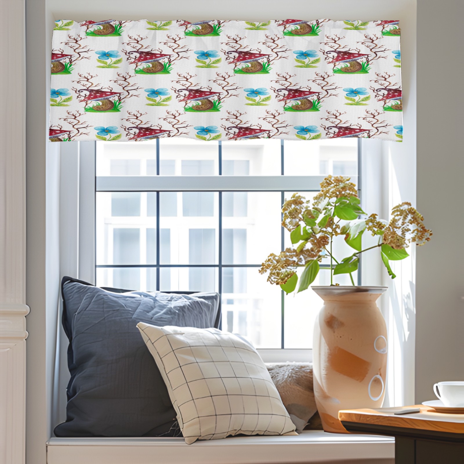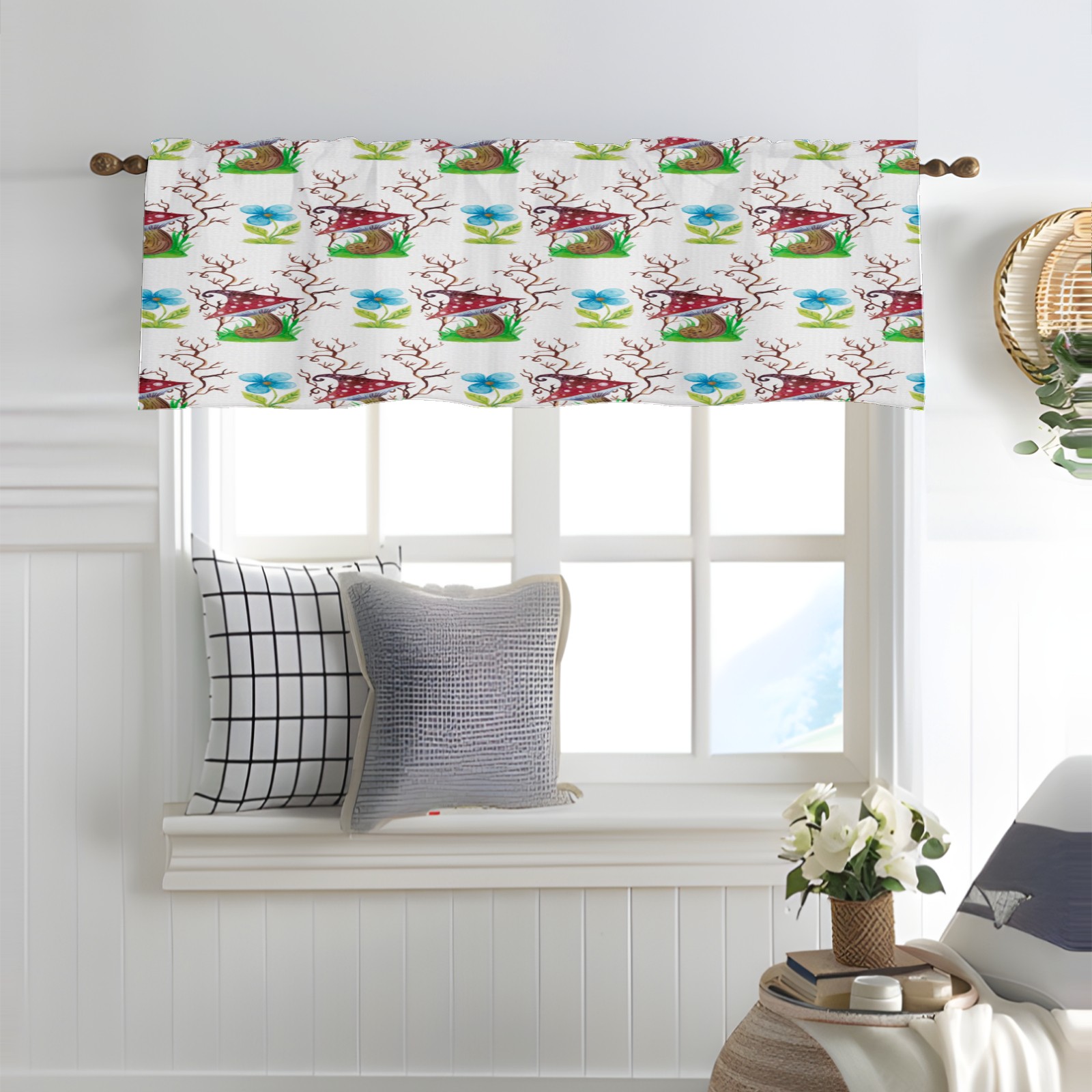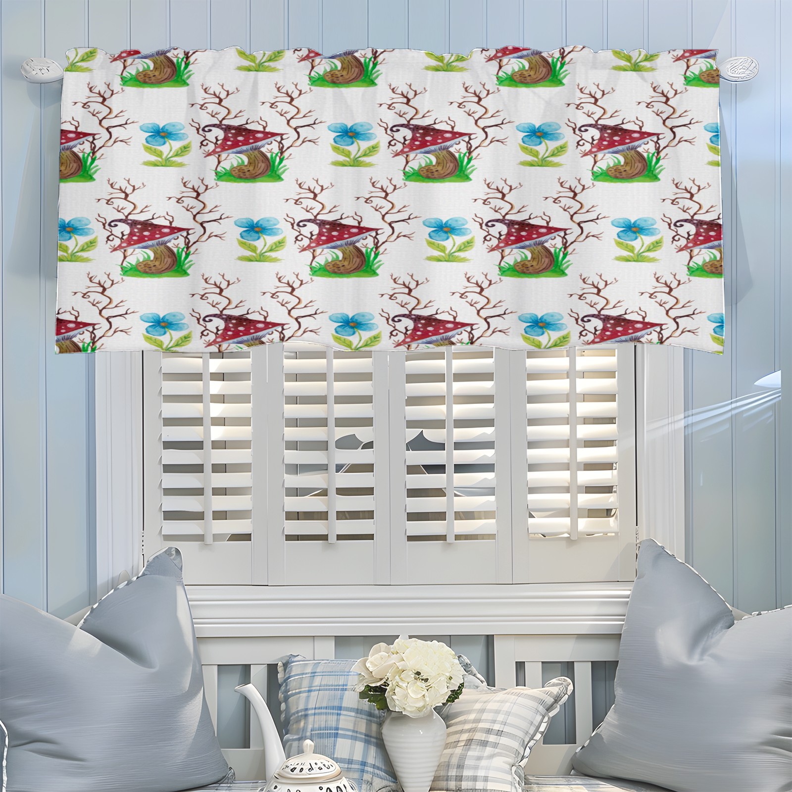 Blackout Curtain Valance for Living Room/Bathroom/Kitchen Valance Rod Pocket Curtain 14 x 52 Inches Mushrooms Watercolor Flowers