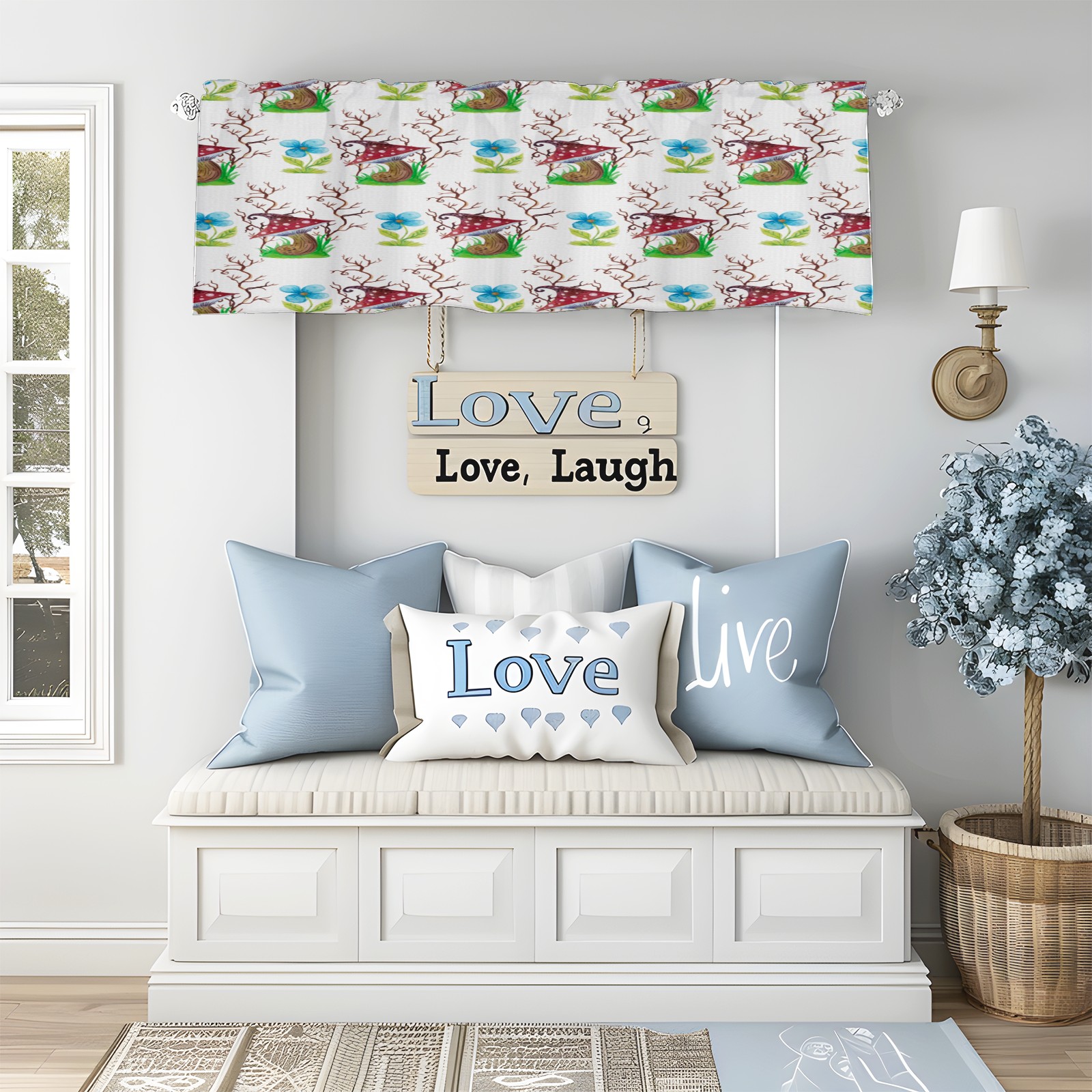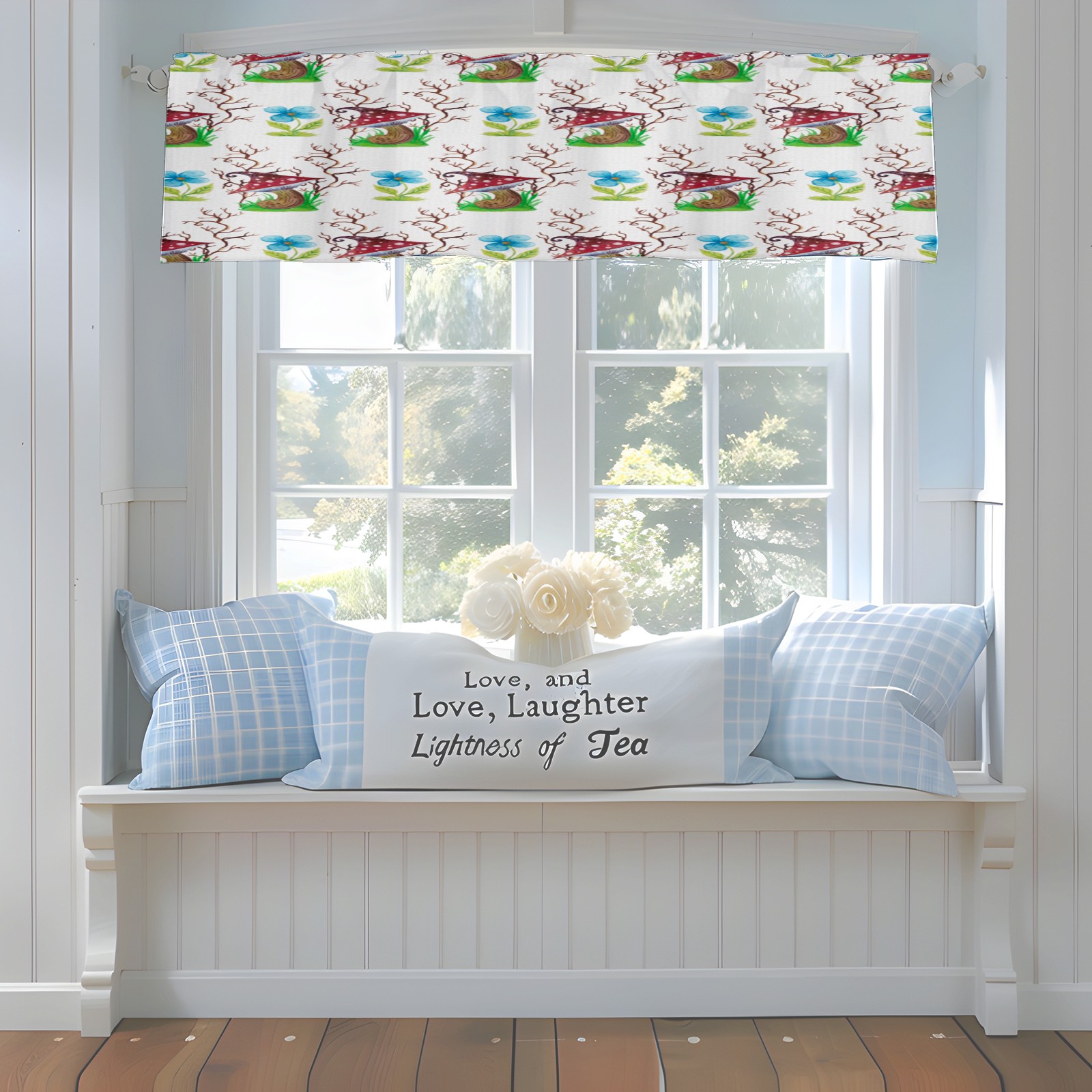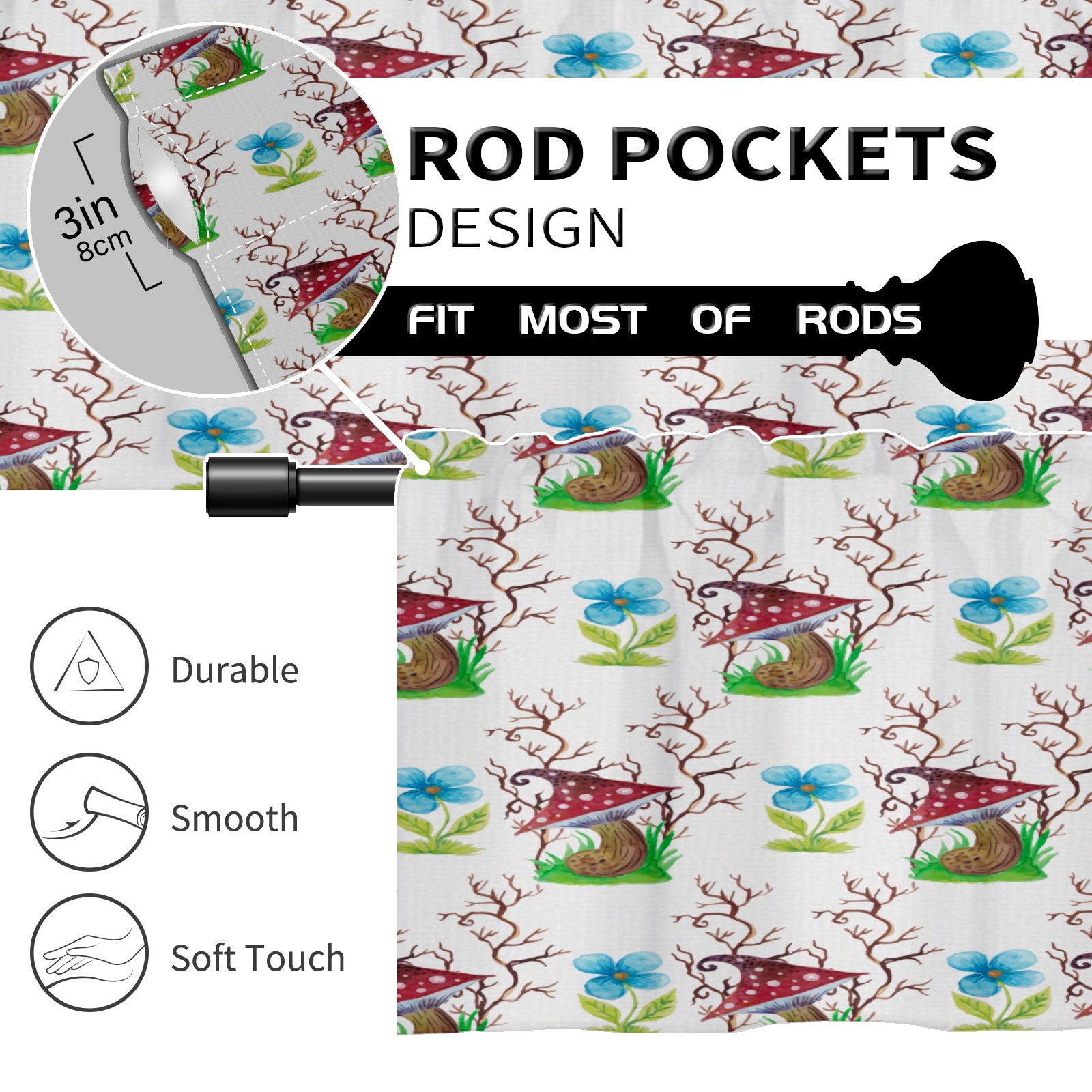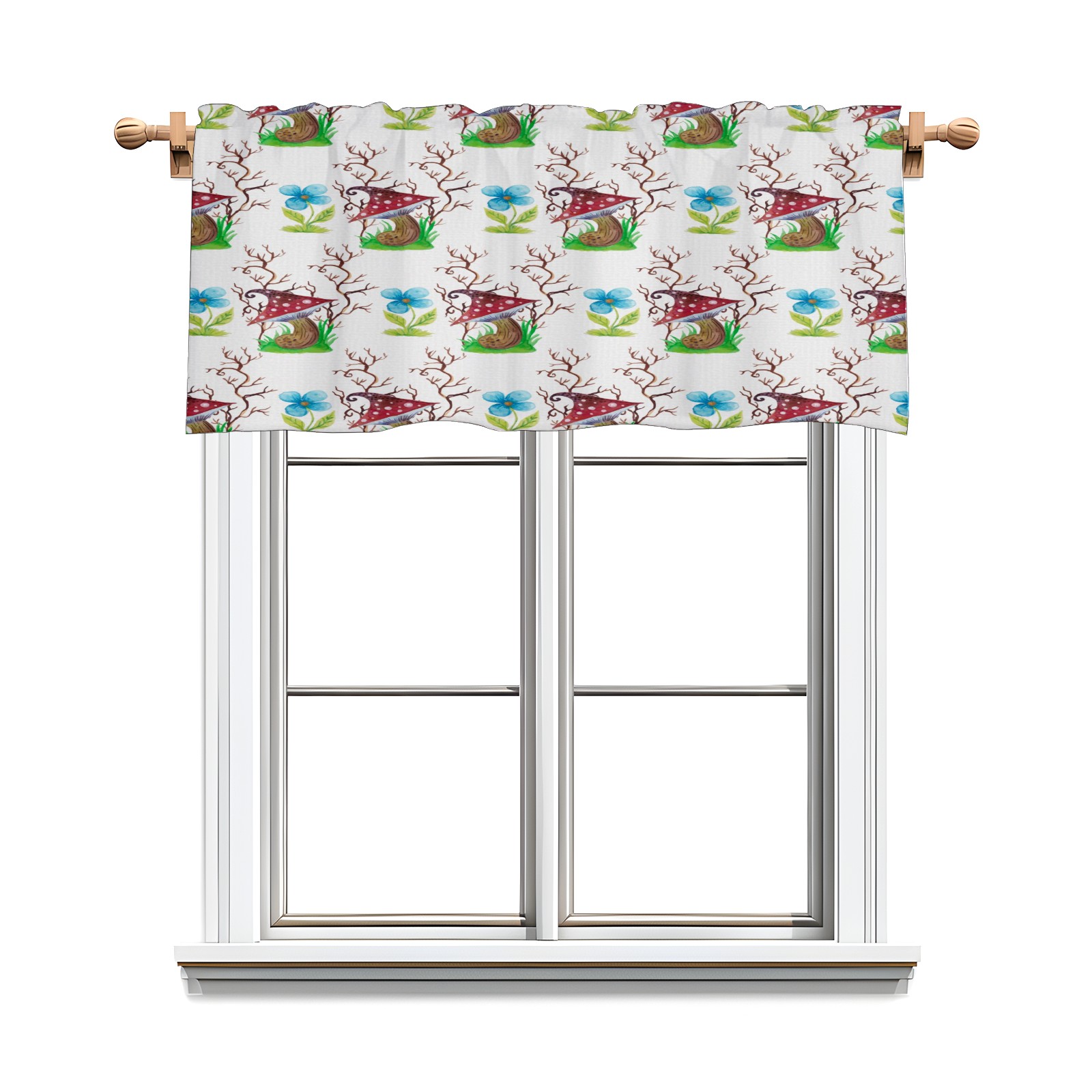 Blackout Curtain Valance for Living Room/Bathroom/Kitchen Valance Rod Pocket Curtain 14 x 52 Inches Mushrooms Watercolor Flowers