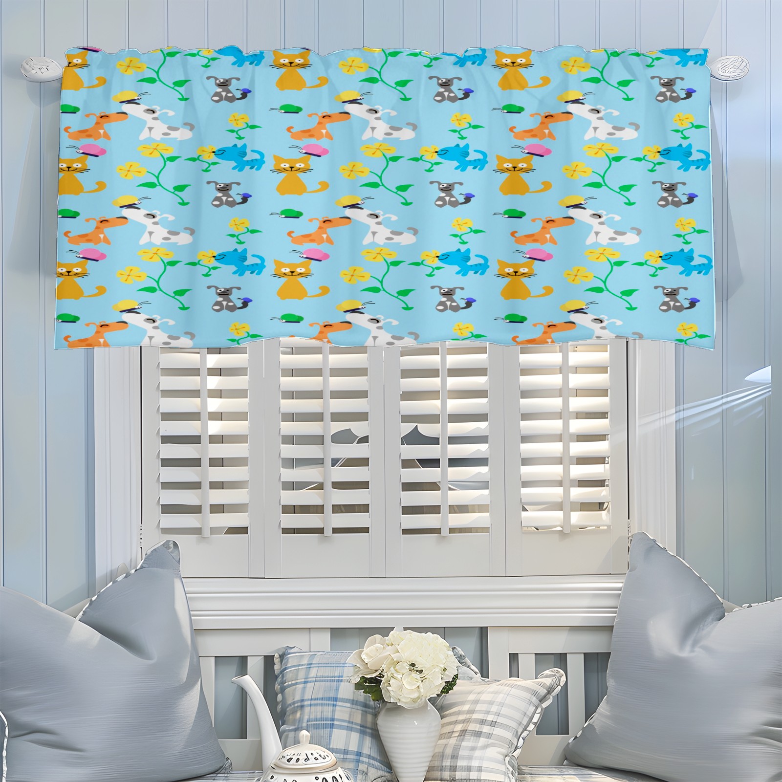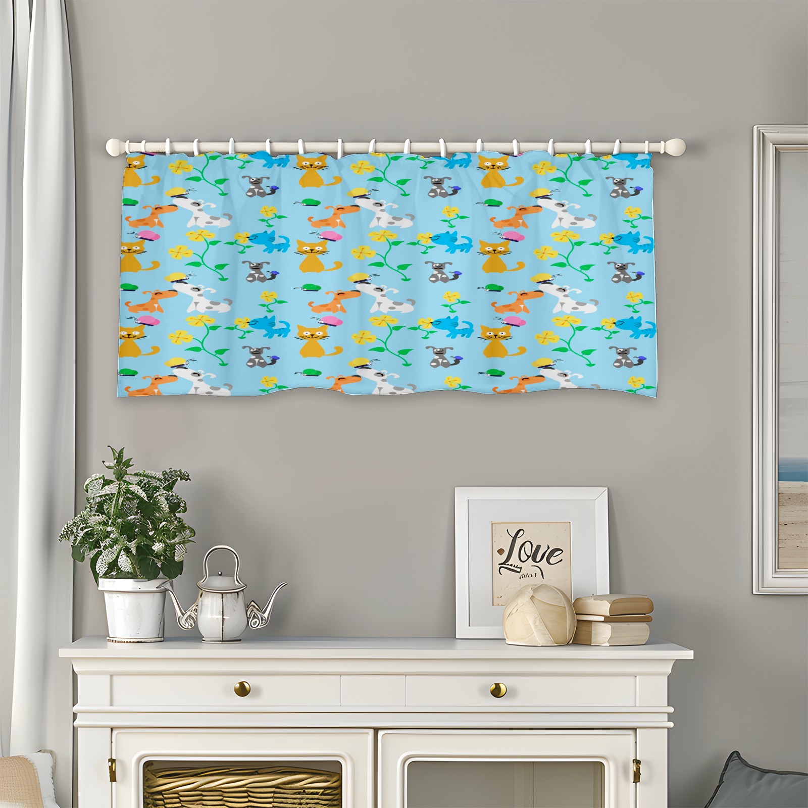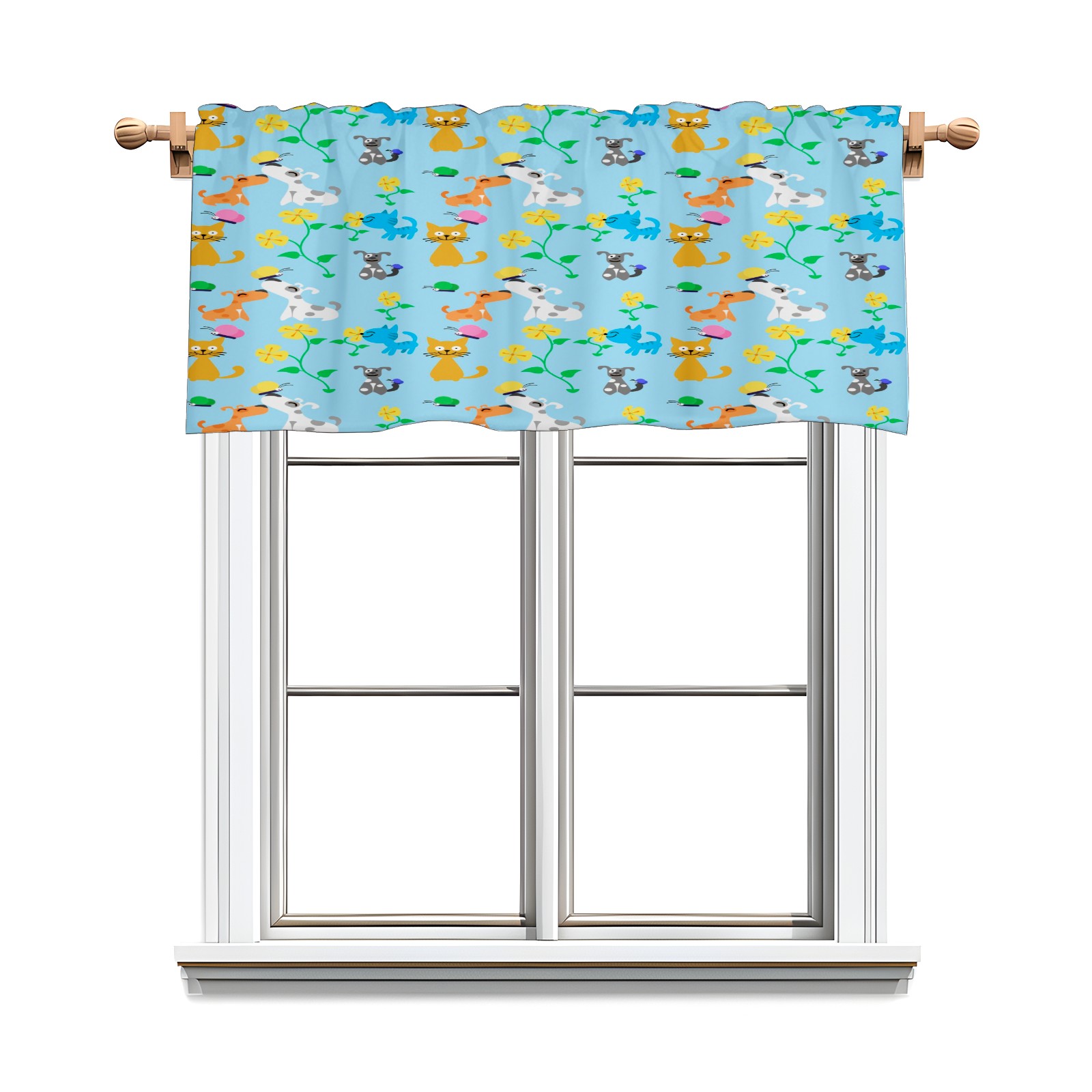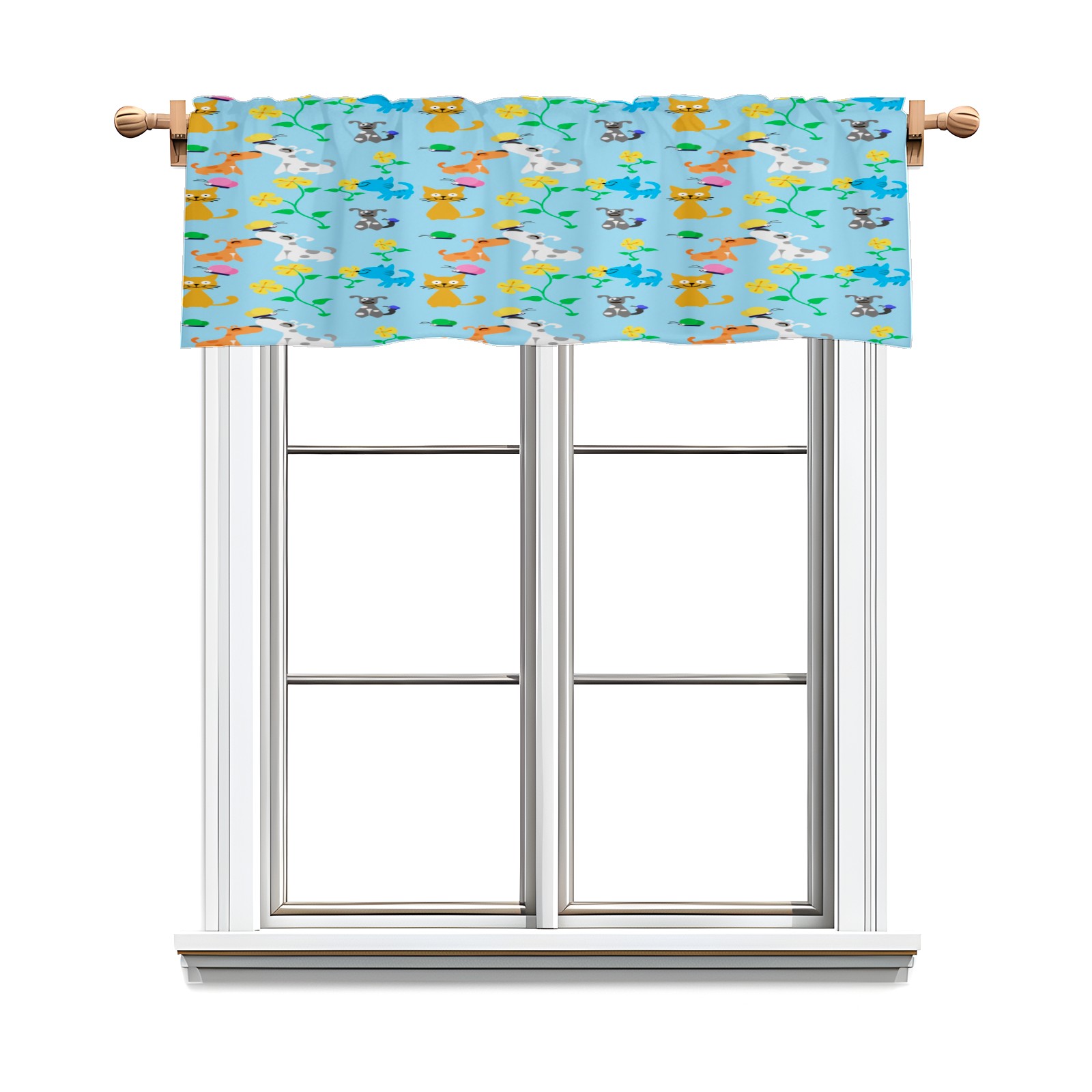 Blackout Curtain Valance for Living Room/Bathroom/Kitchen Valance Rod Pocket Curtain 14 x 52 Inches Lovely Cartoon Cat Dog
