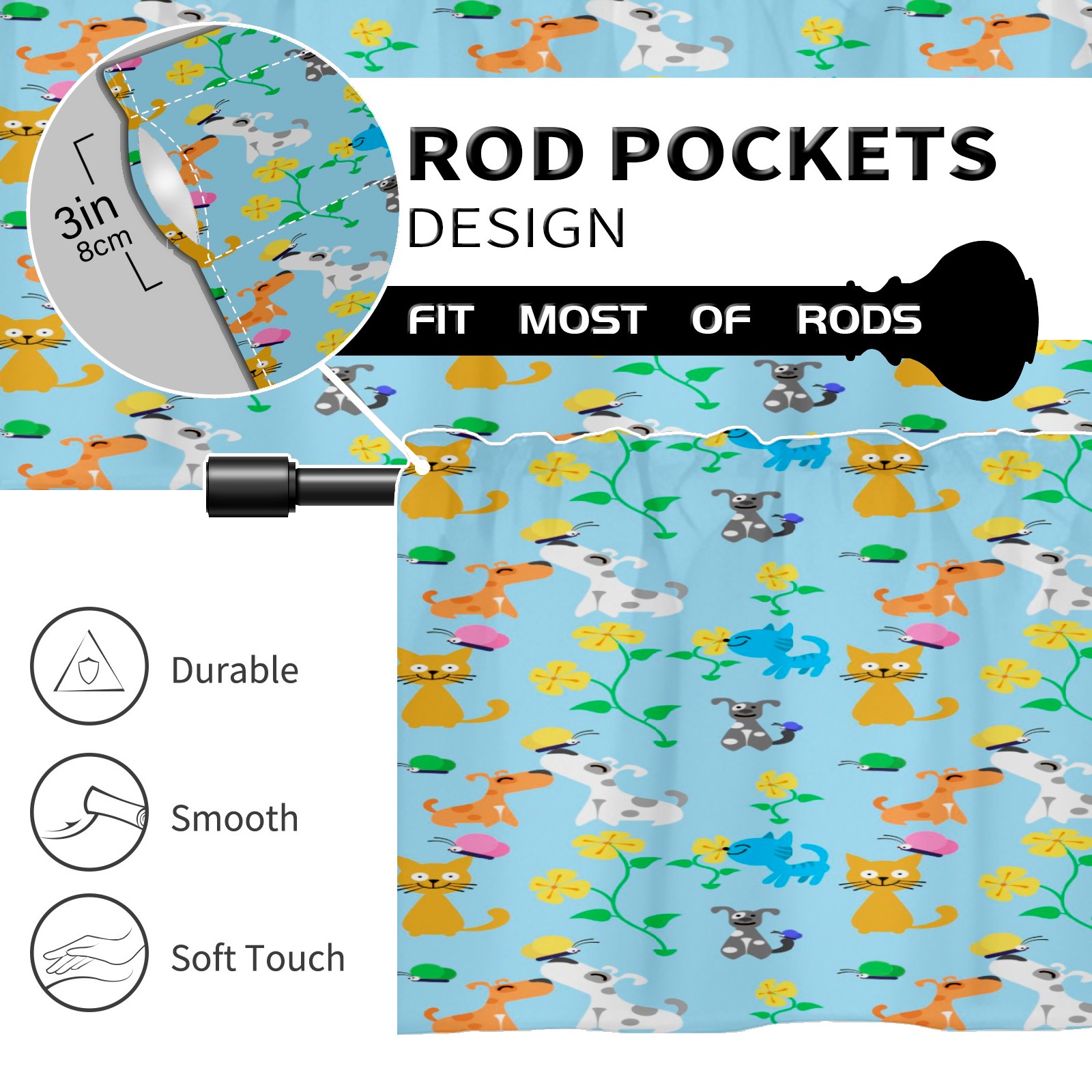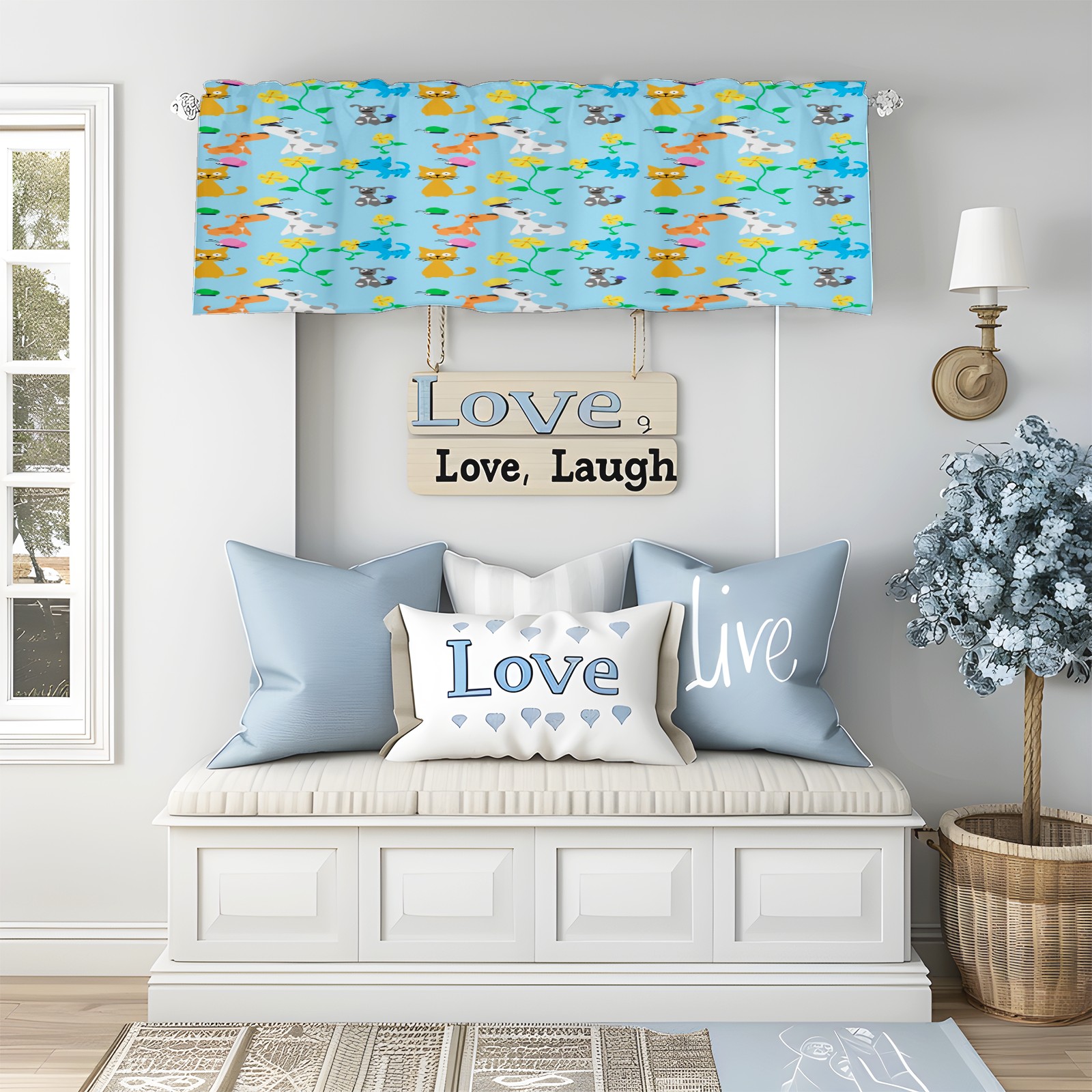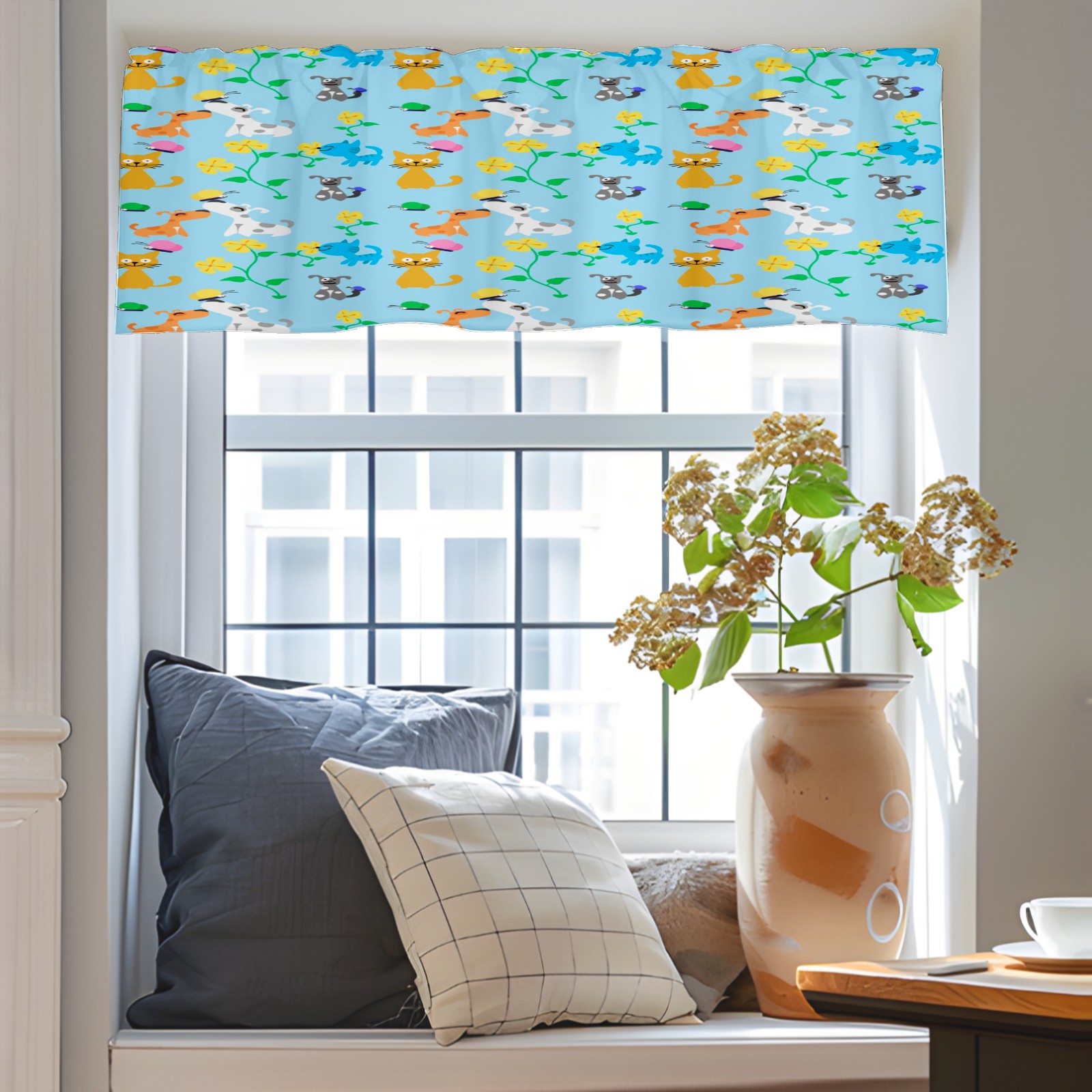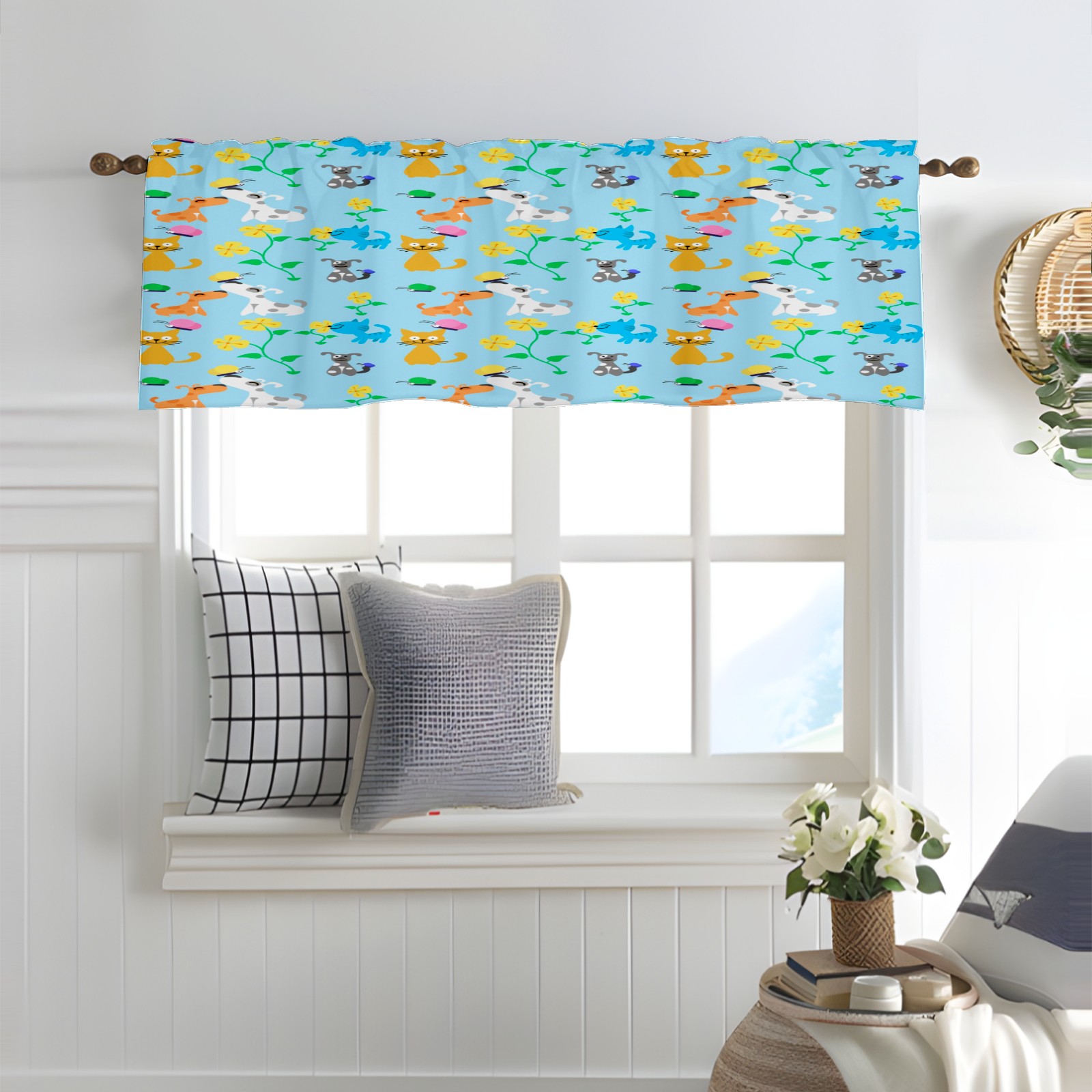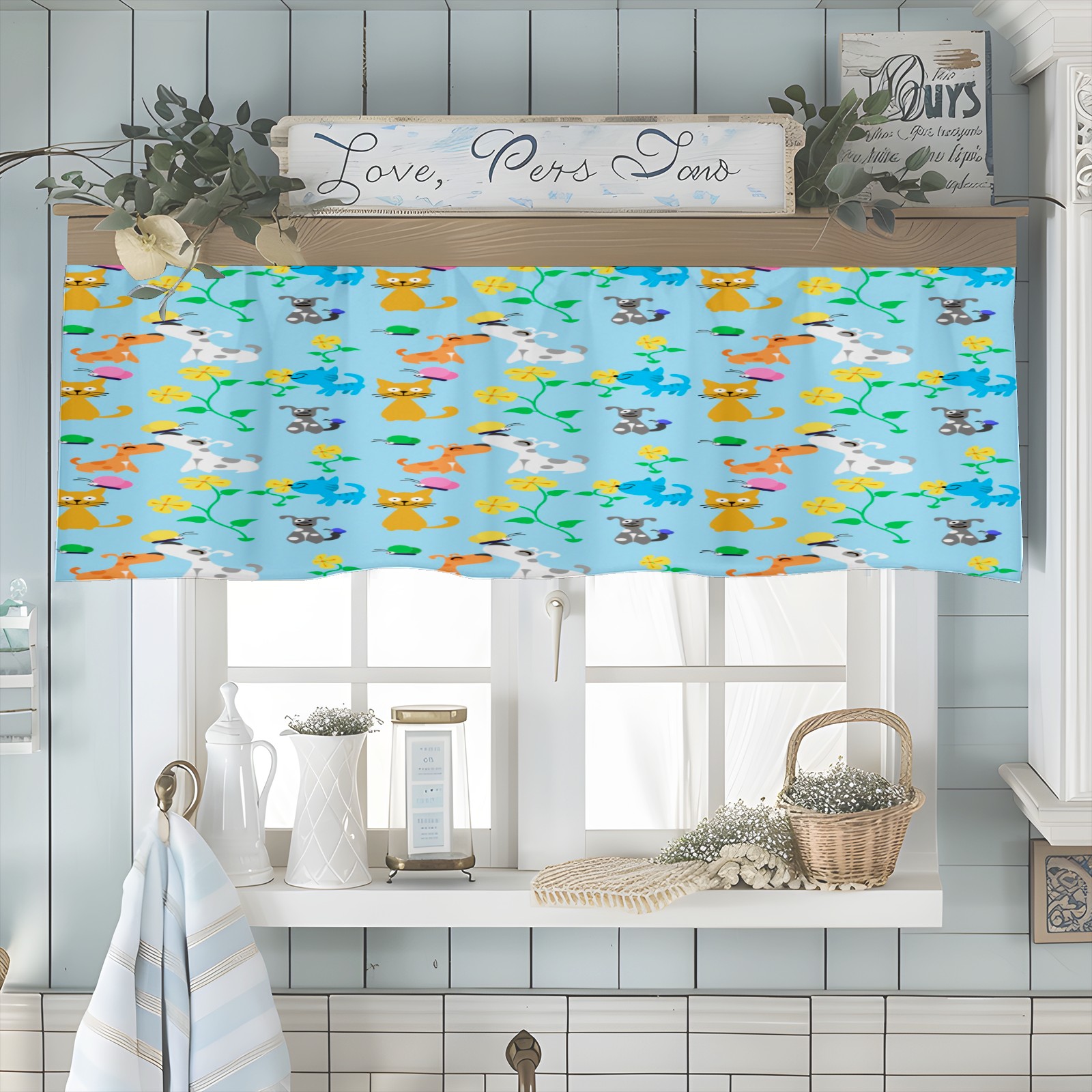 Blackout Curtain Valance for Living Room/Bathroom/Kitchen Valance Rod Pocket Curtain 14 x 52 Inches Lovely Cartoon Cat Dog