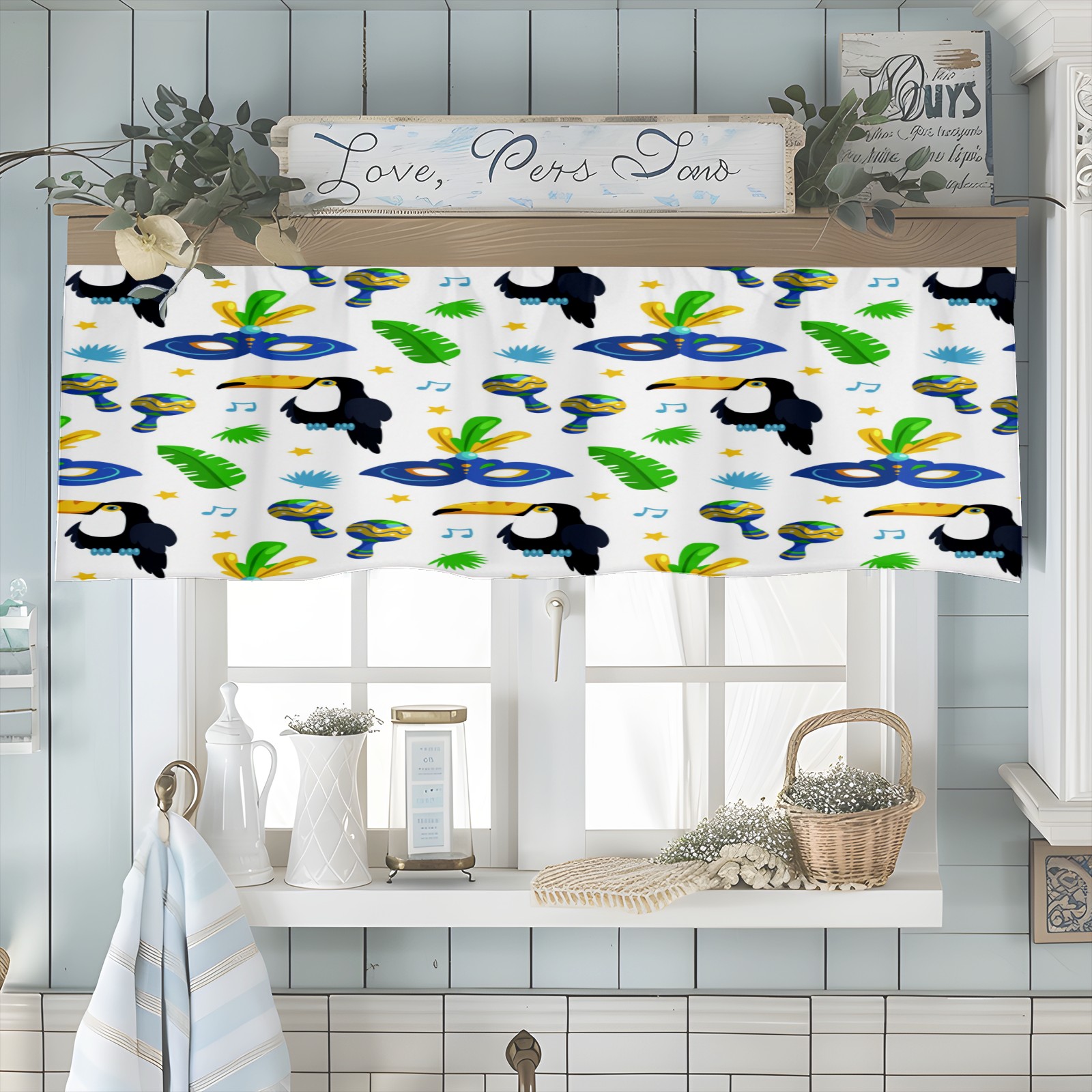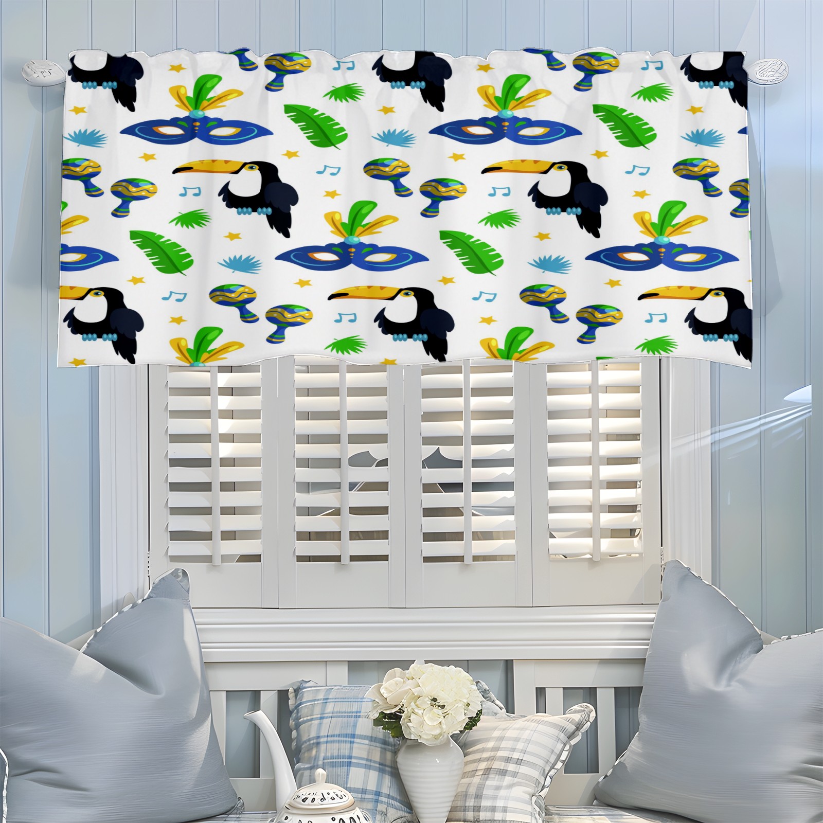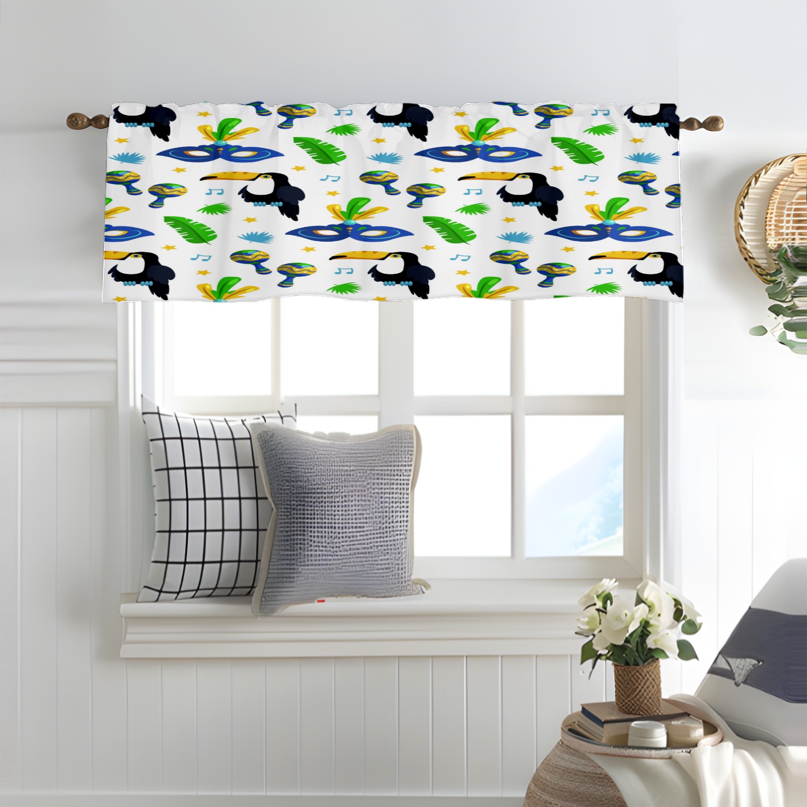Blackout Curtain Valance for Living Room/Bathroom/Kitchen Valance Rod Pocket Curtain 14 x 52 Inches Colorful Brazilian Carnival