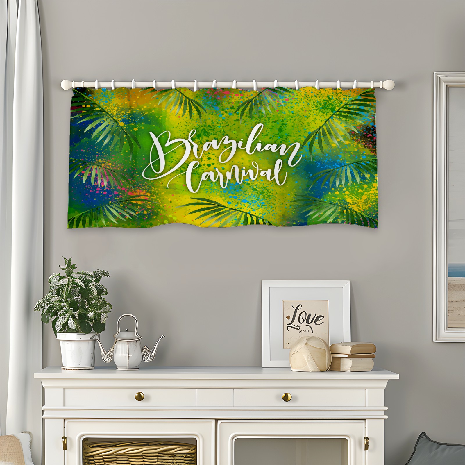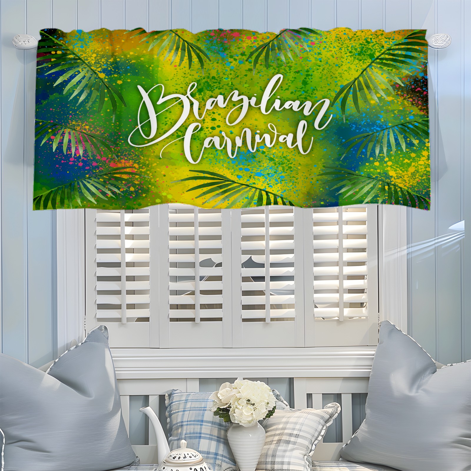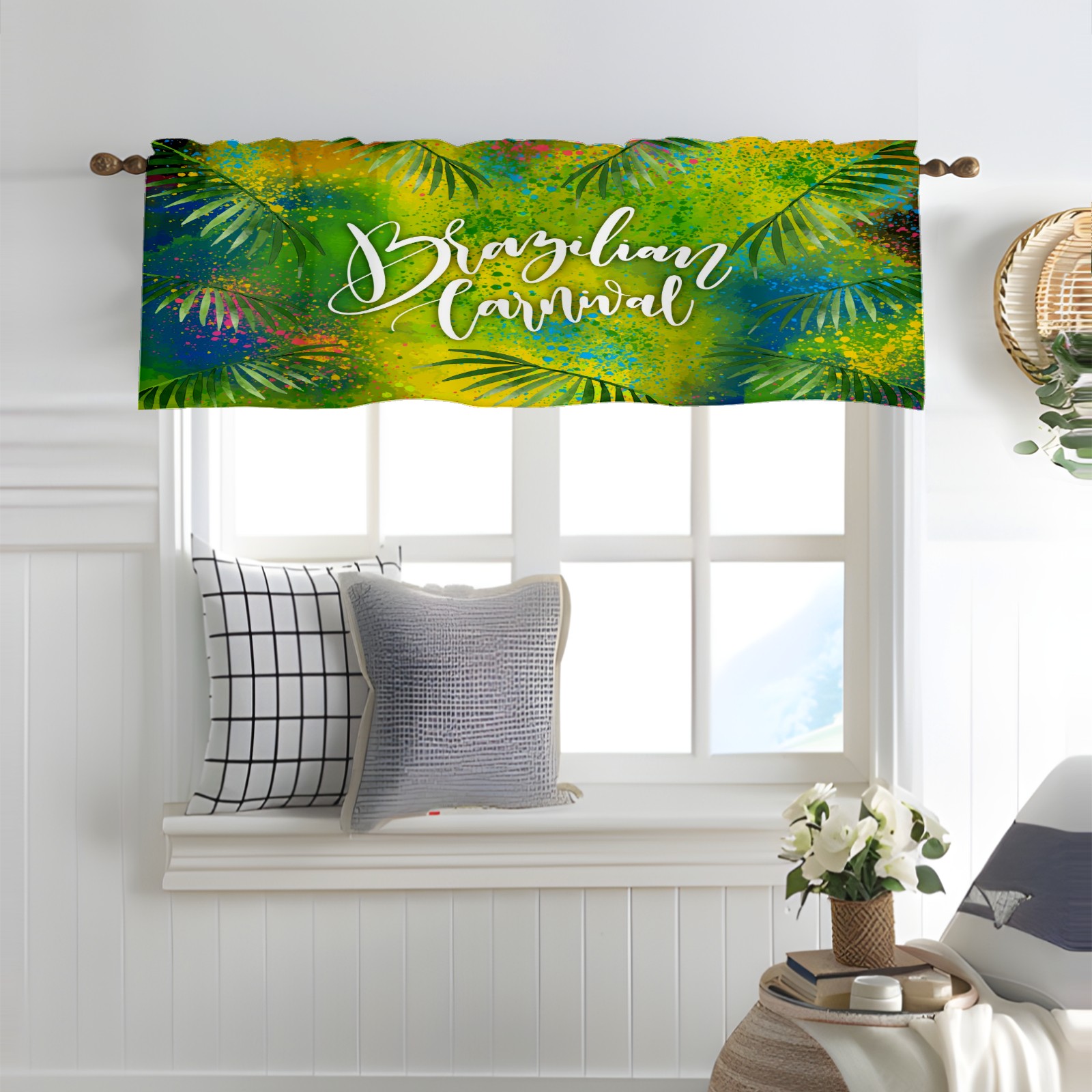Blackout Curtain Valance for Living Room/Bathroom/Kitchen Valance Rod Pocket Curtain 14 x 52 Inches Brazilian Carnival Doodling Leaves